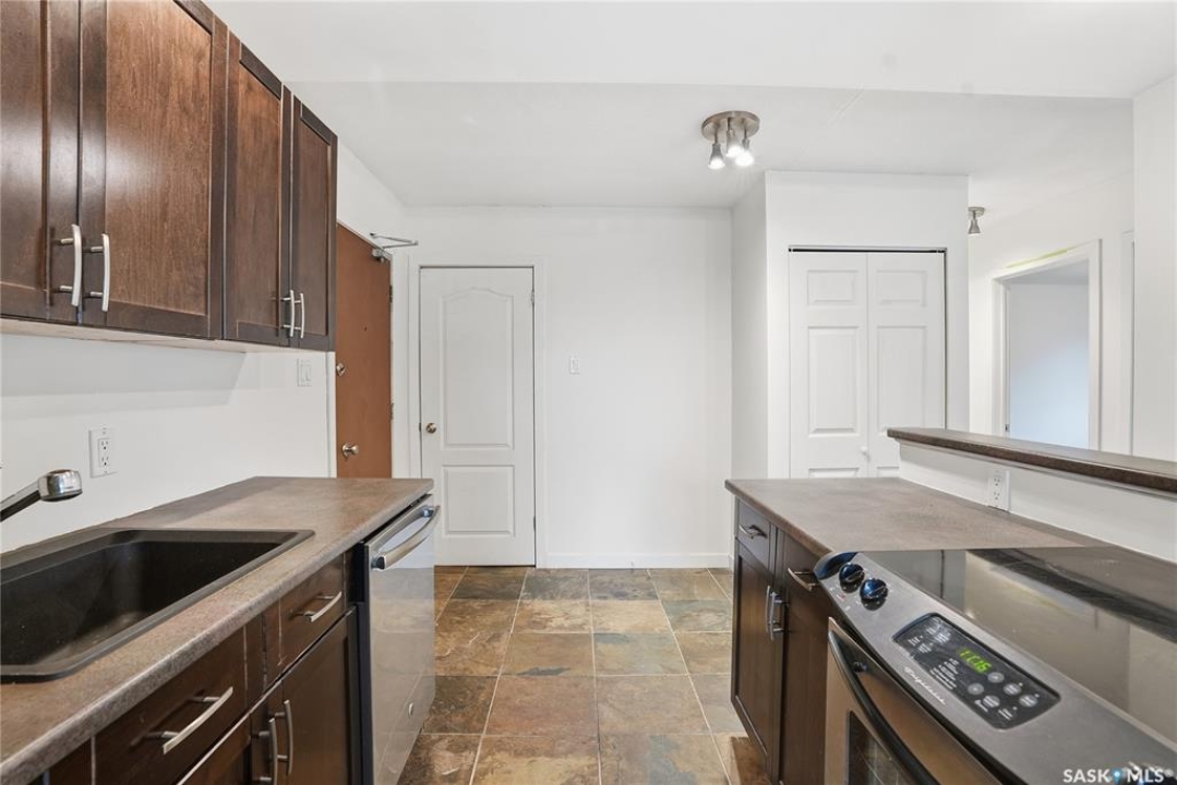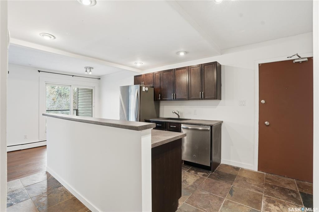Welcome to this lovely top floor corner unit at Caswell Arms in Caswell Hill. The layout is very functional with an open concept kitchen and spacious living room. The dining area features a patio door leading to the balcony. There are 2 large bedrooms, one having a walk in closet, and a full 4 piece bathroom. The storage room has in suite laundry, and there is shared laundry on the ground floor. This unit comes with on parking stall. This building is well maintained and has a new boiler as well as new paint and flooring in the hallways. This great condo is ready for new owners to call it home! Call your REALTOR � to view today.