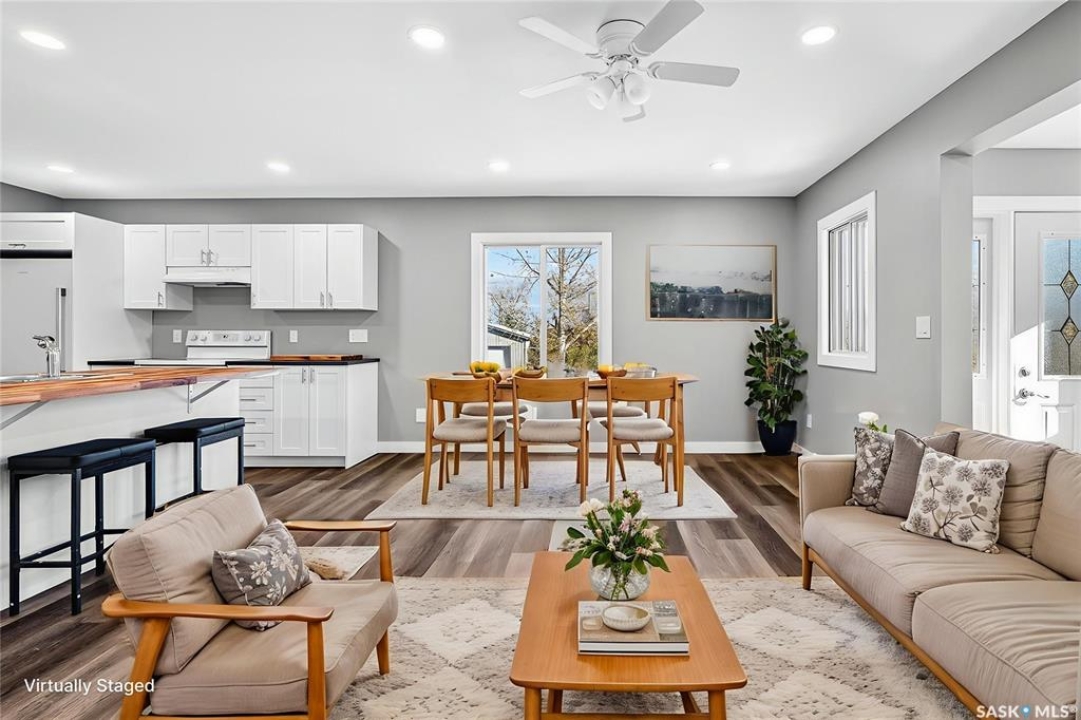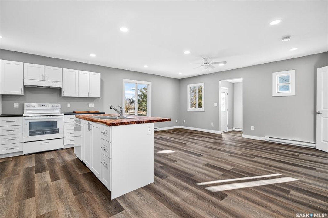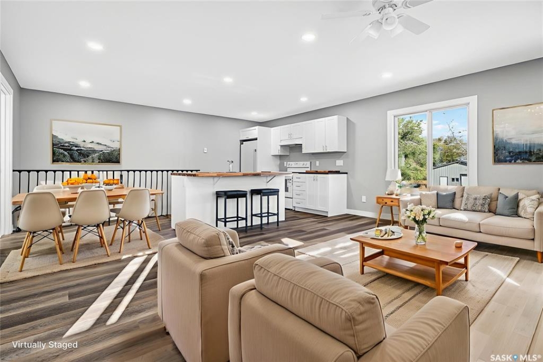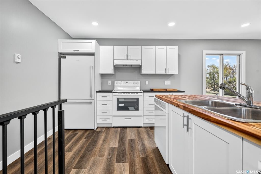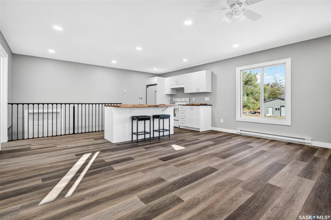 Are you looking for a house with a dream garage? This could be it! This beautifully renovated home has excellent curb appeal when you arrive! Heading inside your are greeted by a spacious entrance that leads to a large open concept living area! The huge living room boasts lots of natural light and lots of space for entertaining! The new kitchen features lots of storage, butcher block counters, an eat-up breakfast bar and new appliances. Also on the main floor we find a gorgeous 4 piece bath complete with a tile tub surround! Finishing off the main floor we have a large walk-in pantry and a laundry room! Heading downstairs we have a family room and a second bathroom with a shower! There is also 2 bedrooms here; one with a large walk-in closet that could be used an office. This home has been beautifully renovated - inside and out. The huge oversized triple attached garage is sure to be every guy's dream - this 32' x 32' garage is insulated and boasts 12' ceilings. With 2 overhead doors, a floor drain, its own panel with 2 x 220v plugs - one ready for a heater and one ready for a welder. All new electrical service and wiring throughout - 200 amp main with 100 in house and garage and 220v plugs in garage. Brand new kitchen, updated bathrooms, new flooring throughout, some new drywall and insulation, new siding, new tin roof and so much more! You are sure to be impressed! Located in Mortlach - less than 30 minutes from Moose Jaw. Mortlach is a bustling little town with a number of small businesses and a K-12 school. Quick possession is available! Reach out today to book your showing!