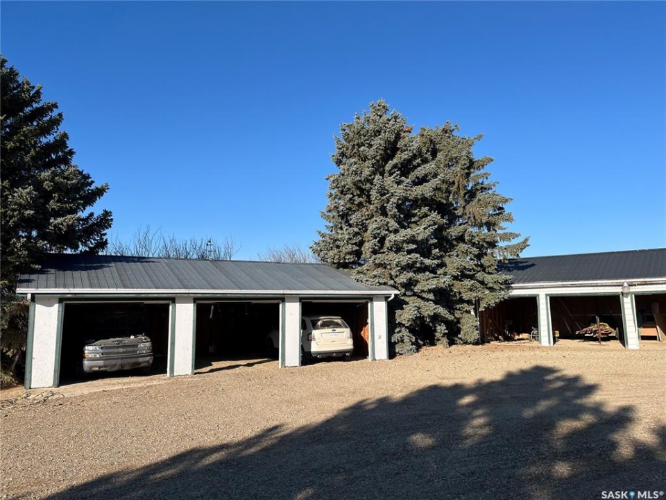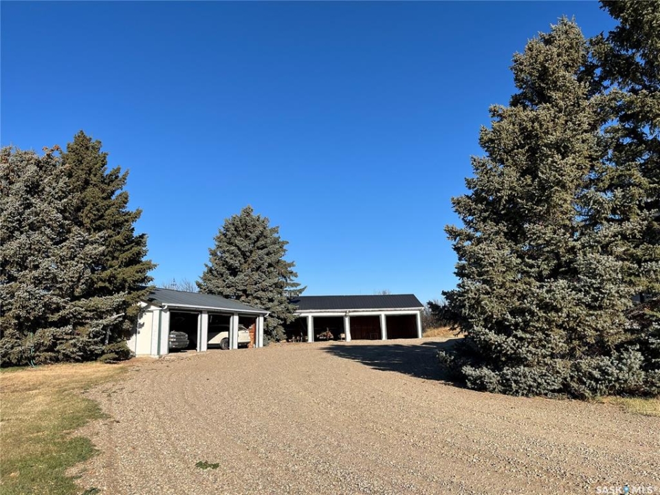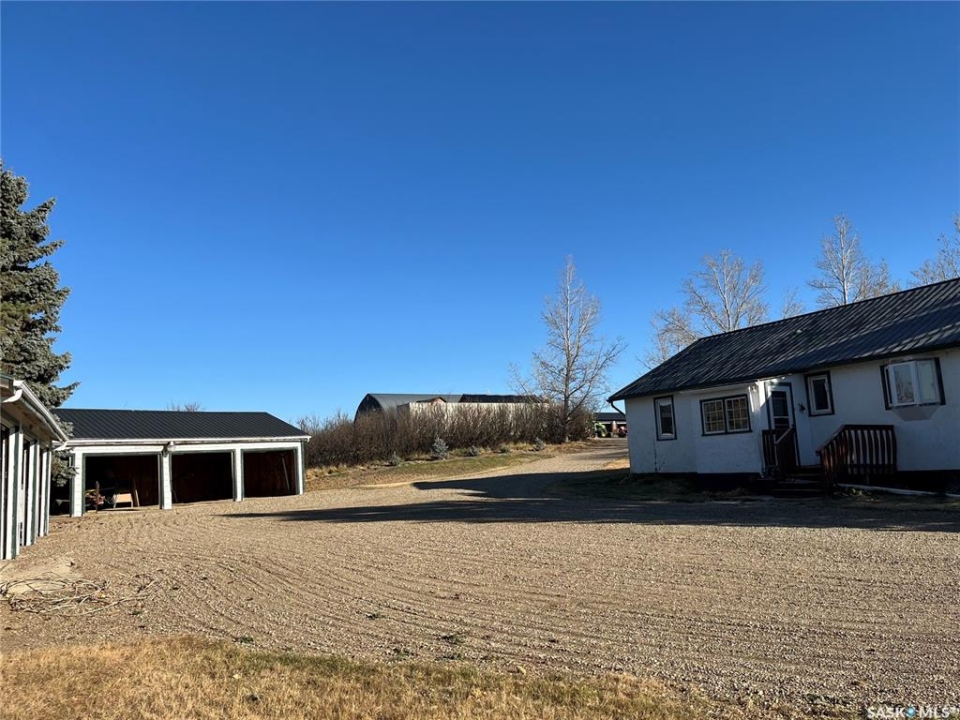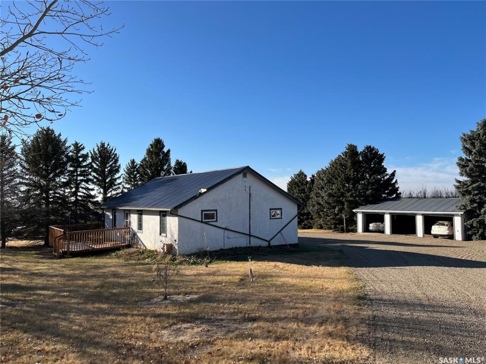 Here is an acreage with options. The house is a 1954 build with 2 bedrooms, kitchen, living room and 4 pc. bath on main. 2 bedrooms , a 3pc bath and rec room with storage and utility areas complete the basement. This home includes recent kitchen update, newer flooring, vinyl windows and steel roof. Current owner/seller has been collecting and refurbishing older vehicles for years. The heated shop is 32' x 48', quonset is 30' x 50', barn is 28 x 40. There are 2- 10'x20' steel sheds, a 3 car garage by the house, a 4 car garage, a 2 car garage and several small storage sheds. The 2 - 53' Sea Cans are included in the sale, one used for vehicle storage and one with shelving for storage. The yard is surrounded with an excellent shelter belt. Some new evergreens have been planted in recent years. There is potential here for someone to live away from the hustle and bustle but still have access to pavement and nearby amenities. Whether you want to restore vehicles, run a shop or have a place for a few horses or a small livestock operation this will suit your needs.