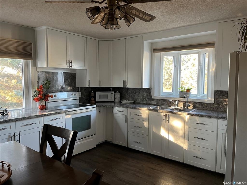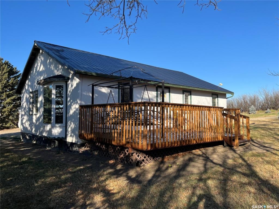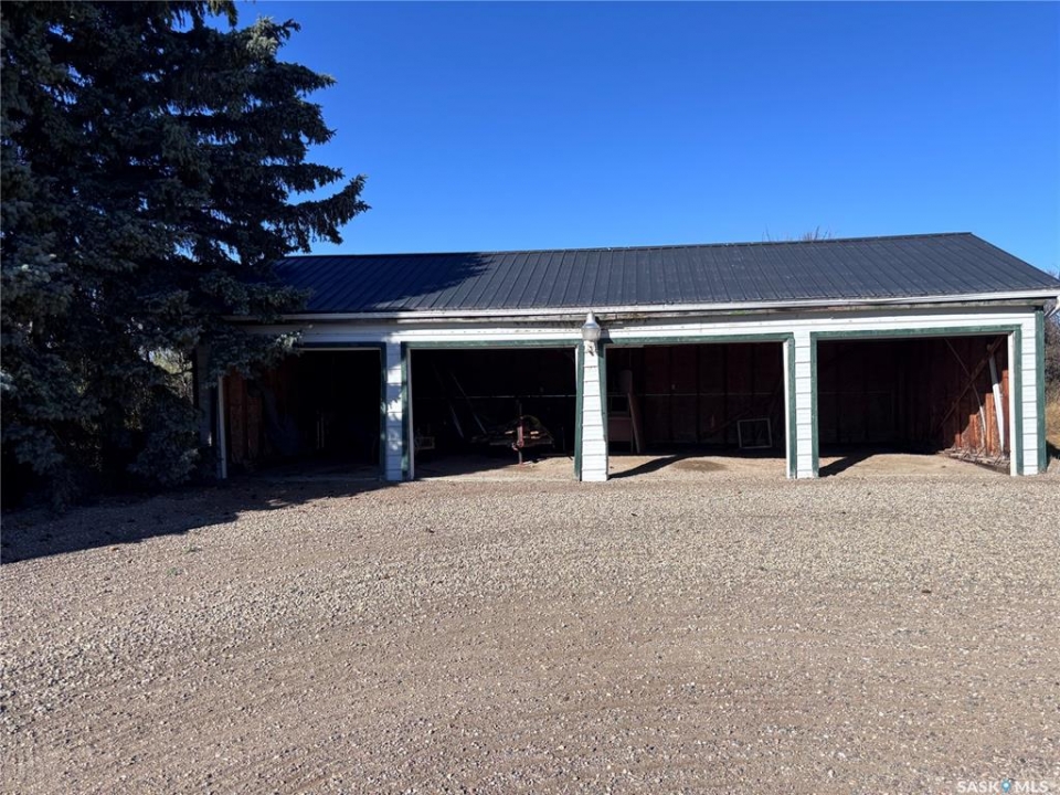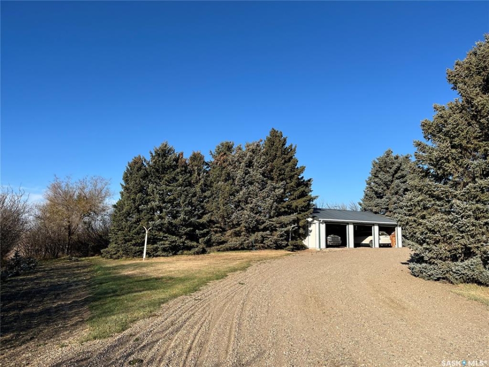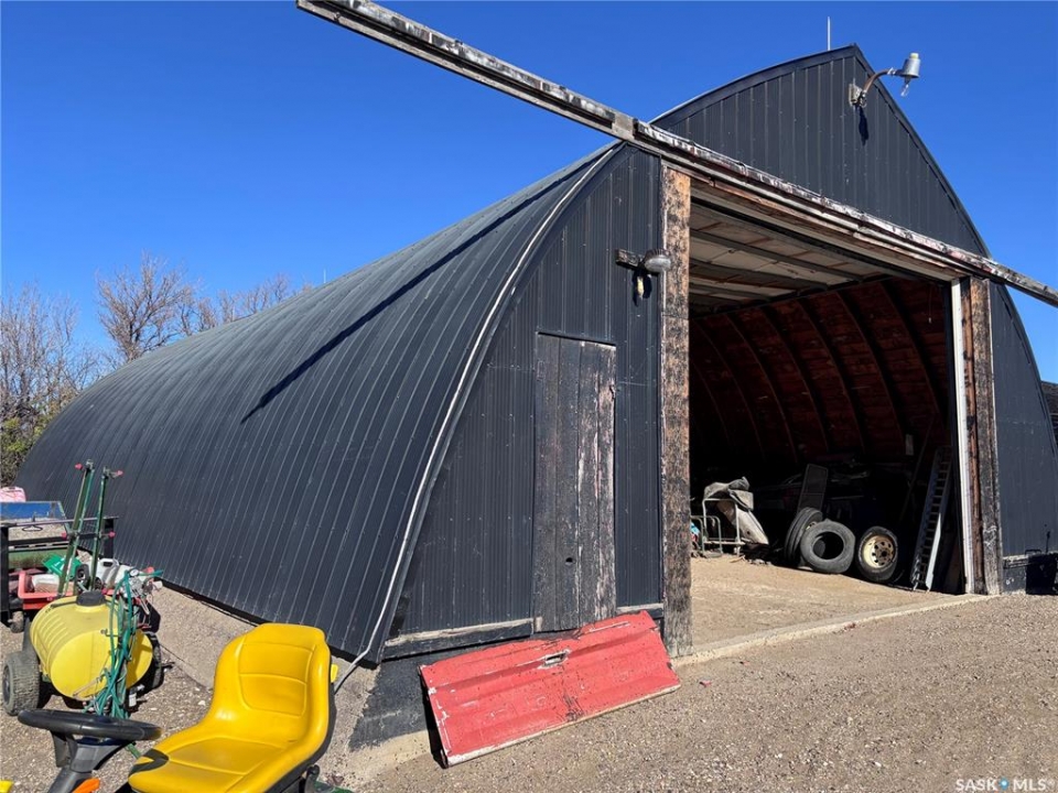 Here is an acreage with options. The house is a 1954 build with 2 bedrooms, kitchen, living room and 4 pc. bath on main. 2 bedrooms , a 3pc bath and rec room with storage and utility areas complete the basement. This home includes recent kitchen update, newer flooring, vinyl windows and steel roof. Current owner/seller has been collecting and refurbishing older vehicles for years. The heated shop is 32' x 48', quonset is 30' x 50', barn is 28 x 40. There are 2- 10'x20' steel sheds, a 3 car garage by the house, a 4 car garage, a 2 car garage and several small storage sheds. The 2 - 53' Sea Cans are included in the sale, one used for vehicle storage and one with shelving for storage. The yard is surrounded with an excellent shelter belt. Some new evergreens have been planted in recent years. There is potential here for someone to live away from the hustle and bustle but still have access to pavement and nearby amenities. Whether you want to restore vehicles, run a shop or have a place for a few horses or a small livestock operation this will suit your needs.