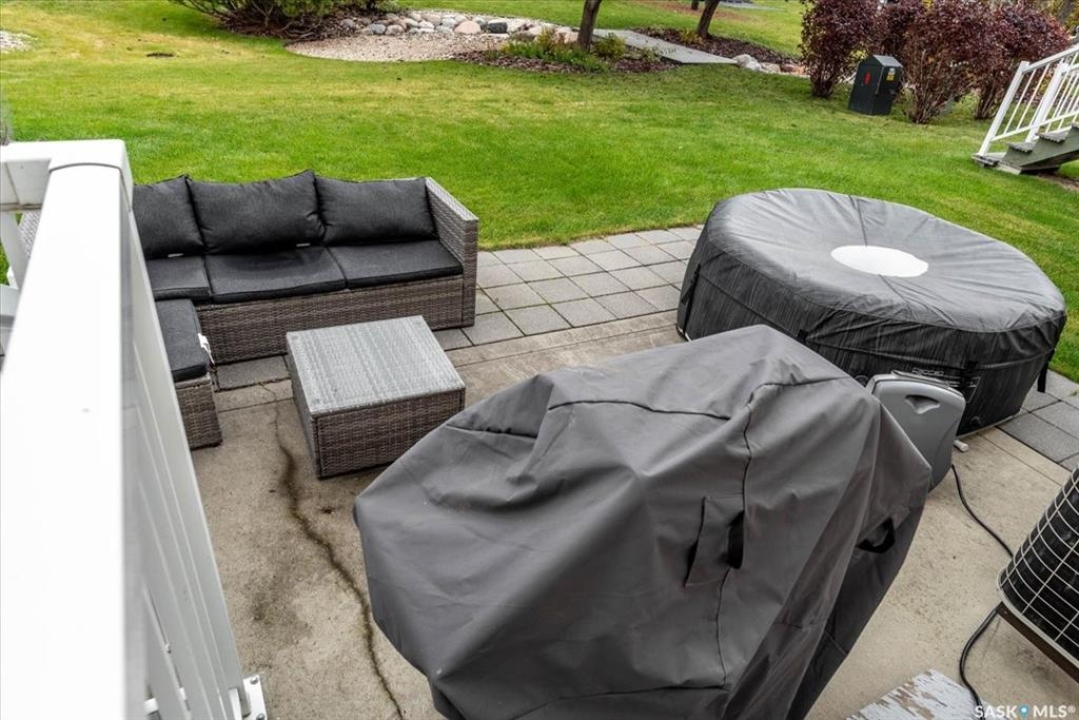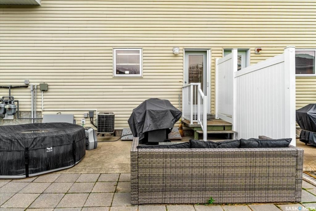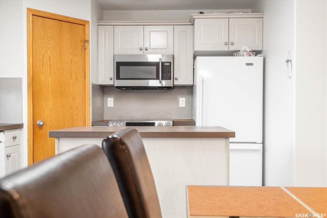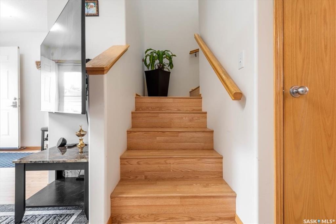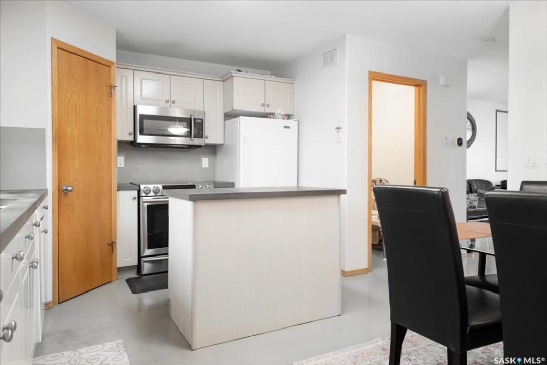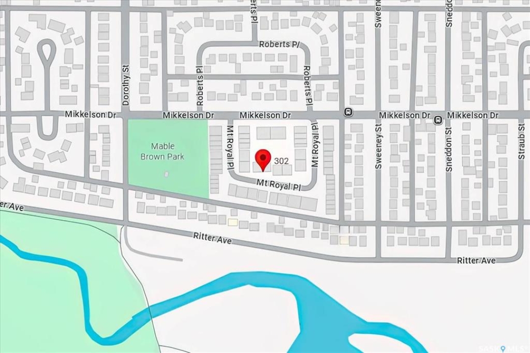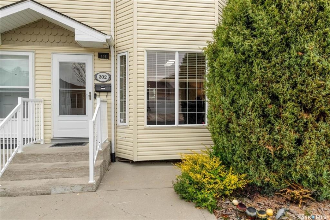 Welcome to 302 Mount Royal Place..This 1176sqft 2-storey townhouse-style condominium offers an ideal south-facing orientation, capturing abundant natural light and beautiful courtyard views. The bright and inviting living room features a charming bay window that fills the space with sunshine throughout the day. The kitchen is both stylish and functional, complete with ample cabinetry, contemporary concrete-style countertops and flooring, a corner pantry, and a convenient center island. Adjacent to the kitchen, the spacious dining area is perfect for family meals or casual entertaining. A garden door opens to a private patio overlooking the beautifully maintained courtyard—an ideal spot to relax or host guests. A convenient half bath completes the main floor. Upstairs, you'll find two generously sized bedrooms. The primary bedroom includes a 3pce ensuite and double closets, while the second bedroom provides plenty of space and comfort. The developed basement adds versatility, featuring a comfortable family room and a den, that could be used as a guest room, home office, gym, or media space. The laundry and utility room also has additional cabinetry and storage solutions that make organization and seasonal storage effortless. Appliances included are the fridge, stove, built-in dishwasher, microwave hood fan, washer, dryer, as well as a basement fridge and freezer. Additional highlights include central air conditioning, designated visitor parking, and your own parking space located directly outside the front door for added convenience. Pets are permitted with board approval. This well-maintained townhouse offers the perfect blend of comfort, convenience, and contemporary living in a desirable location. Schedule your private viewing today and experience the charm this home has to offer you and your family!