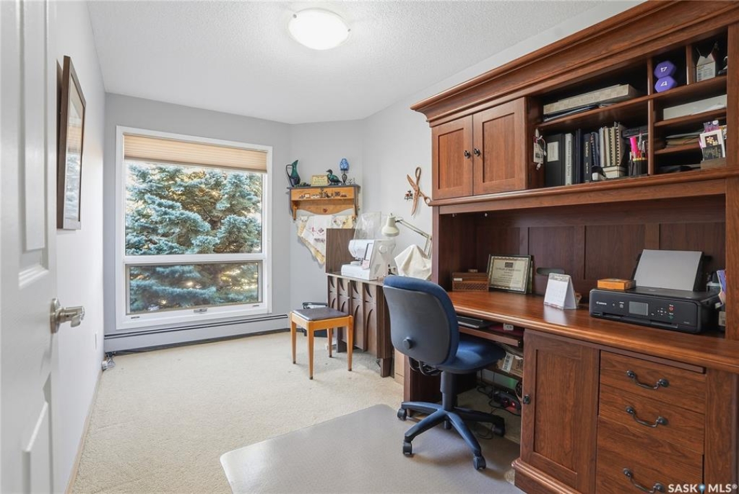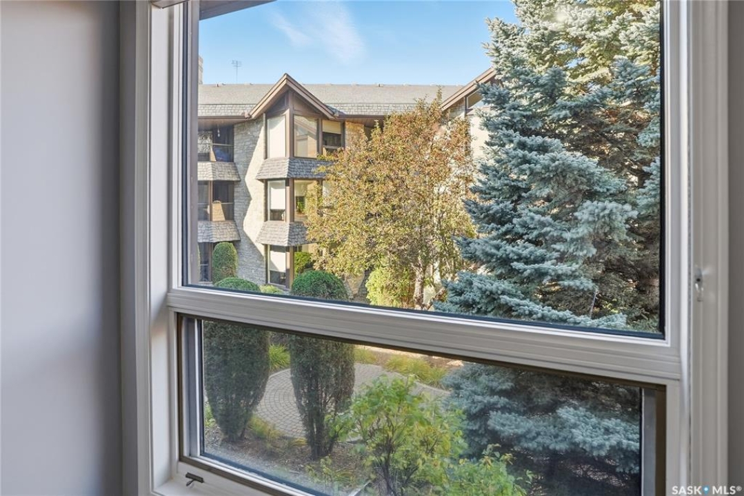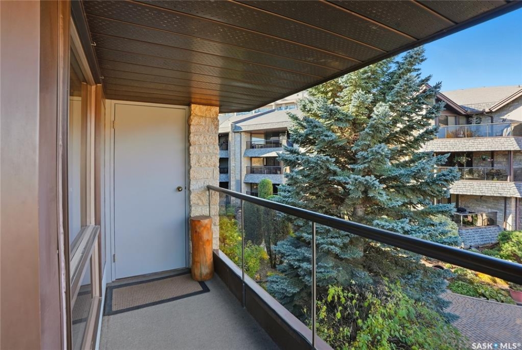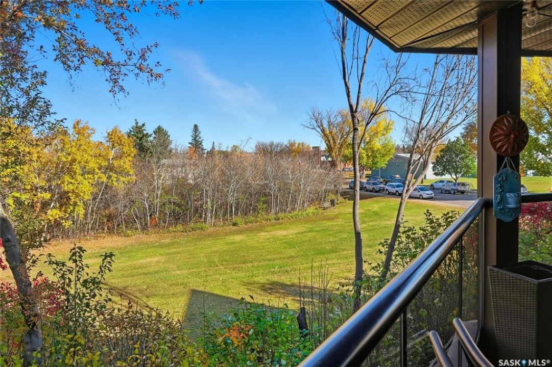 Welcome to Chalet Gardens, an exceptionally maintained and highly sought-after condominium complex located directly across from Market Mall. This immaculate 1,390 sq. ft. corner unit offers a perfect blend of comfort, functionality, and style, featuring two bedrooms plus a den, and an abundance of natural light throughout. From the moment you step inside, you'll appreciate the thoughtful design and meticulous care that has gone into maintaining this home. The kitchen and dining room have a beautiful view of the park and a large wrap around balcony. An abundance of cabinetry, and a large pantry that provides ample storage space. The open-concept layout creates a bright and inviting atmosphere, with large windows that fill the space with natural light. The spacious primary bedroom features , a large walk-in closet, and a four -piece ensuite. The second bedroom and den offer flexibility for guests, hobbies, or an office, allowing the space to adapt to your lifestyle needs. One of the standout features of this home is the covered wrap-around deck, offering an excellent view of the surrounding parks and green spaces. It's an ideal spot to enjoy your morning coffee or unwind at the end of the day, with the added convenience of an outdoor storage room right on the deck. The Chalet Gardens community is known for its well-managed amenities and welcoming atmosphere. The building includes a video intercom system for added security, an amenities room for gatherings, a fully equipped carpenter's workshop in the basement, and underground parking complete with a car wash and storage area. Additional underground parking spaces are available for rent, and residents also enjoy the convenience of free on-site RV parking. Surrounded by beautifully landscaped grounds and a peaceful courtyard, this complex fosters a true sense of community with a variety of social activities available for residents.