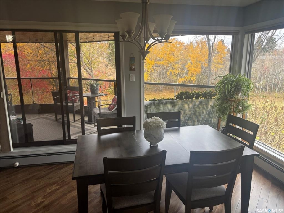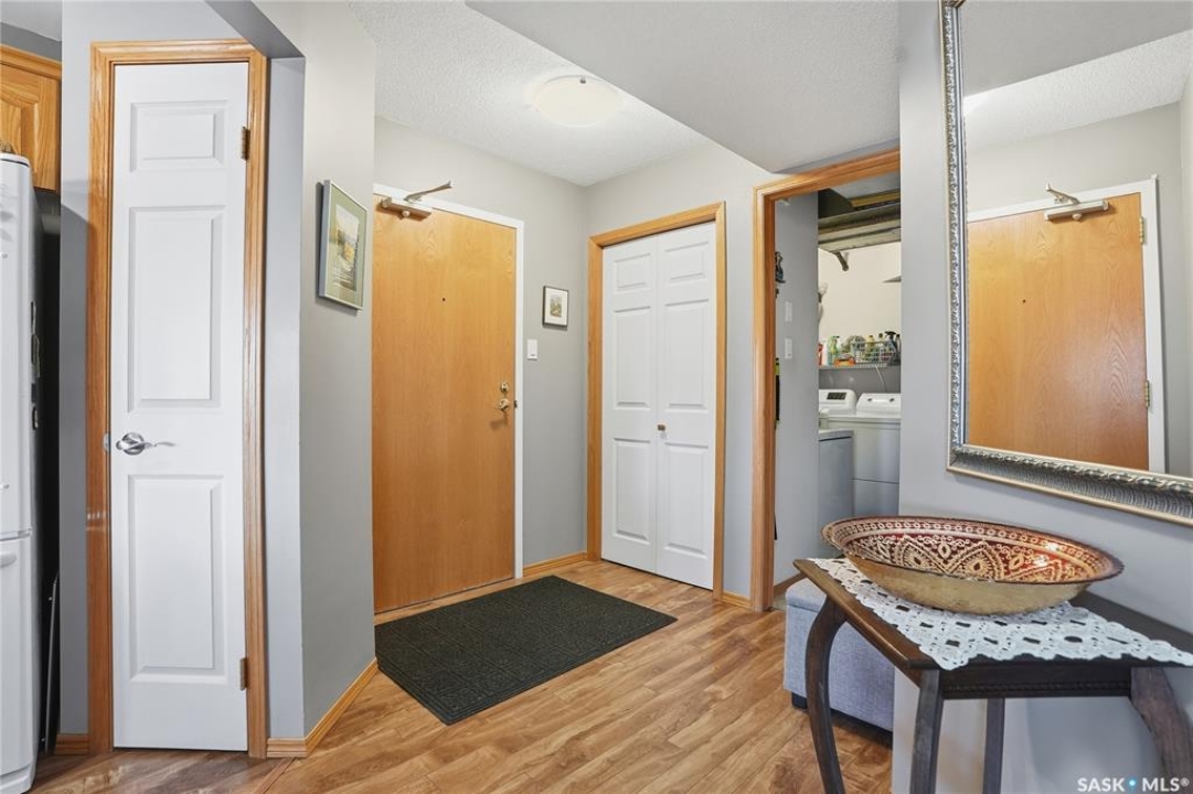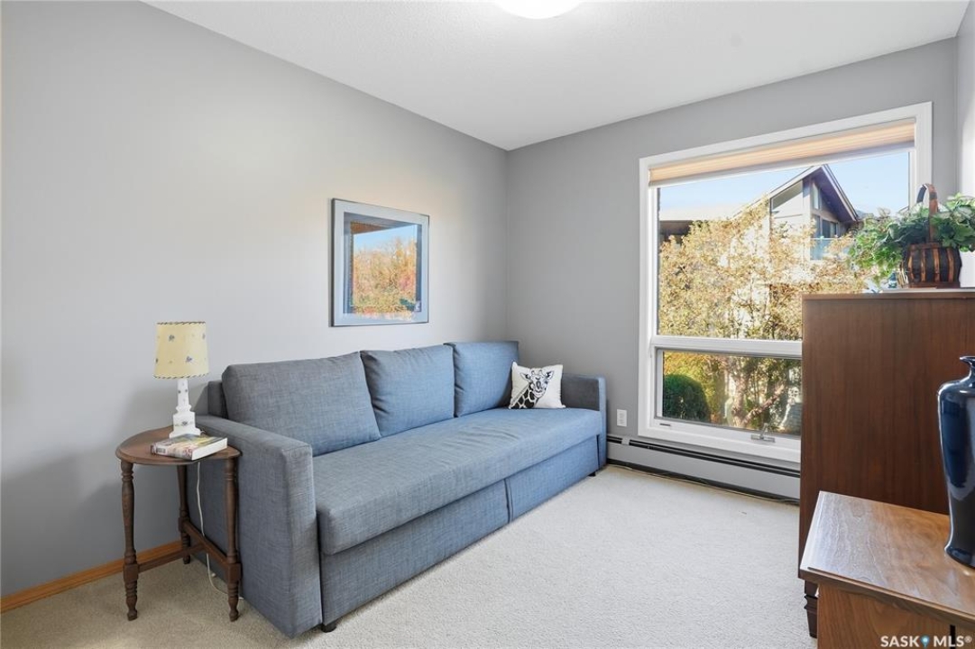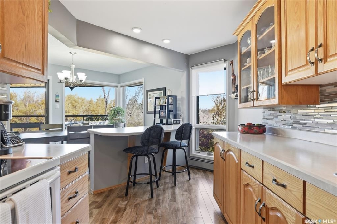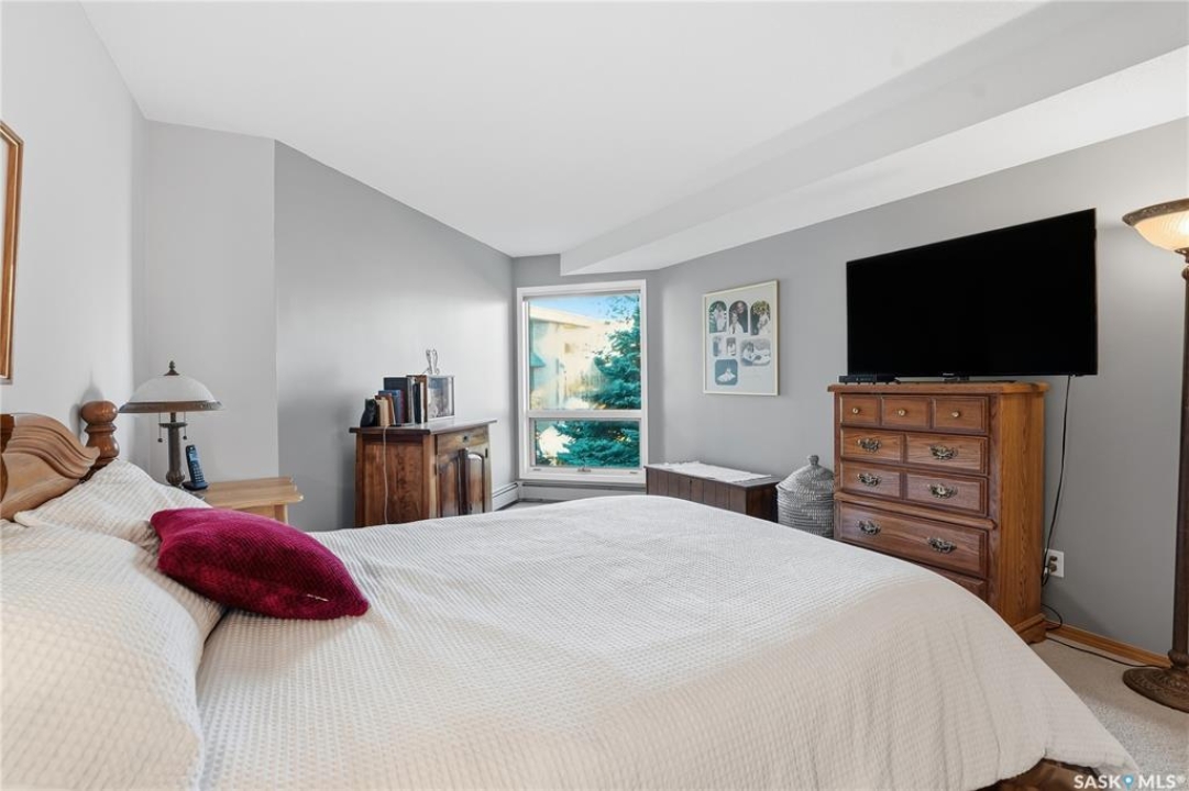 Welcome to Chalet Gardens, an exceptionally maintained and highly sought-after condominium complex located directly across from Market Mall. This immaculate 1,390 sq. ft. corner unit offers a perfect blend of comfort, functionality, and style, featuring two bedrooms plus a den, and an abundance of natural light throughout. From the moment you step inside, you'll appreciate the thoughtful design and meticulous care that has gone into maintaining this home. The kitchen and dining room have a beautiful view of the park and a large wrap around balcony. An abundance of cabinetry, and a large pantry that provides ample storage space. The open-concept layout creates a bright and inviting atmosphere, with large windows that fill the space with natural light. The spacious primary bedroom features , a large walk-in closet, and a four -piece ensuite. The second bedroom and den offer flexibility for guests, hobbies, or an office, allowing the space to adapt to your lifestyle needs. One of the standout features of this home is the covered wrap-around deck, offering an excellent view of the surrounding parks and green spaces. It's an ideal spot to enjoy your morning coffee or unwind at the end of the day, with the added convenience of an outdoor storage room right on the deck. The Chalet Gardens community is known for its well-managed amenities and welcoming atmosphere. The building includes a video intercom system for added security, an amenities room for gatherings, a fully equipped carpenter's workshop in the basement, and underground parking complete with a car wash and storage area. Additional underground parking spaces are available for rent, and residents also enjoy the convenience of free on-site RV parking. Surrounded by beautifully landscaped grounds and a peaceful courtyard, this complex fosters a true sense of community with a variety of social activities available for residents.