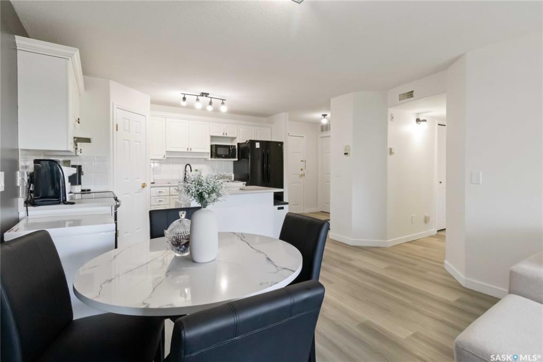 This mint 2-bedroom, 2-bath condo faces east, overlooking the parking lot and open green space. Recent updates include new vinyl plank flooring, a brand-new bathtub, fresh paint, and new blinds throughout. The building offers underground parking with storage, an amenity room, and a guest suite. Ideally located within walking distance to Heritage Park and Lakewood Park trails, and just a short walk to Lakewood Centre for swimming and fitness classes. Priced well and open to offers.