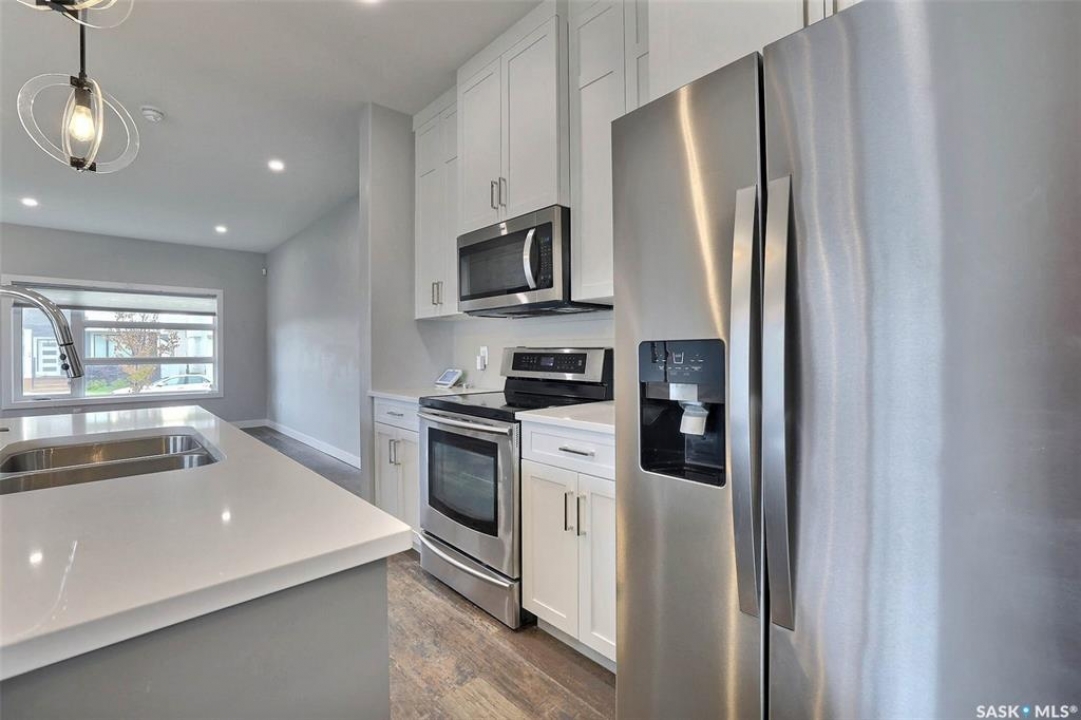Gorgeous brick accented street appeal on this great family home built by master builder Ehrenburg Homes. This Ashwood model former Showhome is completely developed with many upgrades. New luxury vinyl plank flooring throughout main and 2nd level including the staircase allows carpet free living! Spacious front entrance leads to wide open floorplan. Large living room with fireplace stackstone feature wall and large south facing picture window allowing in an abundance of natural light. Gorgeous kitchen with upgraded white to the ceiling cabinetry, pantry cupboard, stone counter tops and custom tiled backsplash. Centre island in contrasting contemporary grey adds additional prep space and eating bar. Generous sized dining room surrounded by windows overlooking rear yard and side street. 2pc powder room and storage closet at back entrance. 2nd level features primary suite that will easily accommodate a king bed with walk in closet and 3pc ensuite featuring extra long double sink vanity for extra storage. 2 additional bedrooms are generously sized, main bath and handy 2nd floor laundry room. The large corner allows in extra light and on street parking and very easy side entrance access to the legal basement suite fully developed to builder specs! Large living room with kitchenette, bedroom and 3pc bath plus laundry and storage room. Suite also features durable LVP flooring throughout. Fully fenced rear yard has large deck and lush lawn with rock border accents. Double detached garage is fully insulated, heated and wired for 220. Has extra tall ceiling and overhead door allowing for larger or lifted vehicles. Alley access is also adjacent to the main street allowing more room to maneuver. All Ehrenburg Homes offer a superior construction foundation with a 4" rebar reinforced slab and are built on piles. Rebar reinforced rear pad under garage. Quick poss available. Call today!