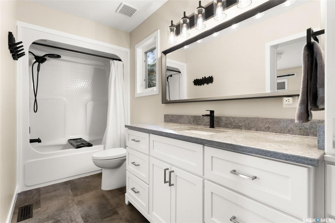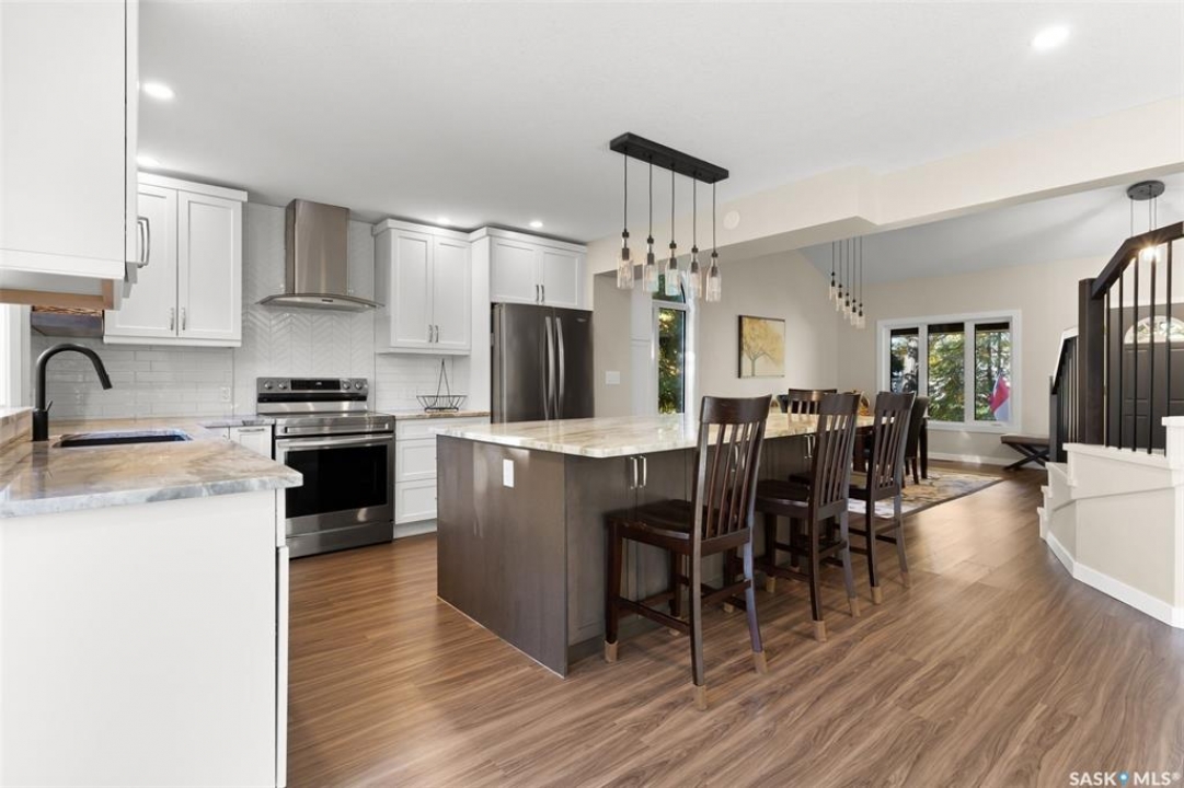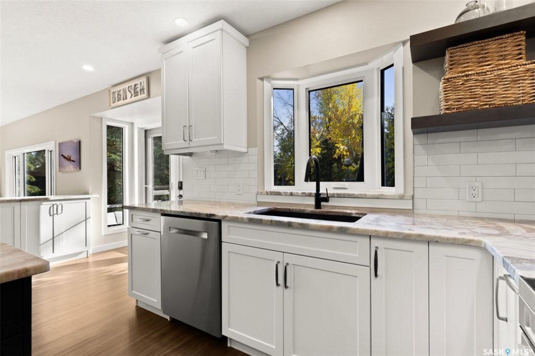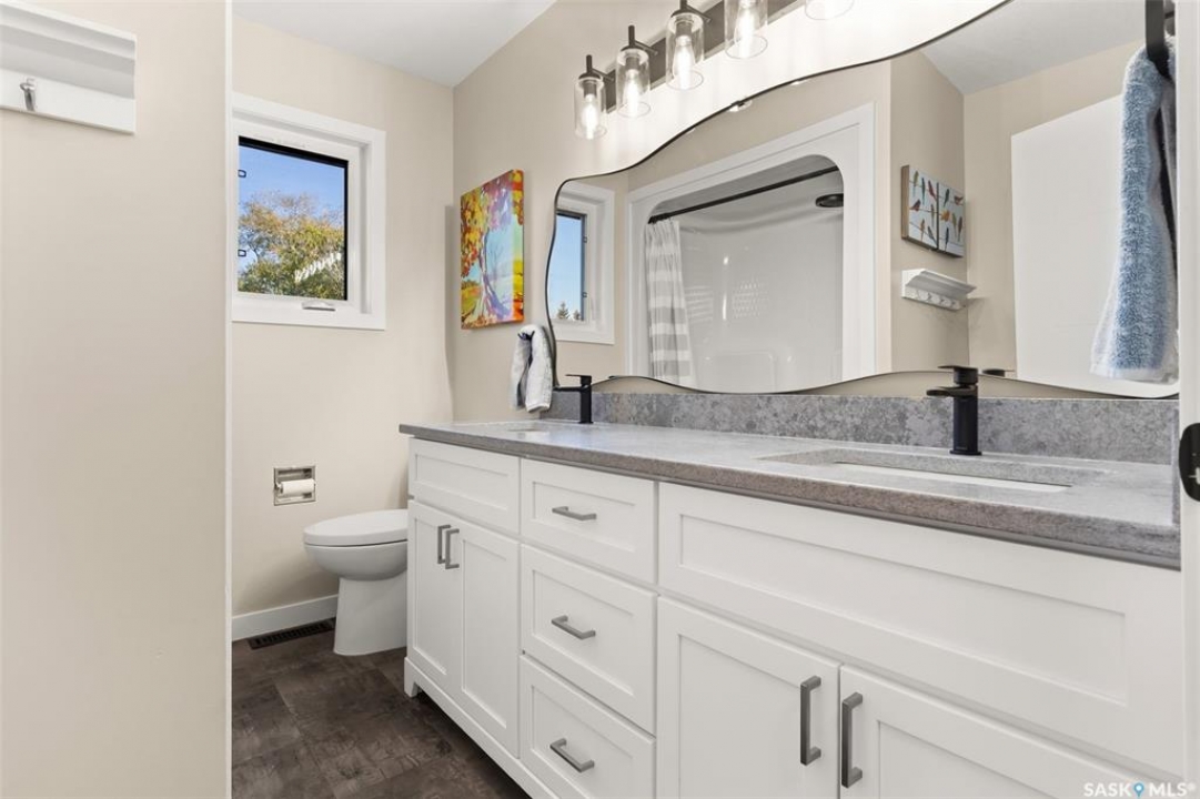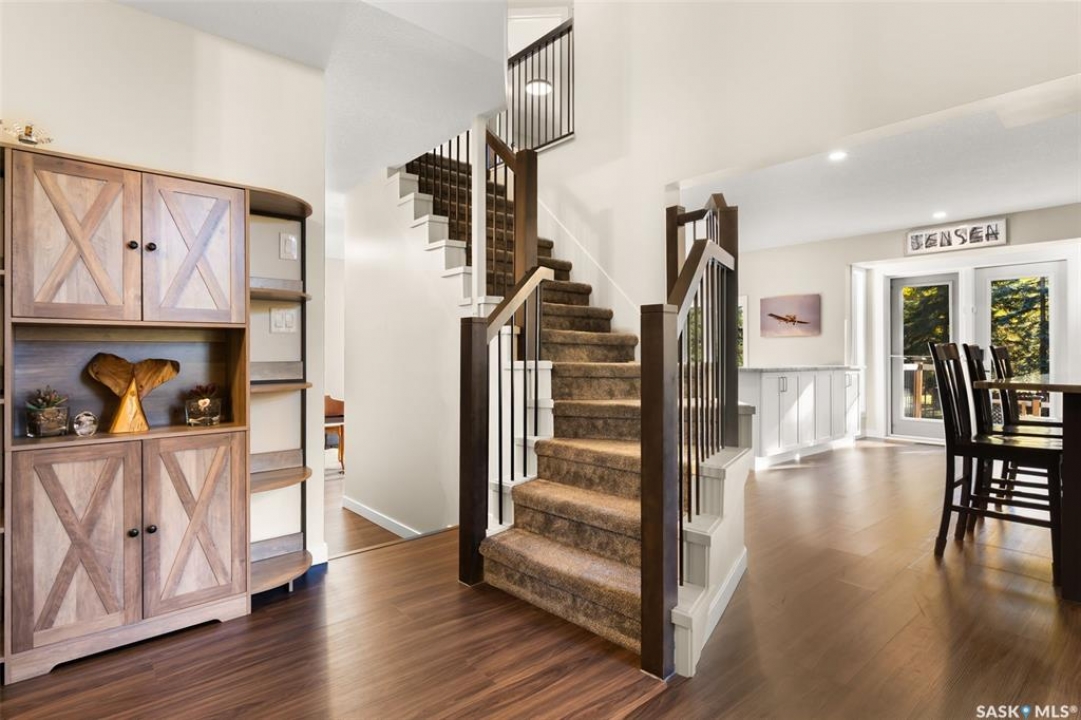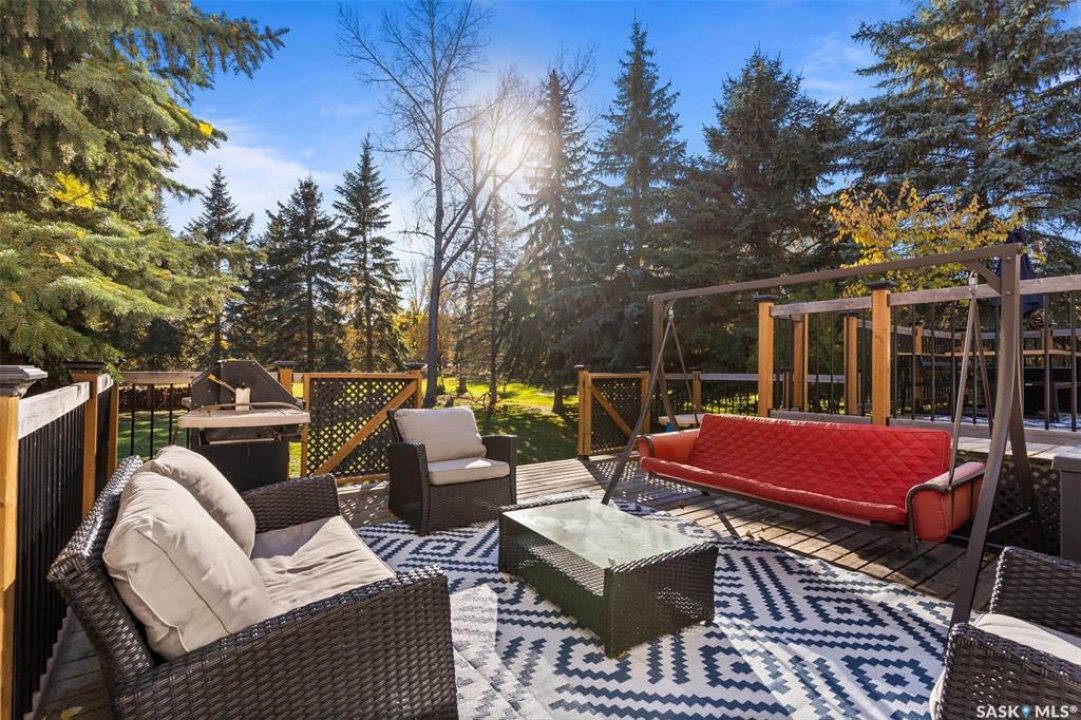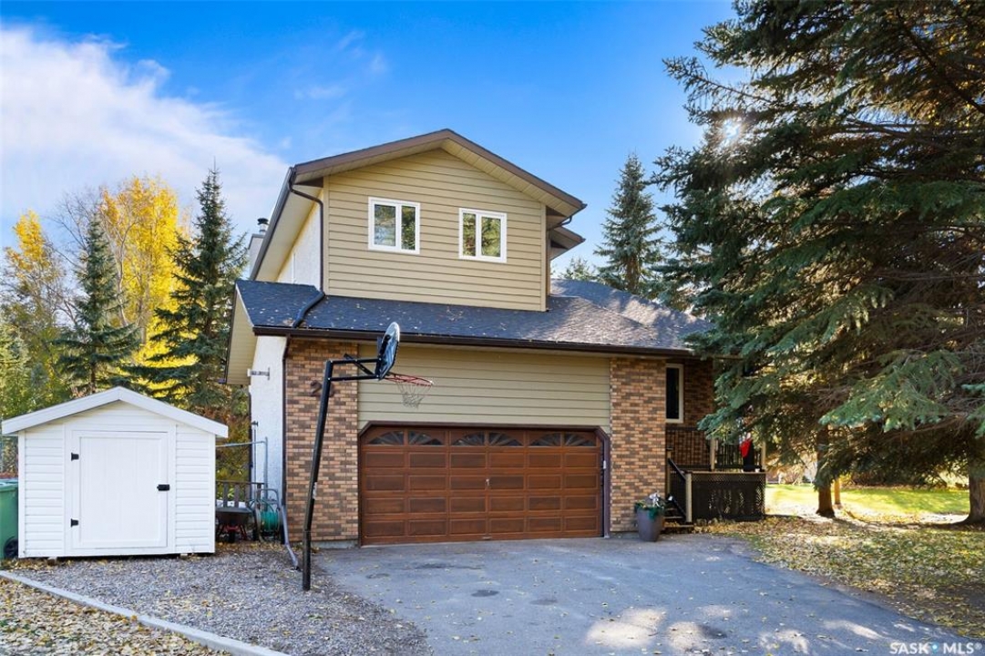 Are you looking for that perfect "White City family home" that is located in a mature area surrounded by large trees & gorgeous scenery? That has been fully renovated to feel like a new home? That is situated on one of those huge White City lots that is over half an acre in size? That also backs onto a beautiful peaceful park? That is only 4 homes away from Ecole White City School so the kids don't have to walk far? That's a pretty big wish list, but, this home checks every box! This wonderful family home has been extensively renovated by its current owners over the past 2 years. They have installed new exterior doors (except the front door), new windows, new flooring, opened up the main floor, a new gorgeous custom kitchen with granite counters that would make any chef smile, new bathrooms, new light fixtures, new trim & baseboards, new interior doors, refinished the ceilings, new water softener, new furnace, new electrical panel & so much more. This home backs south & the main floor is flooded with natural light. Other notable features include vaulted ceilings over the main floor dining area. There is a wood burning fireplace in the main floor family room (sellers had it inspected in 2023). There is a dedicated laundry room on the main floor. The upstairs offers 4 bedrooms plus a reading nook! The primary bedroom offers a walk-in closet & full 4 piece ensuite. The basement offers large windows, a huge L-shaped family room & rec-room area, a den (that is used as a bedroom, it has a window but no closet), a 2 pc bathroom (provisions do exist to install a tub or shower if wanted) & the utility room. The 2 car attached garage is insulated, heated & offers mezzanine storage. The massive yard features a 2 tiered deck, a shed, a dog run, a firepit area, room for a shop or a backyard rink & a private well for exterior irrigation (only). This home shows very well & does not disappoint. View "Multmedia" link for 3D virtual walk through tour & other info. Call for more info.