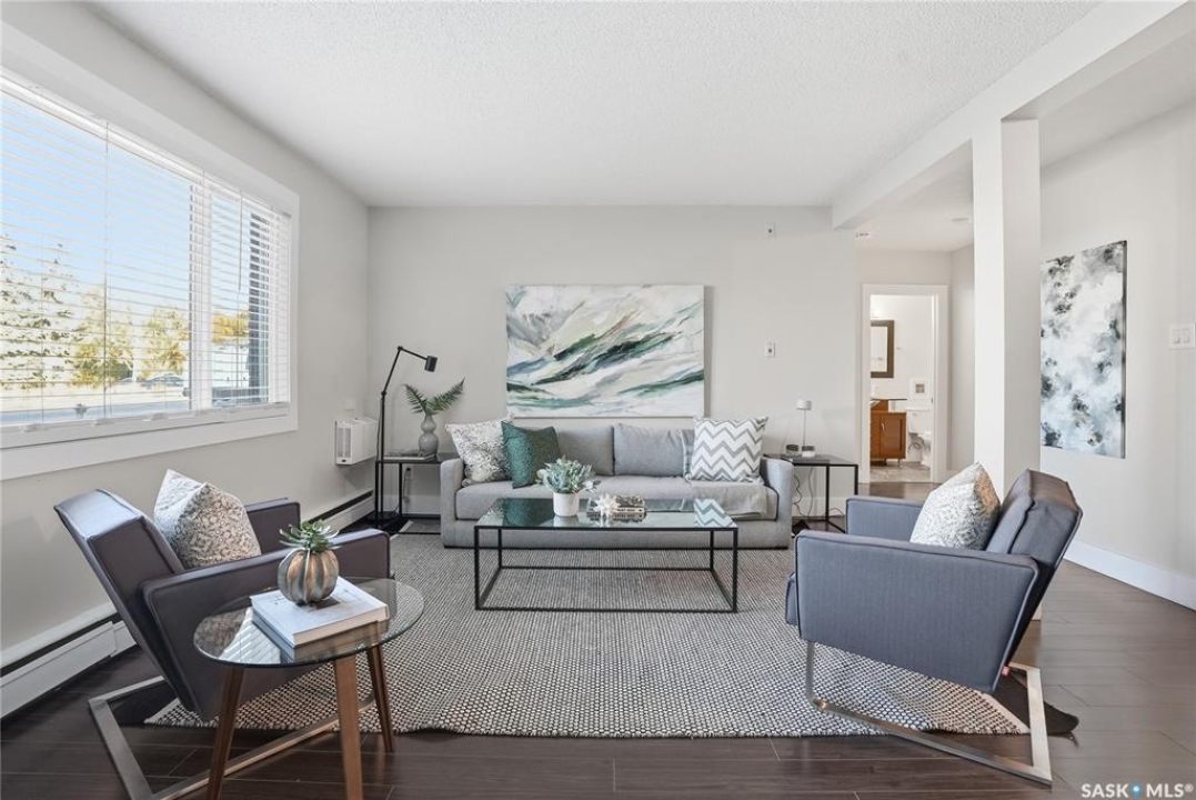 Attended first time homebuyers. This unit is truly a gem and it's located near the riverbank. This ground floor one bedroom condominium has an open concept and it has been completely upgraded. Cozy living room with an open floor plan and large window. Convenient laundry in the unit. Pets allowed with board approval. Just move in and enjoy.