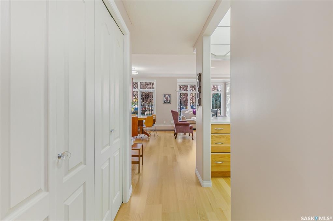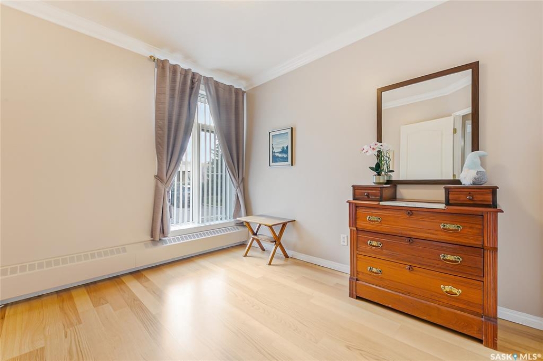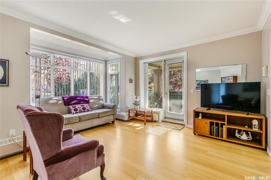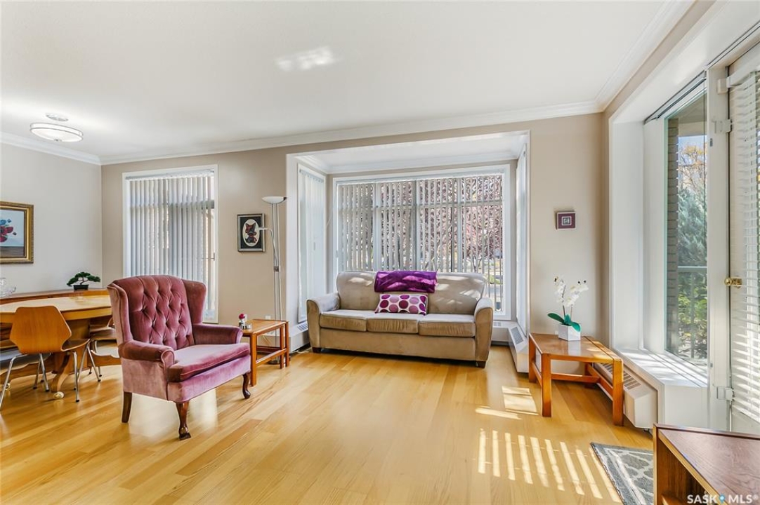 Your Best Move: Exceptional Value in College Court! Welcome to this perfectly-priced, 2-bedroom, 1-bathroom main-floor unit offering exceptional value in Regina's College Court building. Located in the popular Transition Area, this property is the perfect find for any buyer. Enjoy serene views of the courtyard from your bright, well-maintained space. Access is convenient, with entry available via the main building door or a nearby rear door. Your comfort and security are a priority here. The unit comes with a desirable underground, heated parking space; a true favour on cold Prairie days. This unit also features a private storage locker located in the heated parking area, only a couple of stalls away from your private stall and the access door into the building, which is thoughtfully and meticulously well-maintained. And don't miss the amenities room! Come and hang out for a coffee with new friends, play a game of pool or shuffleboard, or have a quick workout at your convenience - this area features a kitchen and a bathroom, making planned gatherings a breeze. Live in a desirable neighbourhood with the ease of a low-maintenance, secure property like this one. Don't miss this opportunity to purchase a great condo at a great price! Call today!