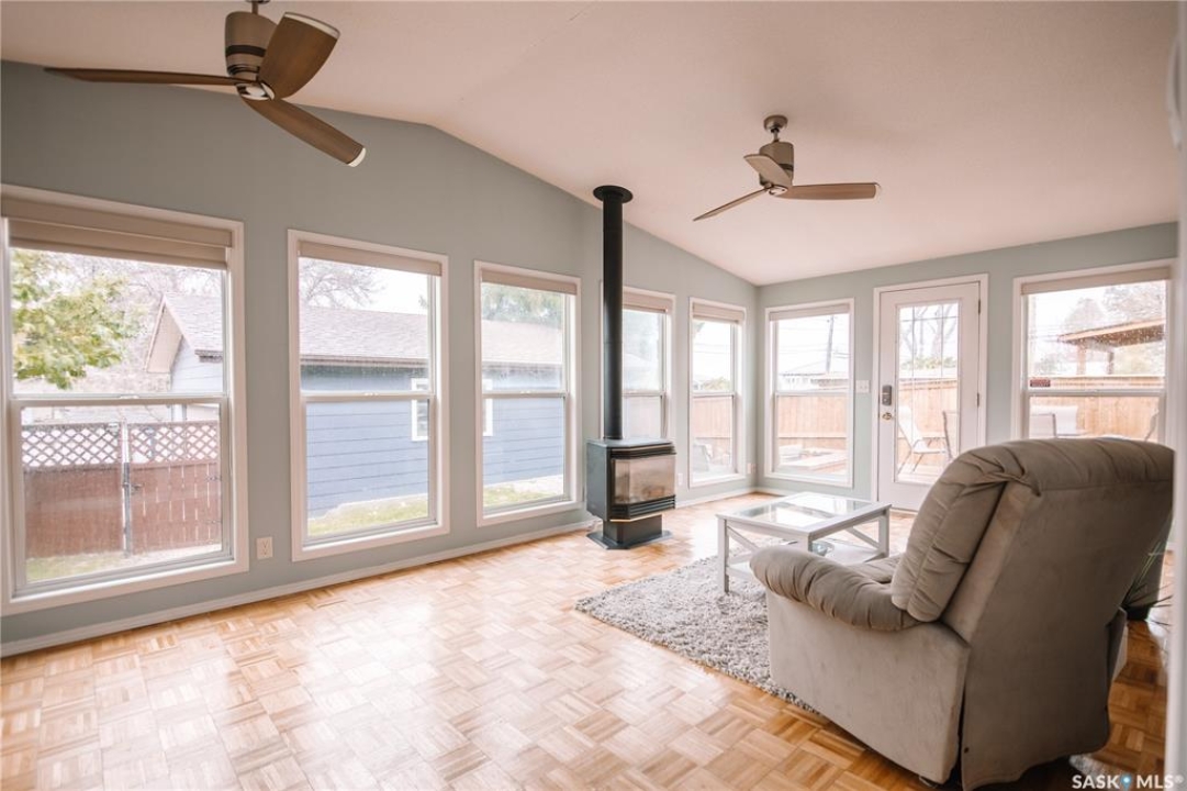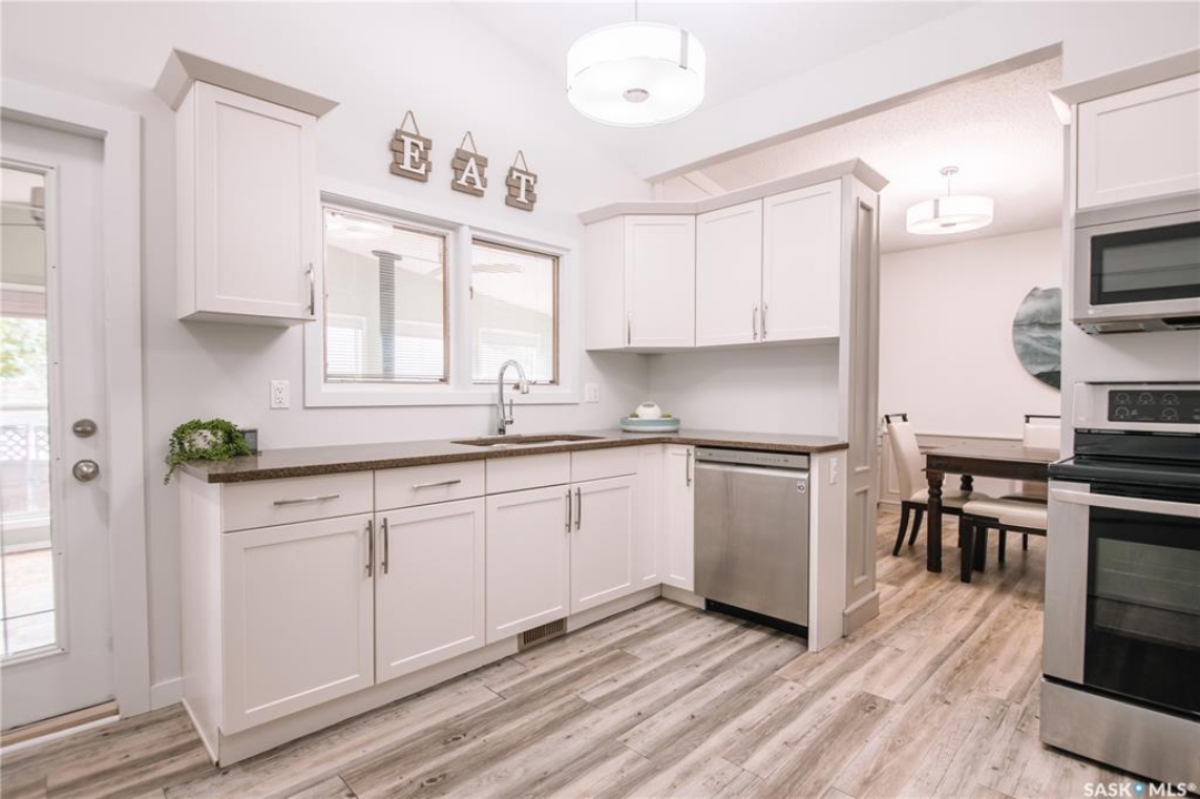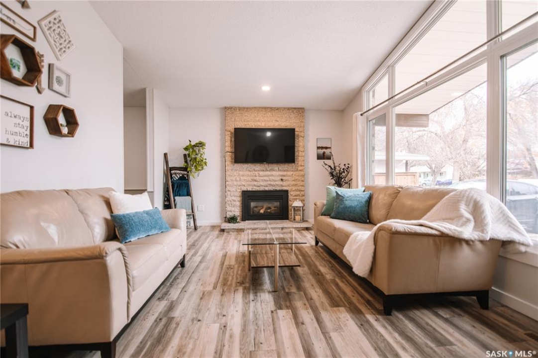 Welcome to 4180 Princess Street, a beautifully maintained family home nestled in the heart of Albert Park, just steps away from parks, schools, and all the amenities this sought-after neighbourhood offers. This inviting property features four bedrooms total, three bathrooms upstairs offering an ideal layout for families. The main floor impresses with a spacious living room highlighted by vaulted ceilings and a cozy gas fireplace, creating a warm and open atmosphere. The kitchen, updated in 2018 with modern cabinetry and flooring, includes a custom pantry (2020) that adds both style and functionality. Enjoy year-round relaxation in the sunroom, which overlooks the mature, fully landscaped yard complete with covered and uncovered deck areas—perfect for outdoor entertaining. Numerous upgrades provide peace of mind, including new windows (2020), air conditioning (2020), shingles (2023) , and fresh exterior paint (2025). The lower level offers a spacious recreation room, a fourth bedroom, and ample storage. A high-efficient furnace adds to the home's comfort and energy efficiency. The property is finished off with a double detached garage and excellent curb appeal. This well-cared-for Albert Park home is truly move-in ready—perfect for growing families seeking space, comfort, and a prime location.