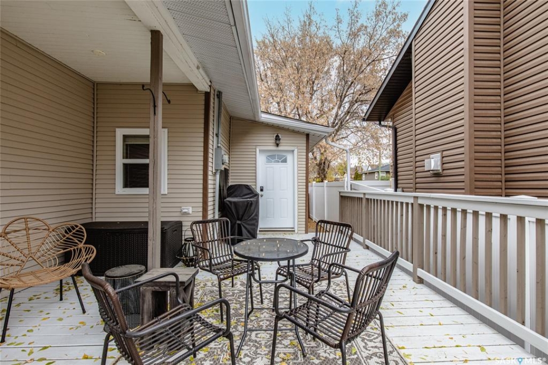 645 Hochelaga St W – A Perfect Blend of Character & Modern Comfort A home with character, beauty, and every modern update you could want! ? Fully renovated down to the studs in 2013 and lovingly maintained ever since, this stunning property offers timeless charm paired with thoughtful design. From the elegant columns in the dining room to the bright white mantel in the living room and the beautifully designed loft space, every detail invites you to imagine life here. Main Floor Highlights: A welcoming front den, ideal as a home office or cozy reading nook Sun-filled front rooms perfect for enjoying your morning coffee A spacious Primary suite with a large walk-in closet, room for wardrobes or mirrors, and a private 3-piece ensuite A generous second bedroom with ample closet space A show-stopping main bath featuring a jetted tub, separate glass shower, and spa-like finishes A well-designed kitchen with double oven, new refrigerator (June 2025), built-in dishwasher, and a stylish coffee/bar area for entertaining Second Floor Retreat: A bright and airy bonus room with windows all around—no basement family room needed here! Convenient 2-piece bathroom A large bedroom with a huge walk-in closet, perfect for guests or family Efficiency & Comfort: Radiant boiler heat for cozy winters LED lighting throughout One portable and one window A/C unit (both new in June 2025) included Outdoor Living: Large partially covered deck, ideal for BBQ's and entertaining Spacious backyard, ready for family, pets & activities Newer double car garage (2013) Location: Nestled on a quiet street just two blocks from a school and close to all Moose Jaw amenities, this home is ideal for families, professionals, or anyone seeking a blend of convenience and charm. And with the holidays approaching, you'll love decorating this home—it was made for creating memories. Book your showing today and prepare to be impressed by this fully updated character home!