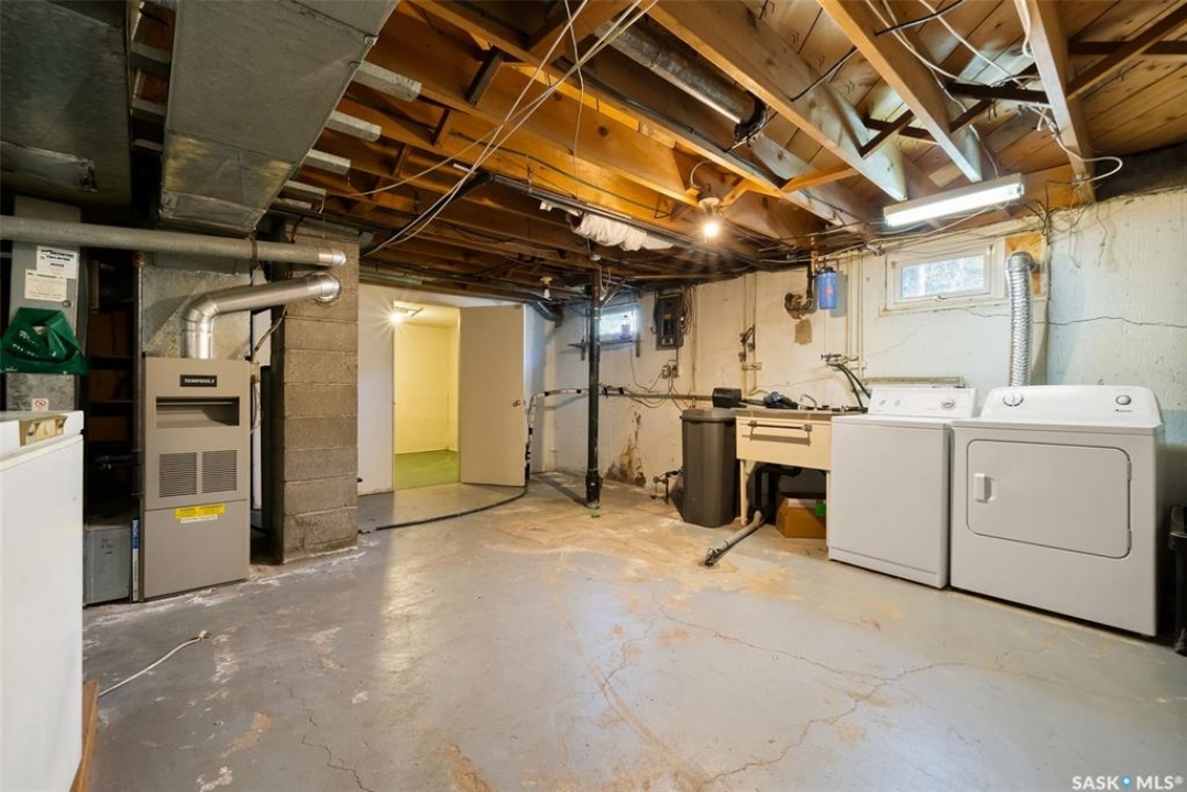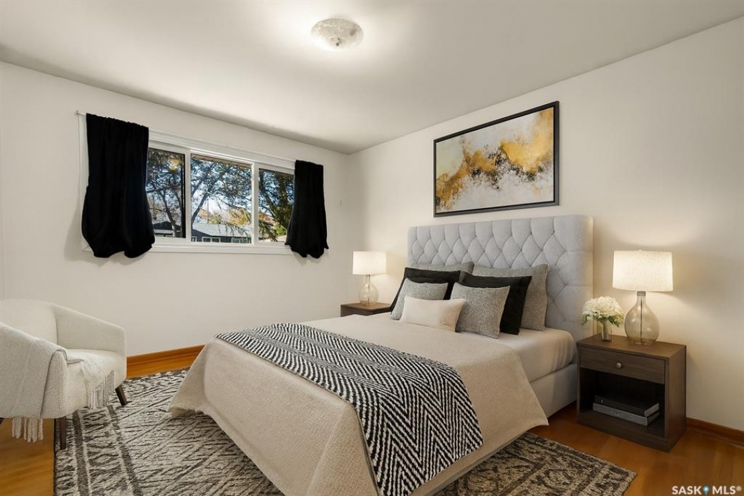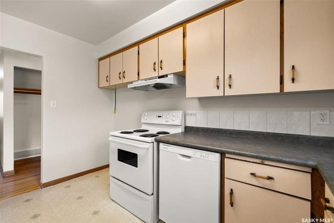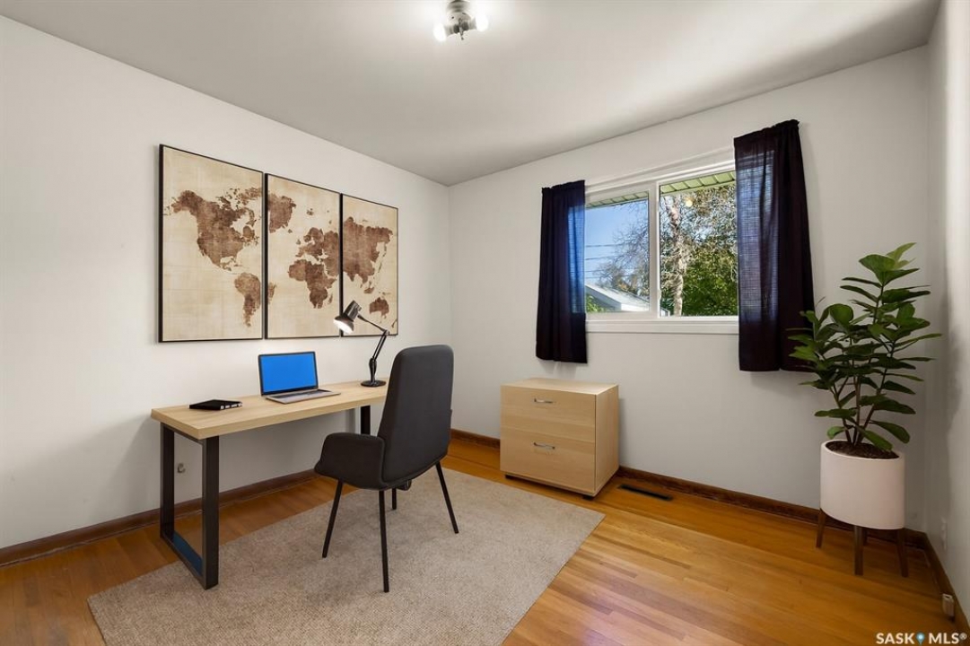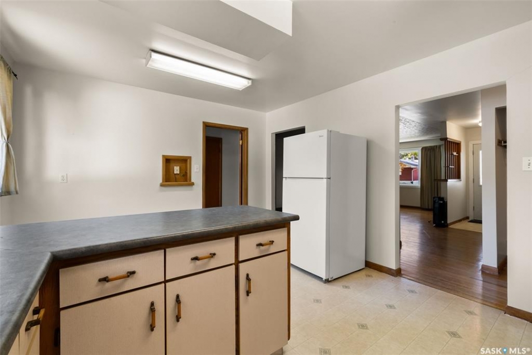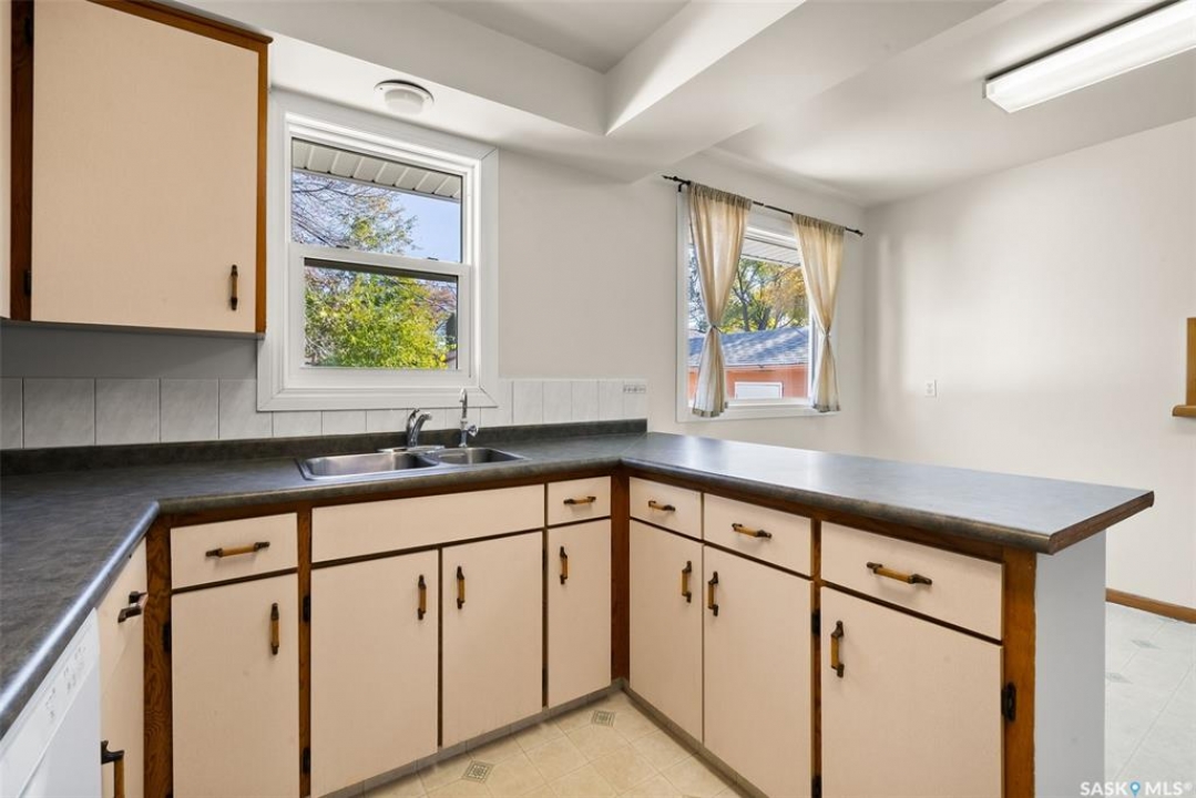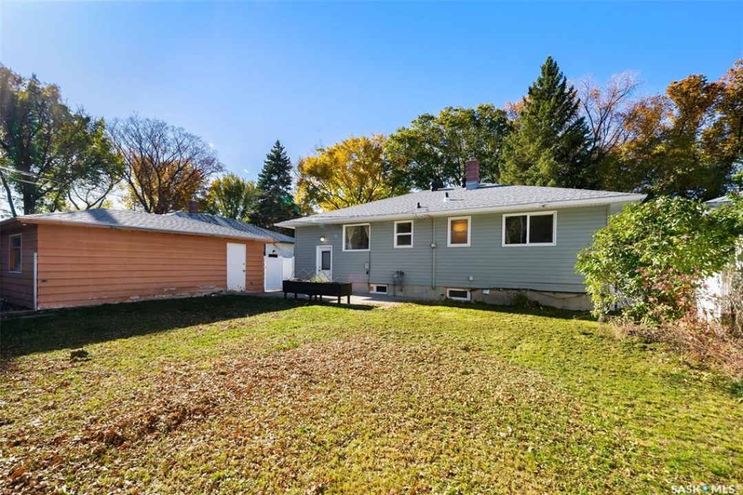 Welcome to 117 Langley Street, a charming 1,258 sq. ft. bungalow nestled in the highly desirable Hillsdale neighbourhood. Step inside and enjoy the warmth of the original hardwood floors that flow through the spacious living room and all three bedrooms. The bright, eat-in kitchen is filled with natural light and includes a fridge, stove, built-in dishwasher, and hood fan. All three bedrooms on the main floor are generous in size, and the bathroom has been updated with a new tub surround. The home has been freshly repainted on the main floor, and every window in the home has been replaced with PVC. The basement is finished and offers a large laundry/utility area with adjacent storage and plenty of room for a future owner to modernize to their own taste. There's an abundance of storage throughout the home. Outside, you'll find lawn front and back, mature trees and shrubs, and a newer fence built in 2024. The concrete driveway provides extra parking and leads to a single detached garage with a newer overhead door. A rear patio off the back entry offers a cozy space to relax or entertain, and the yard has room for a garden. Built with a steel beam, this home also features important updates in the last 15 years such as siding, insulation, soffit, fascia, eaves, shingles, and sewer line replacement. Located close to schools, the University of Regina, SIAST, and all south-end amenities, this home sits on a fantastic street and offers wonderful potential for a future buyer!