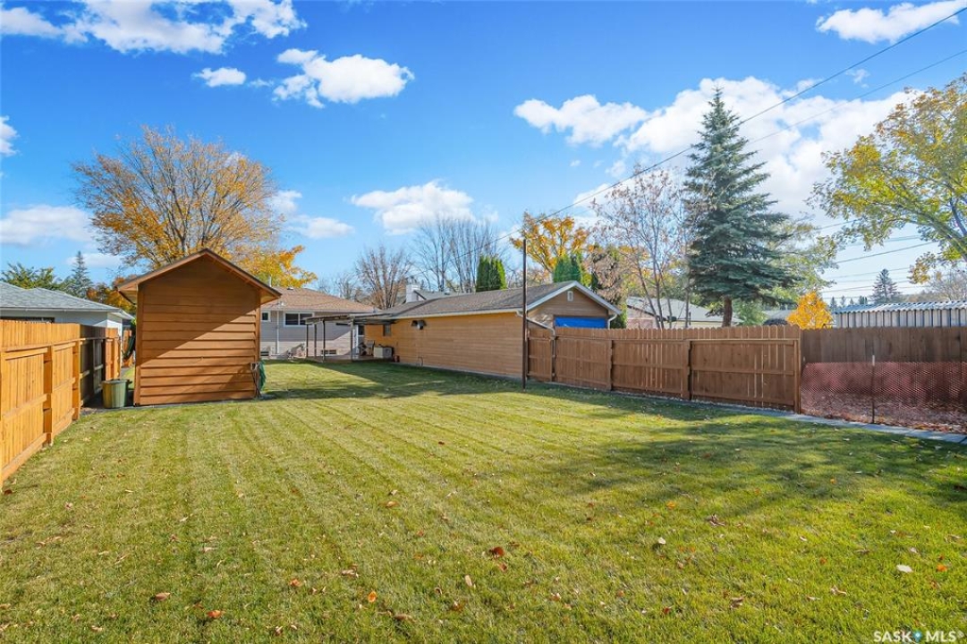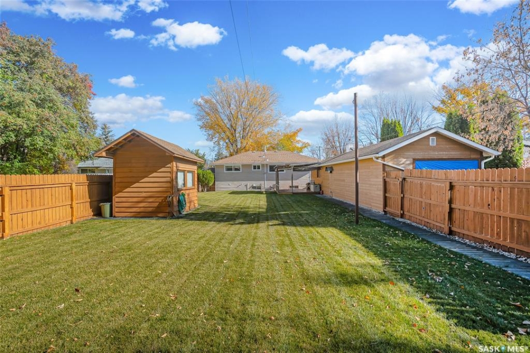 Make yourself at home at 1810 Sommerfeld Avenue, a truly exceptional property nestled in the heart of Saskatoon's highly sought-after Holliston neighborhood. Welcome to this charming 980 sq. ft. bungalow, a home that has been meticulously cared for and reflects years of pride of ownership. This fantastic family home offers a practical layout designed for modern living. The main floor features a bright living room and an inviting open dining and kitchen area, complemented by three bedrooms and a four-piece bathroom. Downstairs, the fully developed basement provides even more functional space, including a large family room, a fourth bedroom, a second four-piece bathroom, and a dedicated office space—ideal for remote work or a den. Outside, you will find an exceptional 14' x 52' oversized tandem detached garage that is a mechanic or hobbyist's dream, featuring convenient access from both the front and the back, along with a large separate shed for extra storage. Situated on a massive 56' x 156' lot, the outdoor space promises endless enjoyment and a peaceful, private retreat. Holliston is well-regarded for its established community feel, excellent schools, and unparalleled convenience to amenities, including Market Mall, local parks, and easy access to major traffic arteries, making this an ideal place to call home. Do not miss this rare opportunity to own a beautiful, well-maintained home in one of Saskatoon's most desirable neighbourhoods.