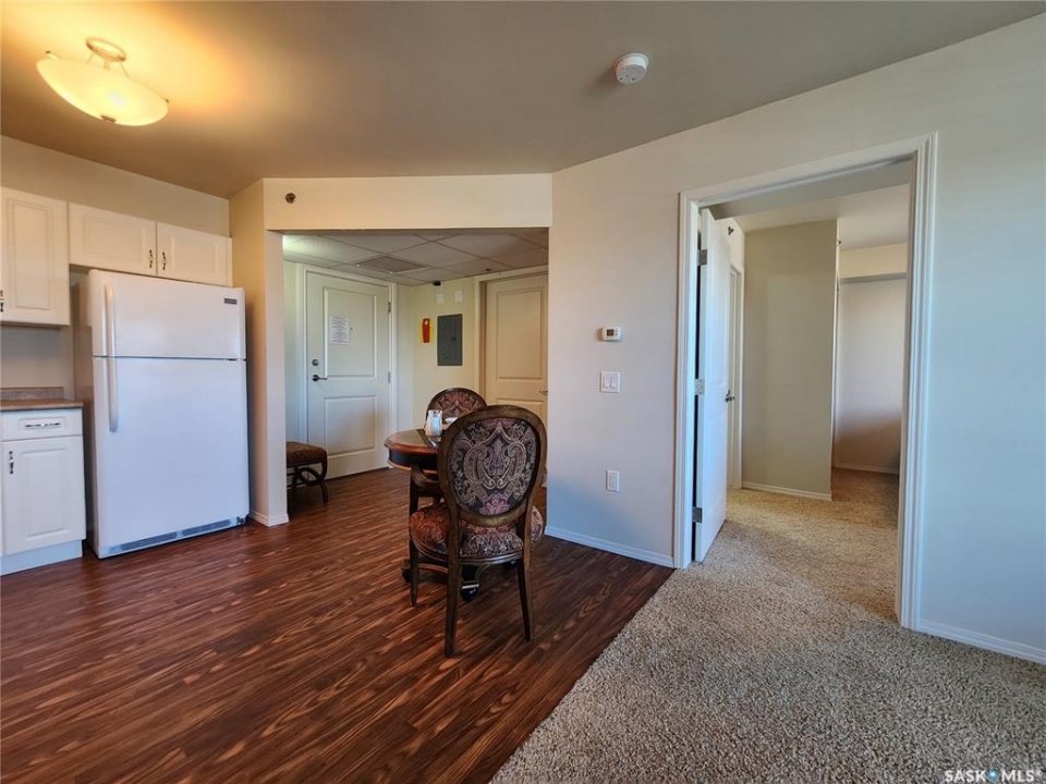 Welcome to effortless living at the charming Cumberland Villas in Melville. This inviting 532 sq. ft. � one bedroom, on bathroom suite on the 4th floor offers comfort, convenience, and thoughtful design. The eat-in kitchen flows seamlessly into a bright, spacious living area and features 4 appliances along with generous counter and cabinet space. The bedroom is well-sized with a large closet, and the 4-piece bathroom includes stackable laundry accessible from both the foyer and bedroom for added ease. Step out onto your private north-facing balcony, perfect for relaxing or enjoying the fresh air. This suite includes a dedicated parking stall and access to a wide range of amenities, such as a dining and bistro area, workshop, library, elevator, lounge, and recreation center — all designed to enhance your lifestyle. At Cumberland Villas, you'll discover a welcoming community and the perfect place to call home.