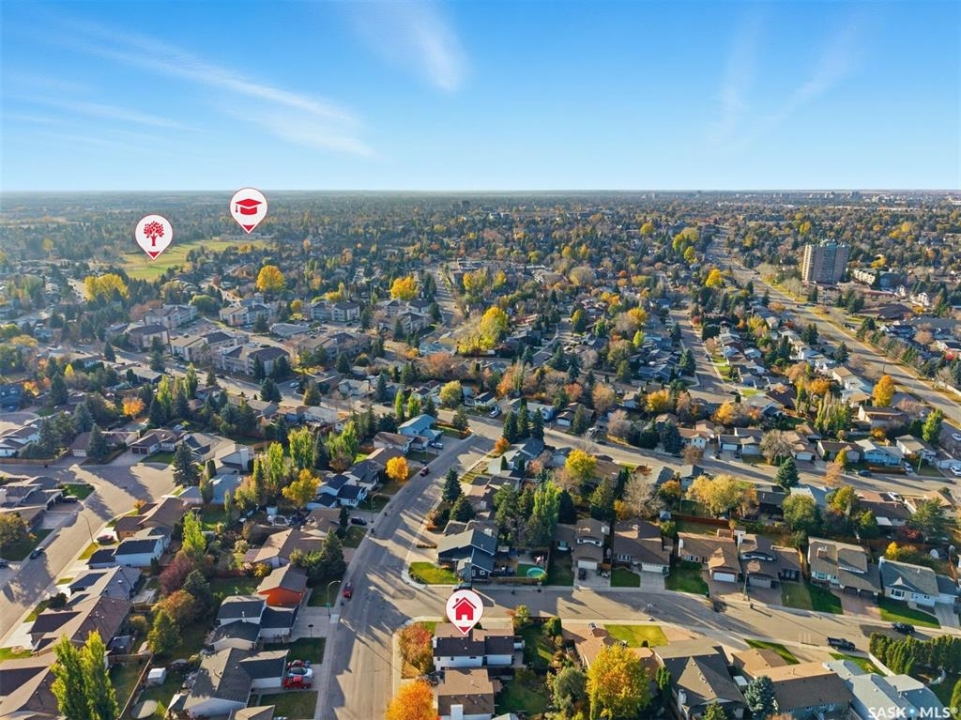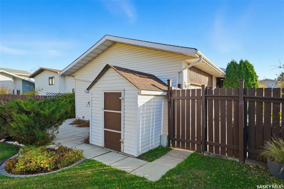 Welcome to this charming and functional three-bedroom, two-bathroom front-to-back four-level split, perfectly situated in the desirable Lake Ridge neighbourhood of Saskatoon! This is the ideal home for a growing family seeking comfort, convenience, and a truly exceptional outdoor space. Step inside and appreciate the smart layout offering separation and distinct living areas. The main level features a bright living room and kitchen/dining space. Just a few steps down is the cozy third-level family room, complete with a functional wood-burning fireplace—perfect for Saskatchewan's chilly evenings and creating a warm, inviting atmosphere. Upstairs, you'll find 2 bedrooms and a full bathroom. For everyday ease, the double attached garage provides direct entry into the home, a major plus during the winter months. The absolute best feature of this property is the beautiful backyard! Enjoy summer days in your private, park-like oasis with lovely, mature landscaping. The yard is fully fenced, providing security and peace of mind for kids and pets. Location is key! You'll be close to schools, bus routes, and all major shopping amenities, making daily errands a breeze. Don't miss the opportunity to own this wonderful family home in Lake Ridge!