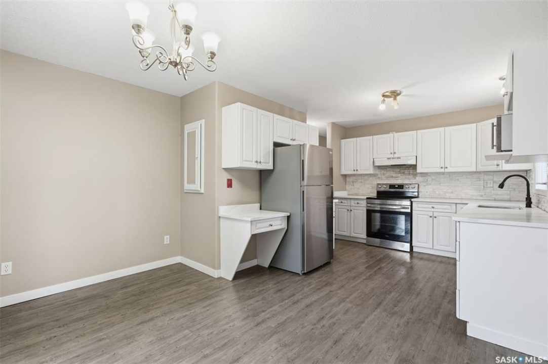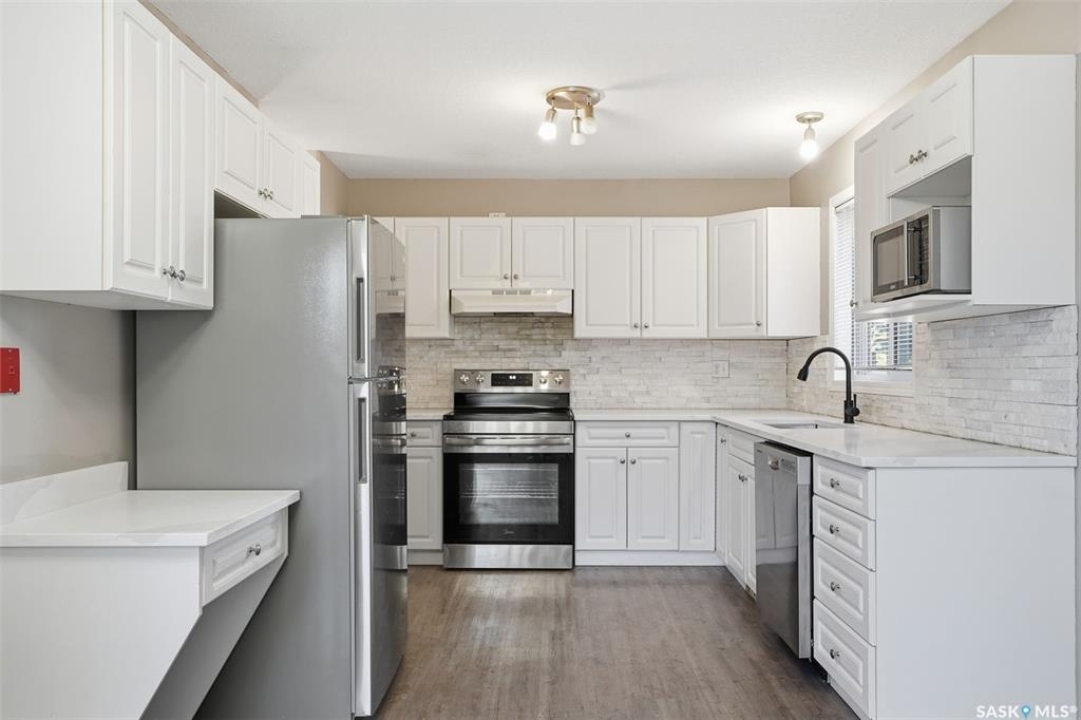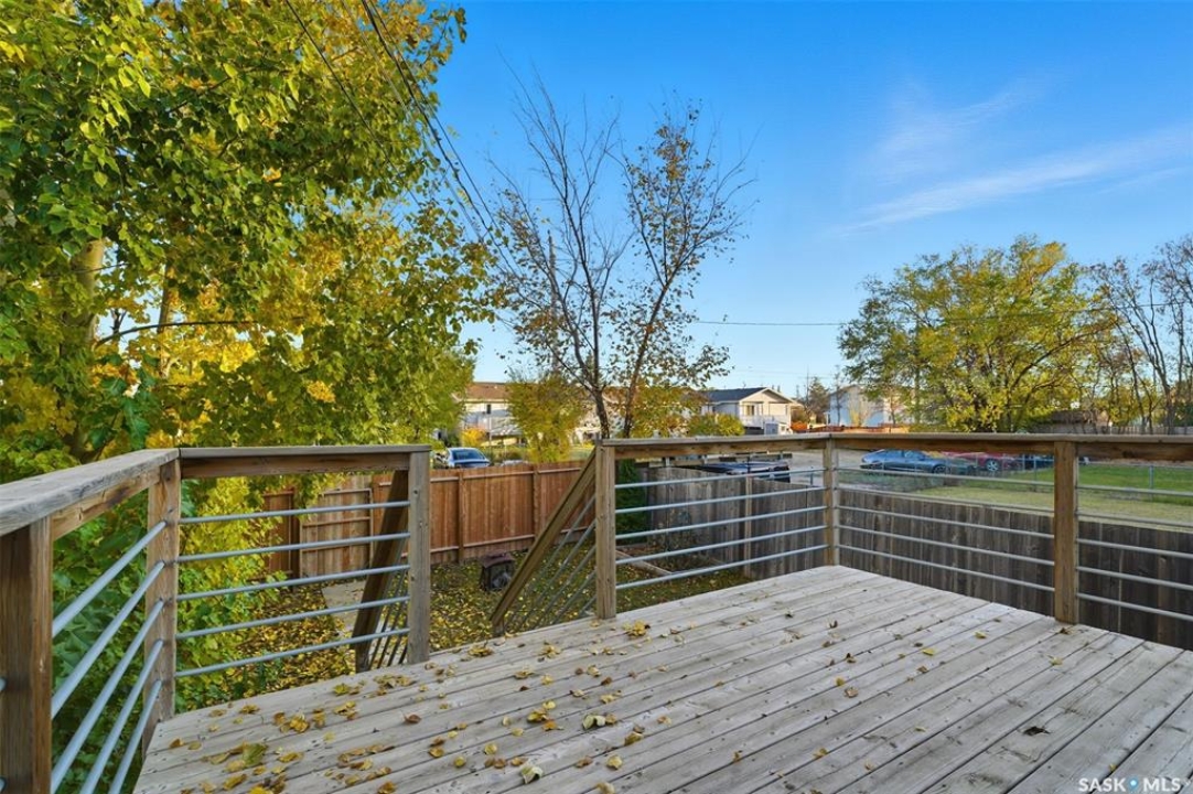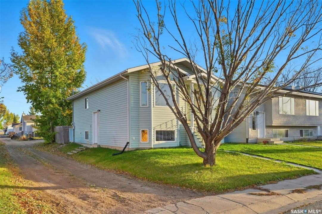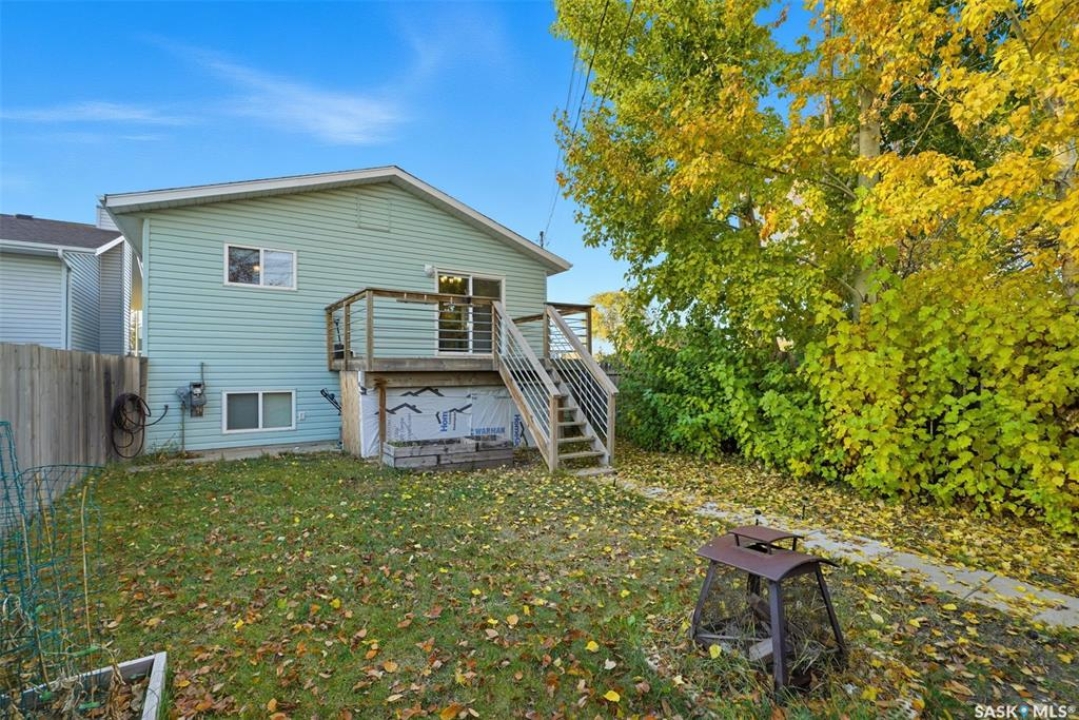 This 1,085 sq. ft. home in Forest Grove offers an excellent opportunity for investors, or anyone looking for some help with the mortgage thanks to its permitted one bedroom basement suite. Upstairs, the home features a large living room, updated kitchen with white cabinetry, a stone backsplash, new quartz countertops, and a dining area with patio doors leading to the large rear deck — perfect for outdoor entertaining. Three spacious bedrooms, an updated four-piece bath, and a laundry closet complete the main level. Downstairs, you'll find an additional family room dedicated to the upstairs suite. The legal basement suite is bright & spacious, and offers a separate entrance, separate laundry, newer cabinetry, and stainless steel appliances. There is a large living room, bedroom, and four-piece bath, with the basement laundry located in the utility room. The fully fenced backyard provides privacy and plenty of space to enjoy, as well as a 18'x31' concrete parking pad with space for up to three vehicles. Conveniently located on a corner lot in Forest Grove, close to schools, parks, amenities, and the U of S. Quick possession is available!