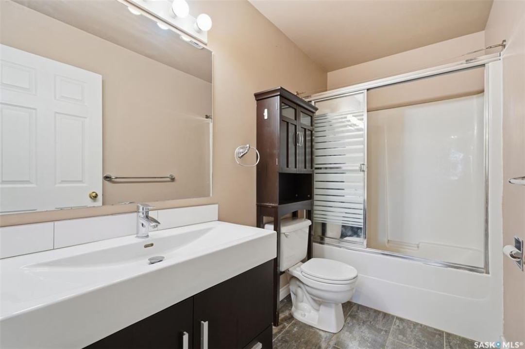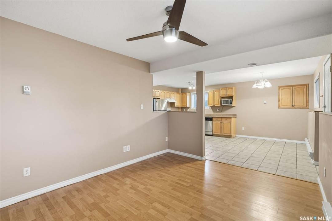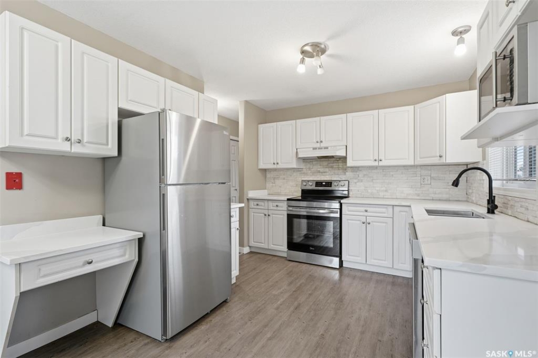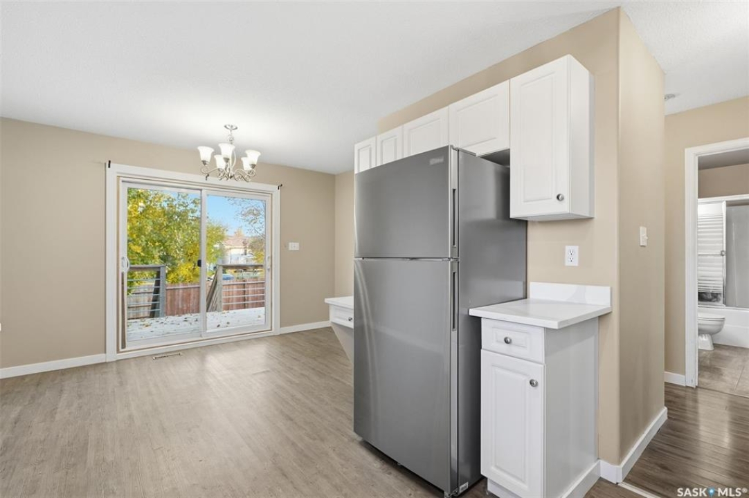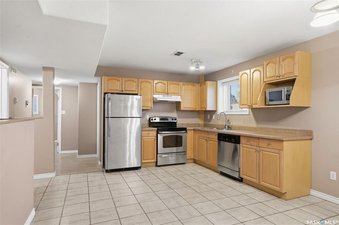 This 1,085 sq. ft. home in Forest Grove offers an excellent opportunity for investors, or anyone looking for some help with the mortgage thanks to its permitted one bedroom basement suite. Upstairs, the home features a large living room, updated kitchen with white cabinetry, a stone backsplash, new quartz countertops, and a dining area with patio doors leading to the large rear deck — perfect for outdoor entertaining. Three spacious bedrooms, an updated four-piece bath, and a laundry closet complete the main level. Downstairs, you'll find an additional family room dedicated to the upstairs suite. The legal basement suite is bright & spacious, and offers a separate entrance, separate laundry, newer cabinetry, and stainless steel appliances. There is a large living room, bedroom, and four-piece bath, with the basement laundry located in the utility room. The fully fenced backyard provides privacy and plenty of space to enjoy, as well as a 18'x31' concrete parking pad with space for up to three vehicles. Conveniently located on a corner lot in Forest Grove, close to schools, parks, amenities, and the U of S. Quick possession is available!