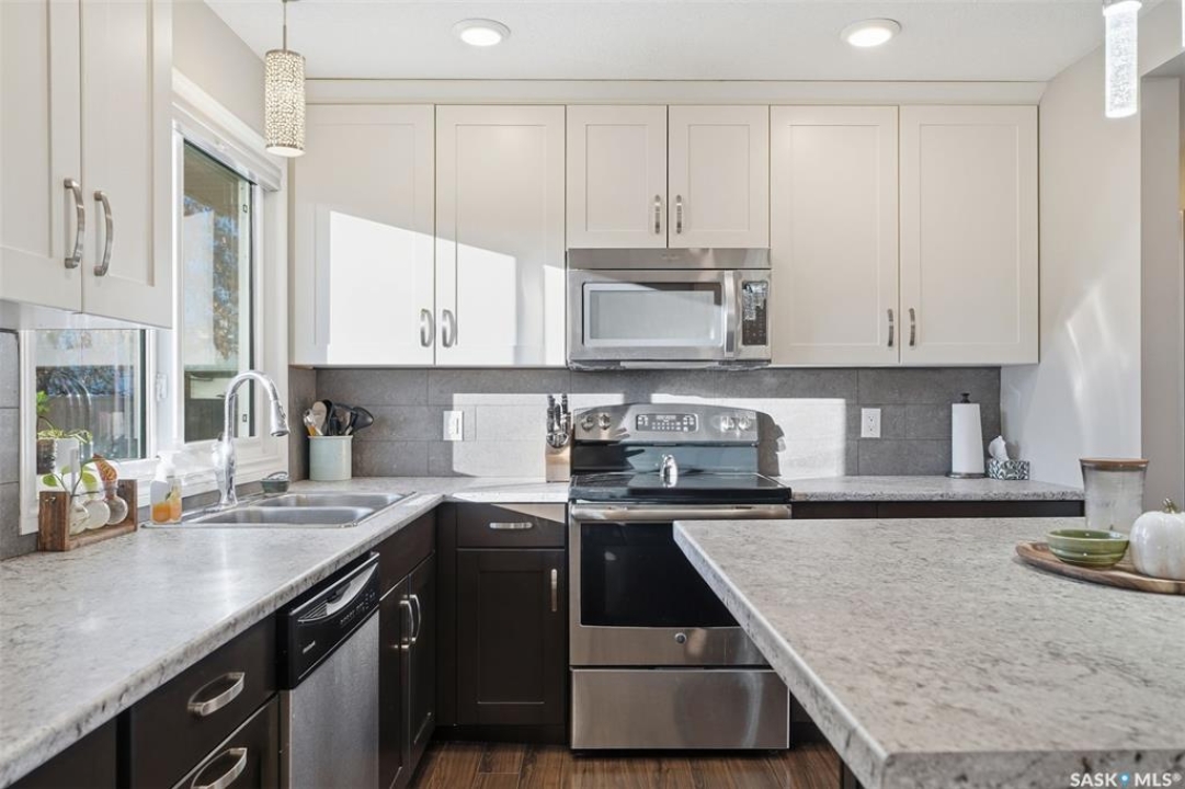 Welcome home to your turn-key bungalow, renovated up and down, in the mature neighbourhood in the heart of Nutana Park. �Just move in and relax! This 5-bedroom, 2-bathroom home is ready for its new owners. Main features include an open-concept living room and eat-in kitchen, updated kitchen cabinets, large island with seating space, and new high-end laminate floors and carpets throughout. Down the hall are 3 bedrooms and a renovated 4-pc bathroom. Currently the primary is using one of the bedrooms as an epic walk-in closet that can be easily converted back, but why would you want to? Enjoy a completely updated basement with a large family room, two bedrooms with large windows, a 3-pc bathroom and a spacious storage/laundry/utility room. Outside, you can sit and relax on the large patio in this massive, fully fenced yard. The massive 36 × 25 ft garage has 10 ft interior walls, 6-inch concrete slab with 1-ft thickened edges, in-floor heating via gas boiler (~$100/month to maintain 21 �C in mid-winter), 120 V outlets approximately every 8 ft, plus one 240 V outlet. There is parking for 4 vehicles in the garage and 3 vehicles on the driveway. �Other upgrades include: �in 2021, new Hardie Board siding, windows, professionally installed shingles, and approximately 18 inches of blown-in attic insulation was added (R50); in 2022, landscaping completed, automatic underground sprinklers installed, and professional interior renovations added a walk-in closet and overhauled the primary bedroom and upstairs bathroom. Lutron smart lighting is installed in the bedroom and living room. This home is definitely one you won't want to miss. Call your favourite realtor for a private tour. Form 917 signed and In Effect. Please have offers in by 5 pm, October 28th.