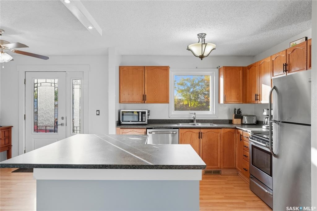Welcome to 247 Davies Road in Silverwood Heights! Great opportunity for a first-time buyer or investor! This well-maintained 961 sq. ft. bi-level offers five bedrooms and a basement that can easily be turned into a suite or granny suite. The main floor features three spacious bedrooms, an updated bathroom, stainless steel appliances, and garden doors leading to a private deck — perfect for relaxing or entertaining. The lower level includes two bedrooms, a full bath with a new tub surround, and a newer kitchen area — offering excellent flexibility for extended family or guests. Additional highlights include separate electrical panels, a newer front door, some newer windows and flooring, and large windows throughout that fill the home with natural light. Outside, you'll find a beautifully landscaped and private yard, plus an oversized single detached garage with a new roof (2024) and updated eaves (2024). Located in desirable Silverwood Heights, you'll be close to excellent schools, parks, walking trails, and the river — all within a quiet, family-friendly neighborhood with easy access to amenities and major routes.