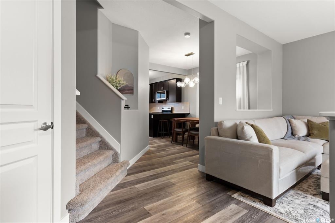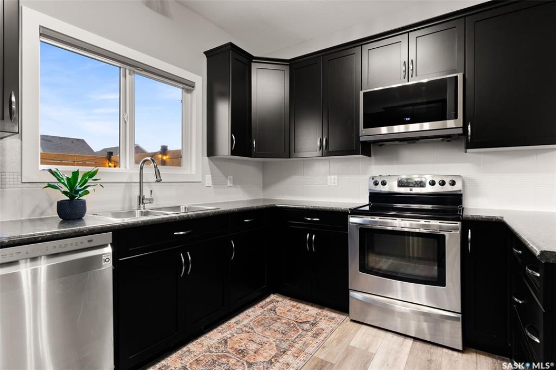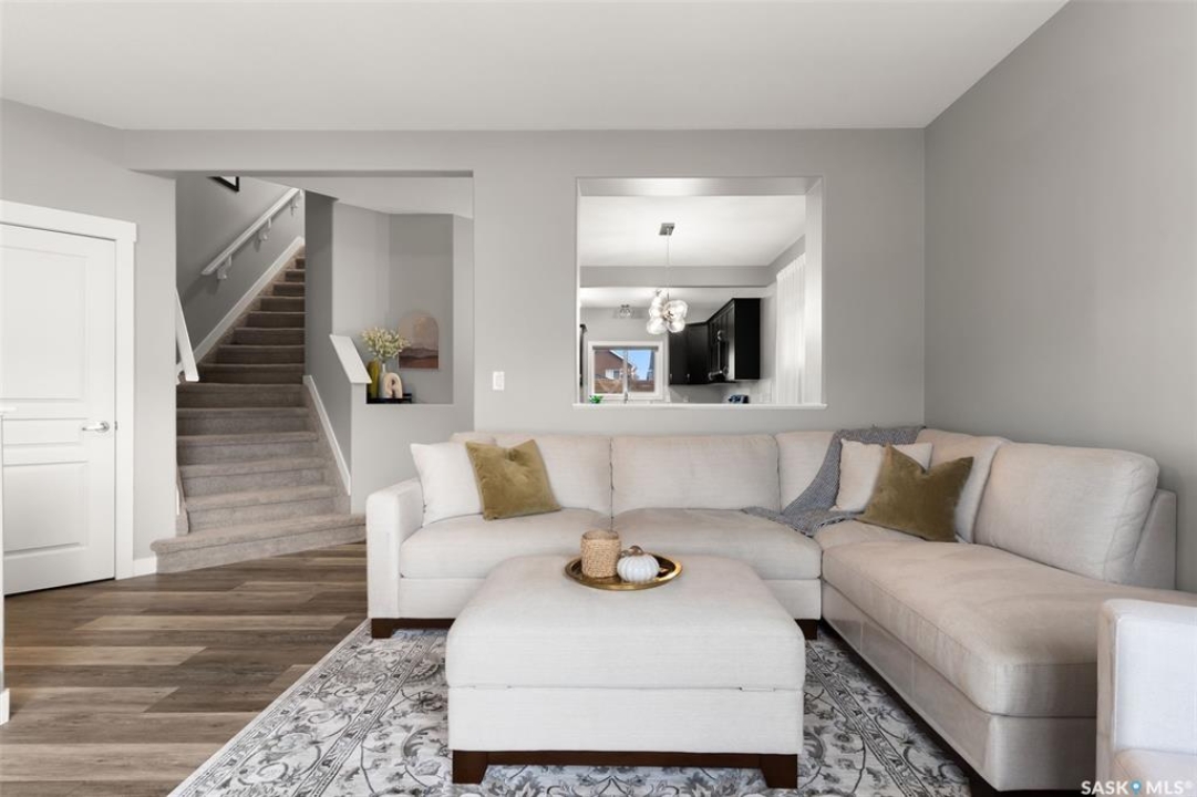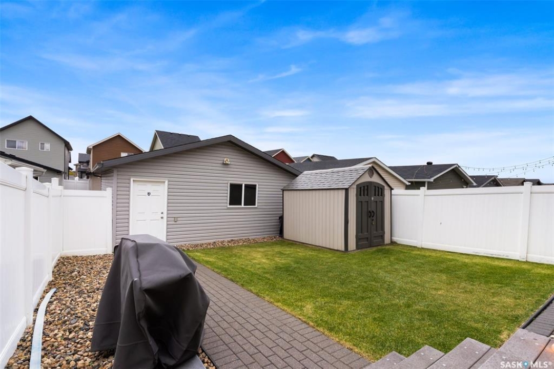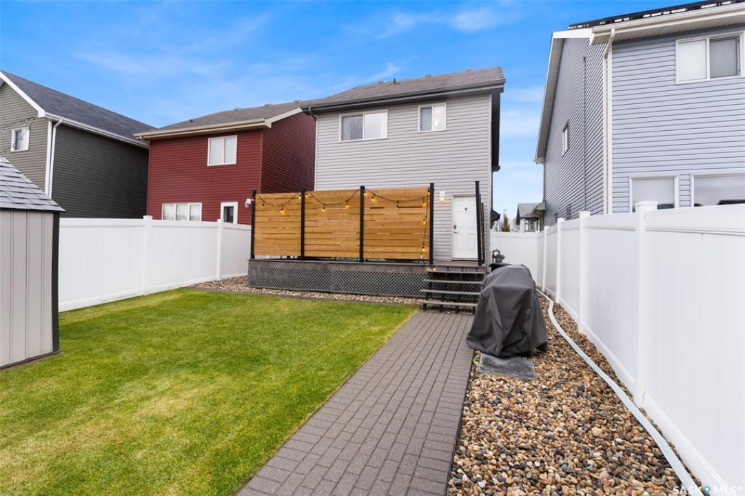 This beautifully maintained two-storey home in the vibrant community of Greens on Gardiner offers 1,402 square feet of thoughtfully designed living space. Built in 2011 this home has been lovingly cared for by the owners, the property features a spacious open-concept main floor with soaring 9-foot ceilings, modern paint, and new vinyl plank flooring. The front living room flows seamlessly into a formal dining area and a contemporary kitchen outfitted with espresso cabinetry, stainless steel appliances, a built-in dishwasher, microwave hood fan, and a striking tile backsplash with glass inserts. A convenient powder room and a rear entrance with a large closet complete the main level. Upstairs, the home boasts a generous primary bedroom with dual closets and a full 4 pce ensuite, along with two additional bedrooms and a four-piece bathroom. The fully finished basement includes a large rec room, a fourth bedroom, plus a three-piece bathroom, utility room, and ample storage. Outside, enjoy a beautifully landscaped backyard with a 20x13 composite deck, wood privacy screens, a shed, and a lush lawn. The 22x22 double detached garage is partially insulated and includes a sub panel, while central air conditioning ensures year-round comfort. Located close to east-end shopping, restaurants, and the new elementary school, this home is a perfect blend of style, function, and location. Please call your realtor for more information or personal tour.