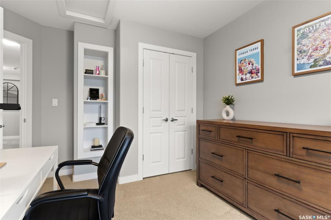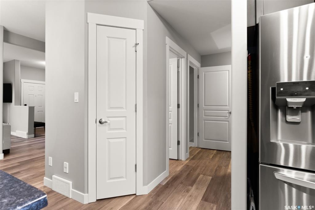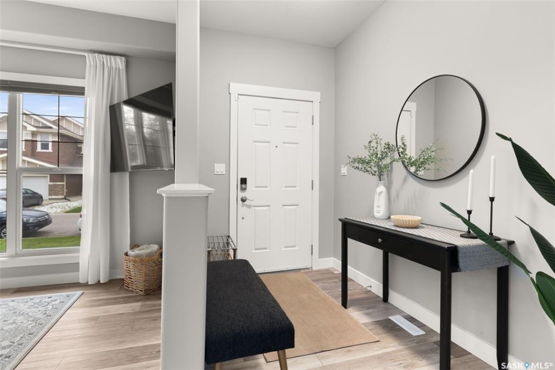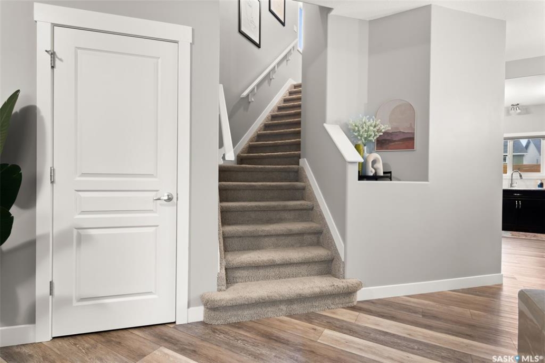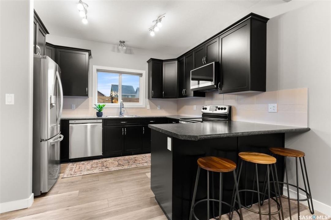 This beautifully maintained two-storey home in the vibrant community of Greens on Gardiner offers 1,402 square feet of thoughtfully designed living space. Built in 2011 this home has been lovingly cared for by the owners, the property features a spacious open-concept main floor with soaring 9-foot ceilings, modern paint, and new vinyl plank flooring. The front living room flows seamlessly into a formal dining area and a contemporary kitchen outfitted with espresso cabinetry, stainless steel appliances, a built-in dishwasher, microwave hood fan, and a striking tile backsplash with glass inserts. A convenient powder room and a rear entrance with a large closet complete the main level. Upstairs, the home boasts a generous primary bedroom with dual closets and a full 4 pce ensuite, along with two additional bedrooms and a four-piece bathroom. The fully finished basement includes a large rec room, a fourth bedroom, plus a three-piece bathroom, utility room, and ample storage. Outside, enjoy a beautifully landscaped backyard with a 20x13 composite deck, wood privacy screens, a shed, and a lush lawn. The 22x22 double detached garage is partially insulated and includes a sub panel, while central air conditioning ensures year-round comfort. Located close to east-end shopping, restaurants, and the new elementary school, this home is a perfect blend of style, function, and location. Please call your realtor for more information or personal tour.