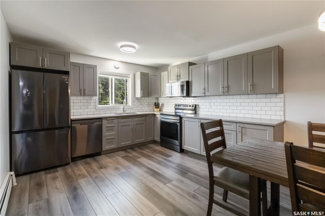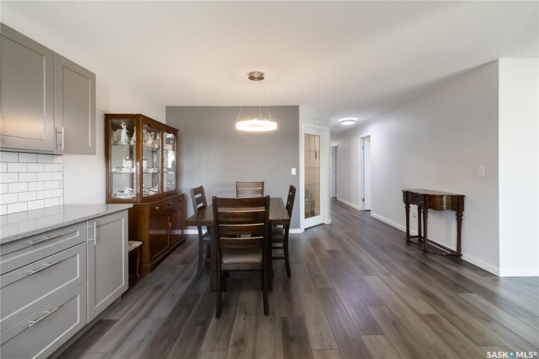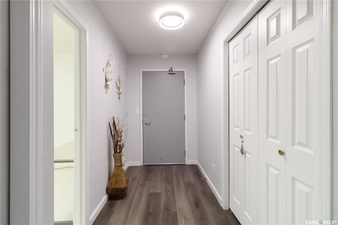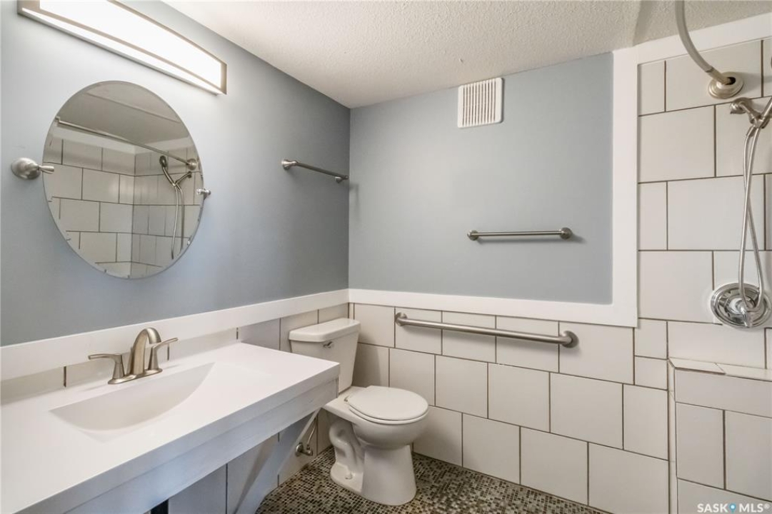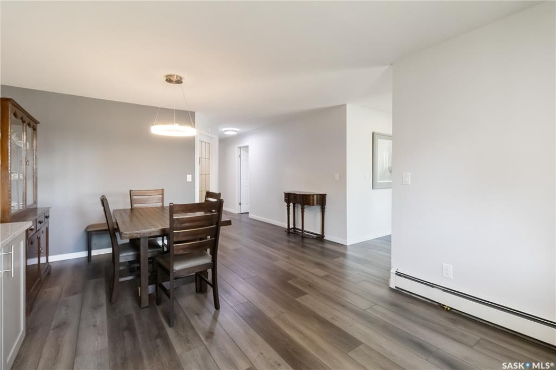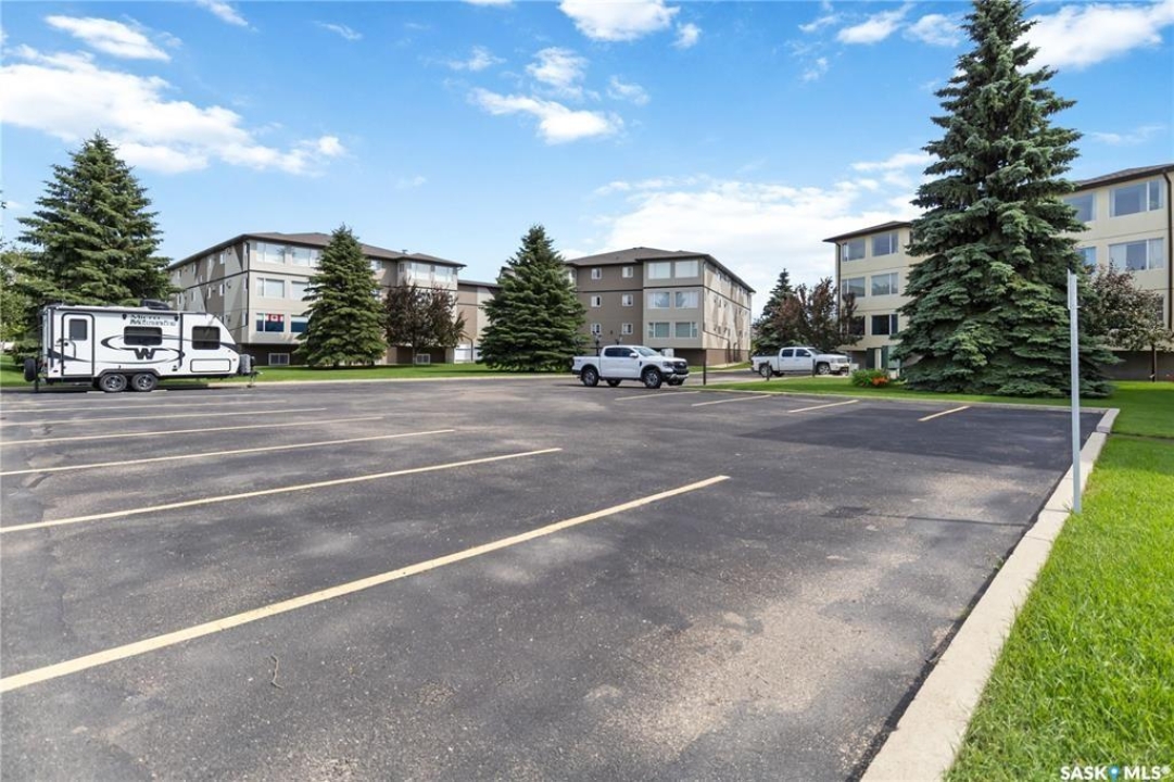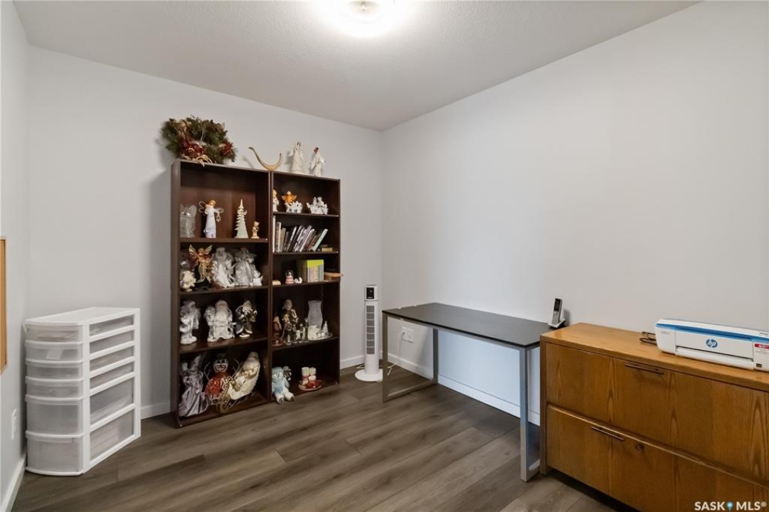 Welcome to 112-103 Keevil Crescent! This spacious 1,500 sq ft renovated condo is move in ready. Recent upgrades include new flooring throughout, a modern kitchen with new cabinetry and quartz countertops, newer appliances, new lighting - with recessed lights added in the living room, updated bathrooms, and new windows. The condo boasts two large bedrooms plus a versatile den/office while the laundry room offers extra space for a freezer or desk/crafts. The living room is roomy, and the sunroom is perfect for a plant lover or enjoying your morning coffee. The kitchen provides ample space for a future island and has plenty of room for a large dining table. The main four-piece bath features a new vanity, flooring and paint. The large primary bedroom includes a three-piece bath with a wheelchair-accessible shower as well as a walk-in closet and another spacious bedroom is just down the hall. Additional highlights include one heated underground parking spot, a spacious storage room, an elevator, exterior parking for owners, and visitor parking out front. Conveniently located within walking distance of various stores and a library.