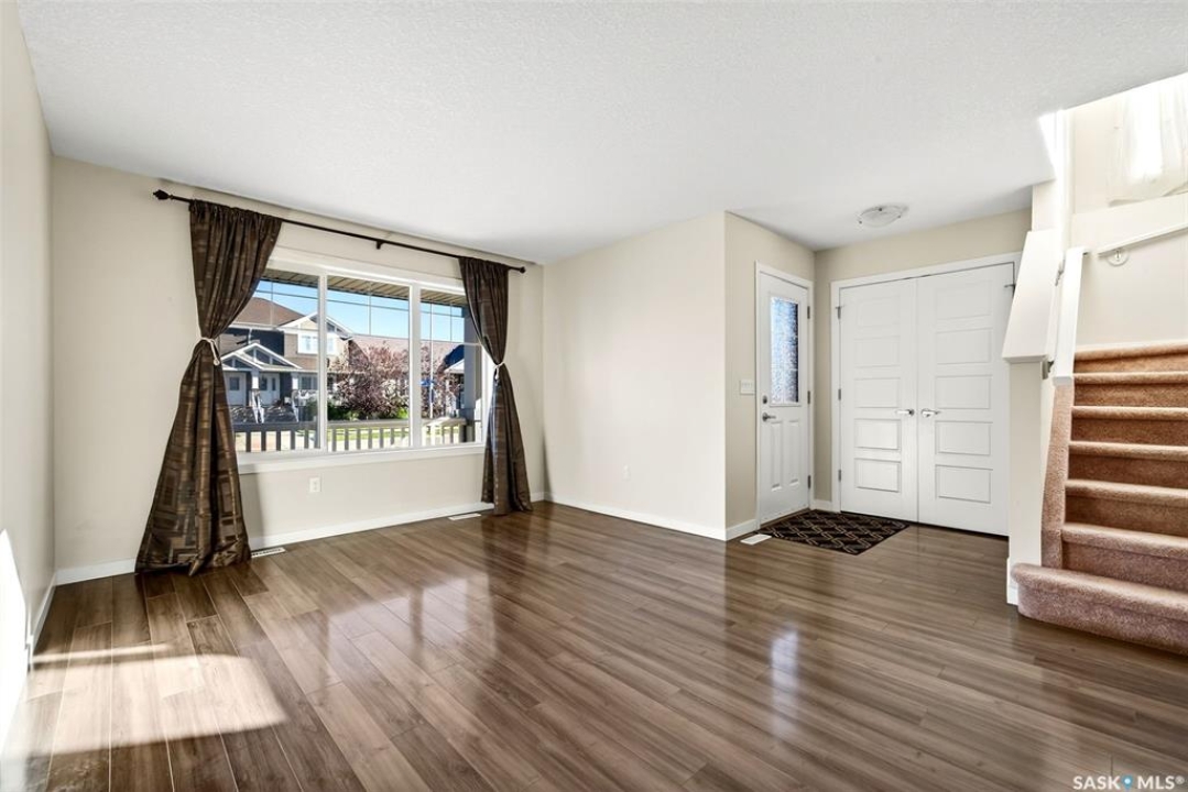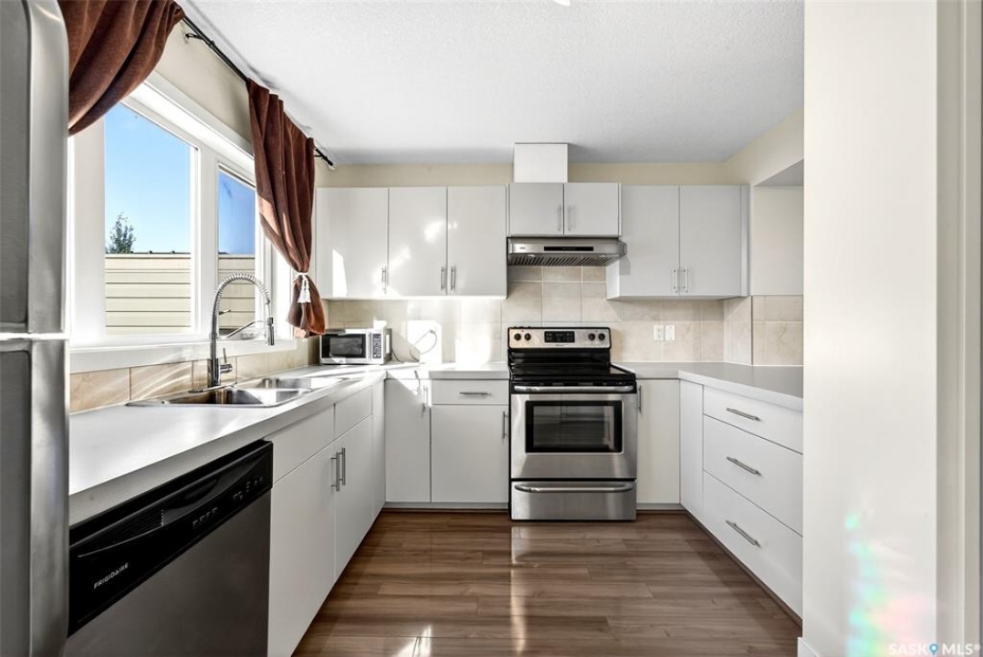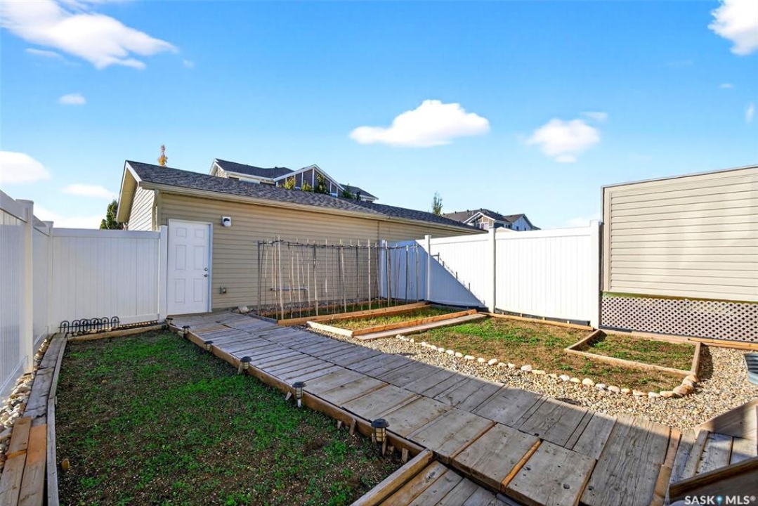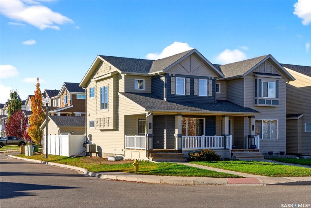 Welcome to this beautifully maintained 1,233 sqft two-storey home, perfectly positioned on a desirable corner lot in Regina's Harbour Landing, just one block from two primary schools. Flooded with natural light from large south, east, and west-facing windows(no north-facing windows in this house) this residence feels incredibly bright and welcoming. The open-concept main floor is illuminated throughout the day, showcasing a seamless flow between the living and dining areas and the modern kitchen. The kitchen is a highlight, complete with new 2025 cabinetry, durable countertops, stainless steel appliances, and is complemented by a convenient 2-piece bathroom. Upstairs, three comfortable bedrooms and a full bathroom create a peaceful retreat. Outside, the lovely backyard presents an ideal canvas for garden lovers and family gatherings. This home is not only charming but also efficient, equipped with a tankless water heater for endless hot water and lower utility costs. Significant updates ensure peace of mind and include 2025 interior paint, 2025 kitchen and bathroom cabinets, 2020 shingles with a 50-year GAF warranty, a 2021 air conditioner, a 2024 range hood, and recent furnace updates. The development-ready basement, featuring 3-piece rough-in plumbing and potential for a separate entrance, offers excellent income suite potential (subject to municipal approvals). With a spacious detached 2-car garage and a prime location near parks and amenities, this sun-filled home masterfully blends move-in-ready comfort with outstanding investment potential. Call your agent to schedule a private viewing today.