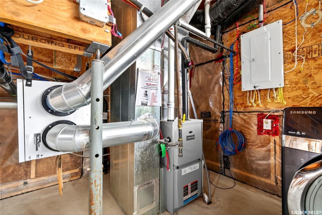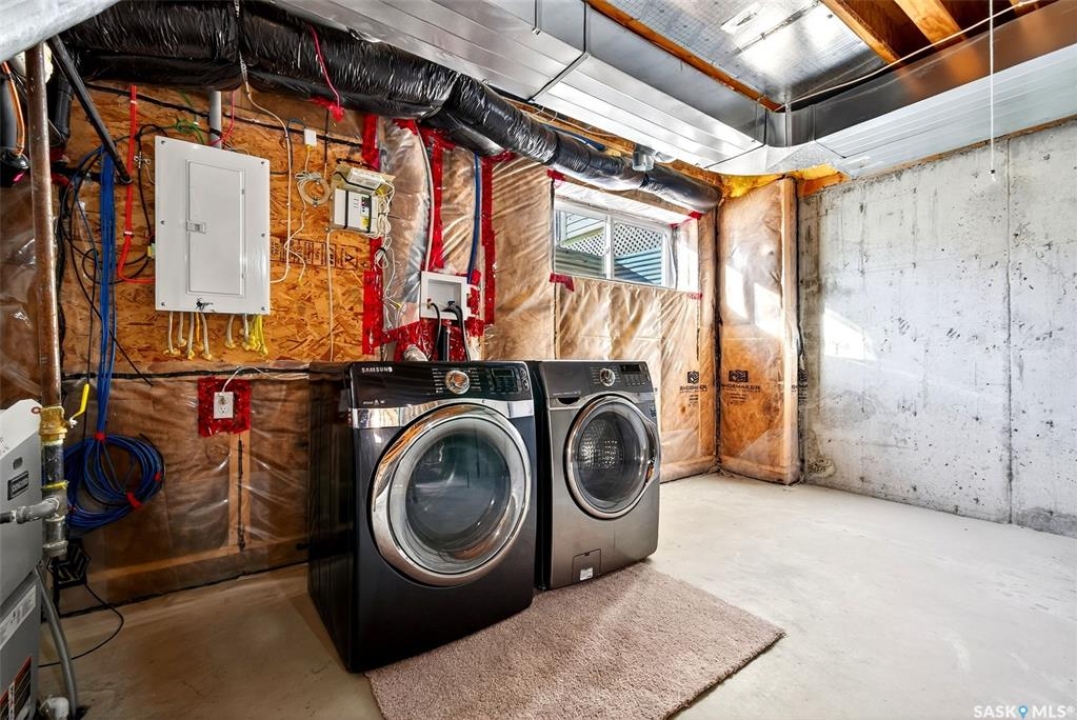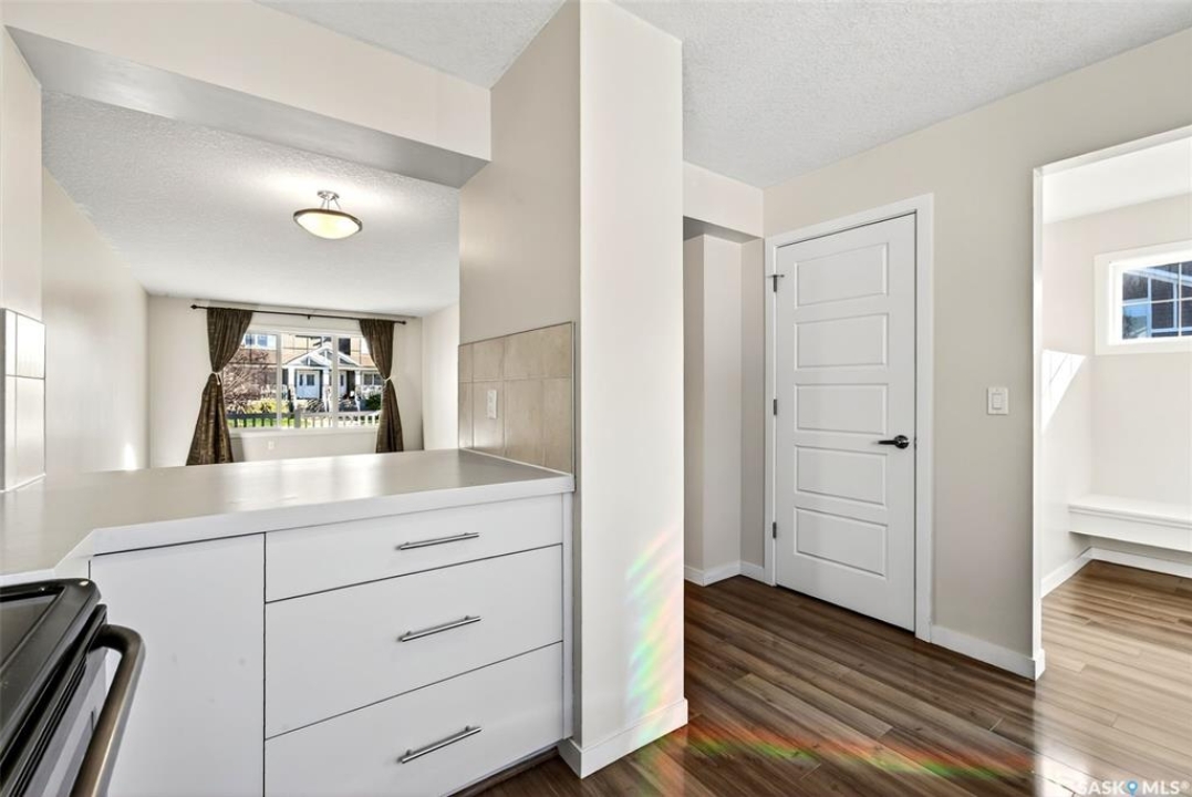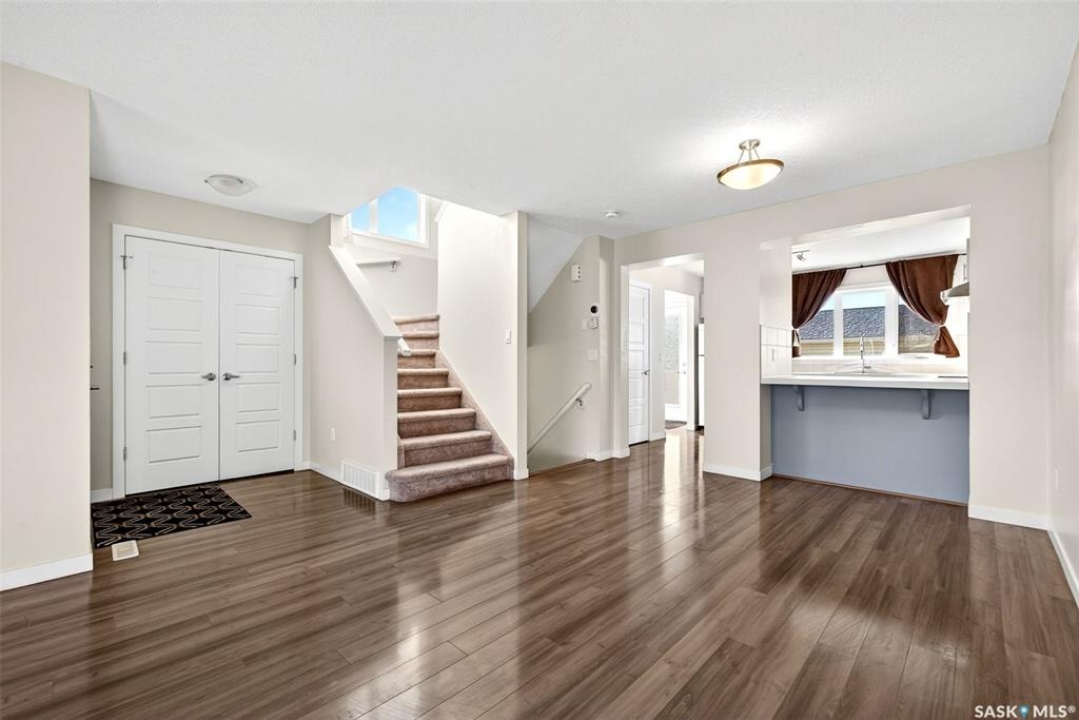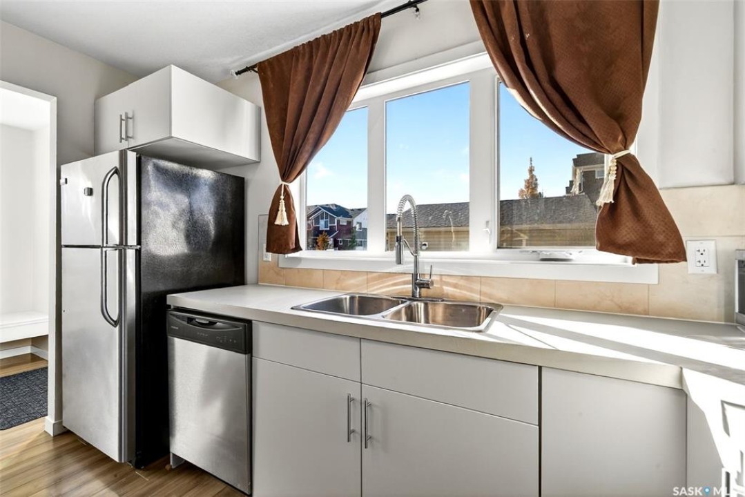 Welcome to this beautifully maintained 1,233 sqft two-storey home, perfectly positioned on a desirable corner lot in Regina's Harbour Landing, just one block from two primary schools. Flooded with natural light from large south, east, and west-facing windows(no north-facing windows in this house) this residence feels incredibly bright and welcoming. The open-concept main floor is illuminated throughout the day, showcasing a seamless flow between the living and dining areas and the modern kitchen. The kitchen is a highlight, complete with new 2025 cabinetry, durable countertops, stainless steel appliances, and is complemented by a convenient 2-piece bathroom. Upstairs, three comfortable bedrooms and a full bathroom create a peaceful retreat. Outside, the lovely backyard presents an ideal canvas for garden lovers and family gatherings. This home is not only charming but also efficient, equipped with a tankless water heater for endless hot water and lower utility costs. Significant updates ensure peace of mind and include 2025 interior paint, 2025 kitchen and bathroom cabinets, 2020 shingles with a 50-year GAF warranty, a 2021 air conditioner, a 2024 range hood, and recent furnace updates. The development-ready basement, featuring 3-piece rough-in plumbing and potential for a separate entrance, offers excellent income suite potential (subject to municipal approvals). With a spacious detached 2-car garage and a prime location near parks and amenities, this sun-filled home masterfully blends move-in-ready comfort with outstanding investment potential. Call your agent to schedule a private viewing today.