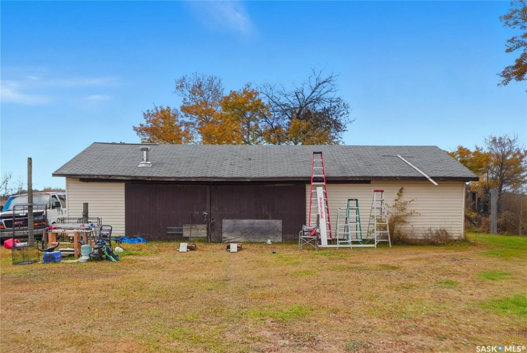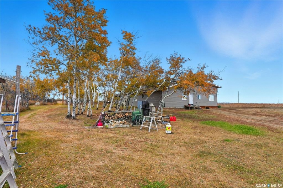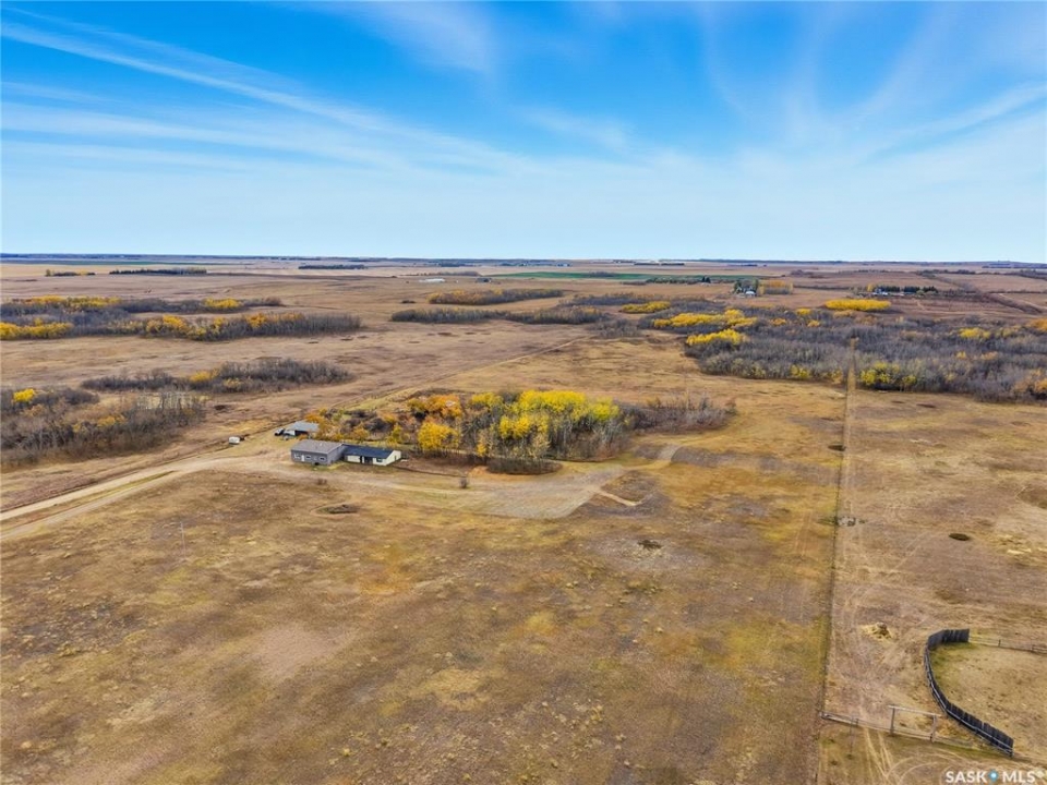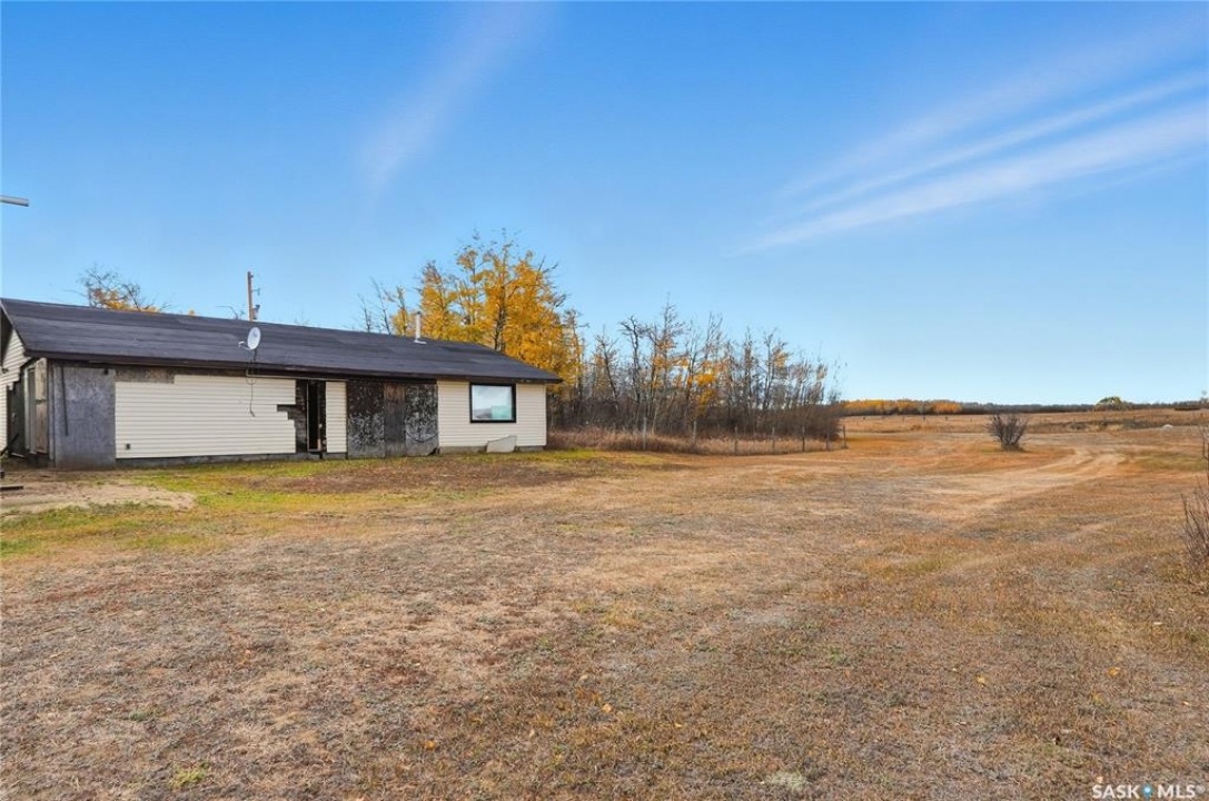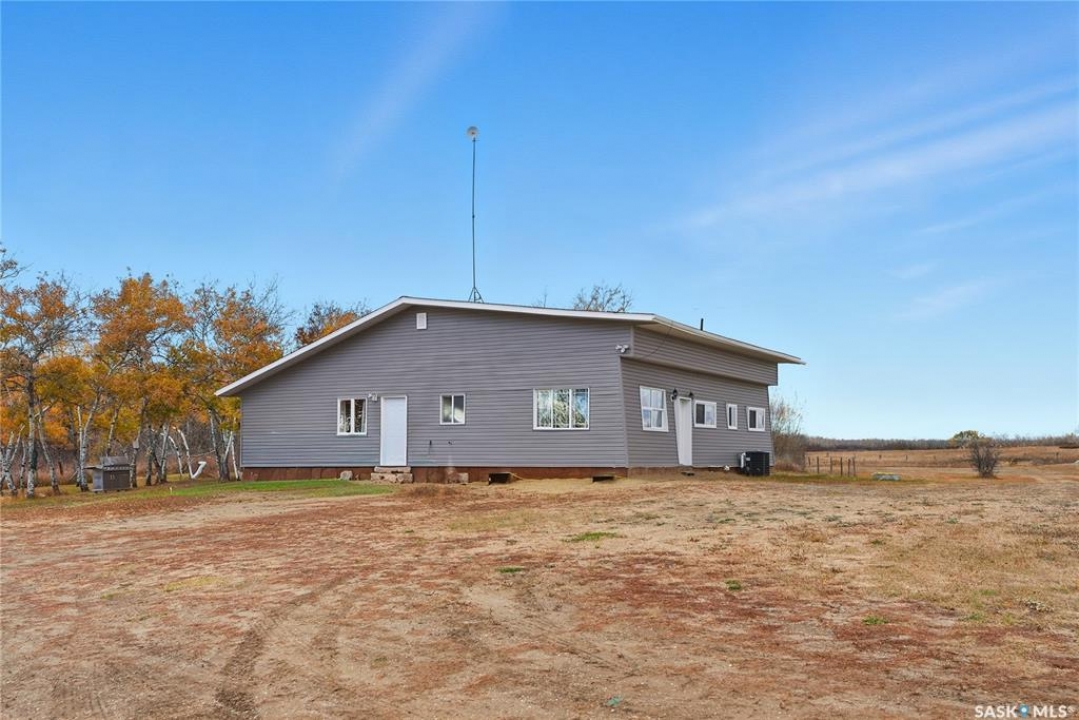 Acreage living just 15 minutes from Betts Ave Walmart! Set on nearly 40 acres, this property offers the best of both worlds, country space and city convenience. The five-bedroom, two-bathroom bungalow features several major upgrades, including a new furnace, water heater, washer and dryer, 200-amp electrical panel, and a septic pump installed just two years ago. Central air was also added two years ago, and the home has updated windows and new carpet throughout. The front 10 acres are currently used for haying, while the back 30 acres are ideal for livestock or hobby farming. There are two paddocks and a new barn that's nearly complete, with materials on-site for the new owners to finish. School bus service is available to Delisle, Vanscoy, and Saskatoon making this a great option for families seeking rural living within easy reach of city amenities.
