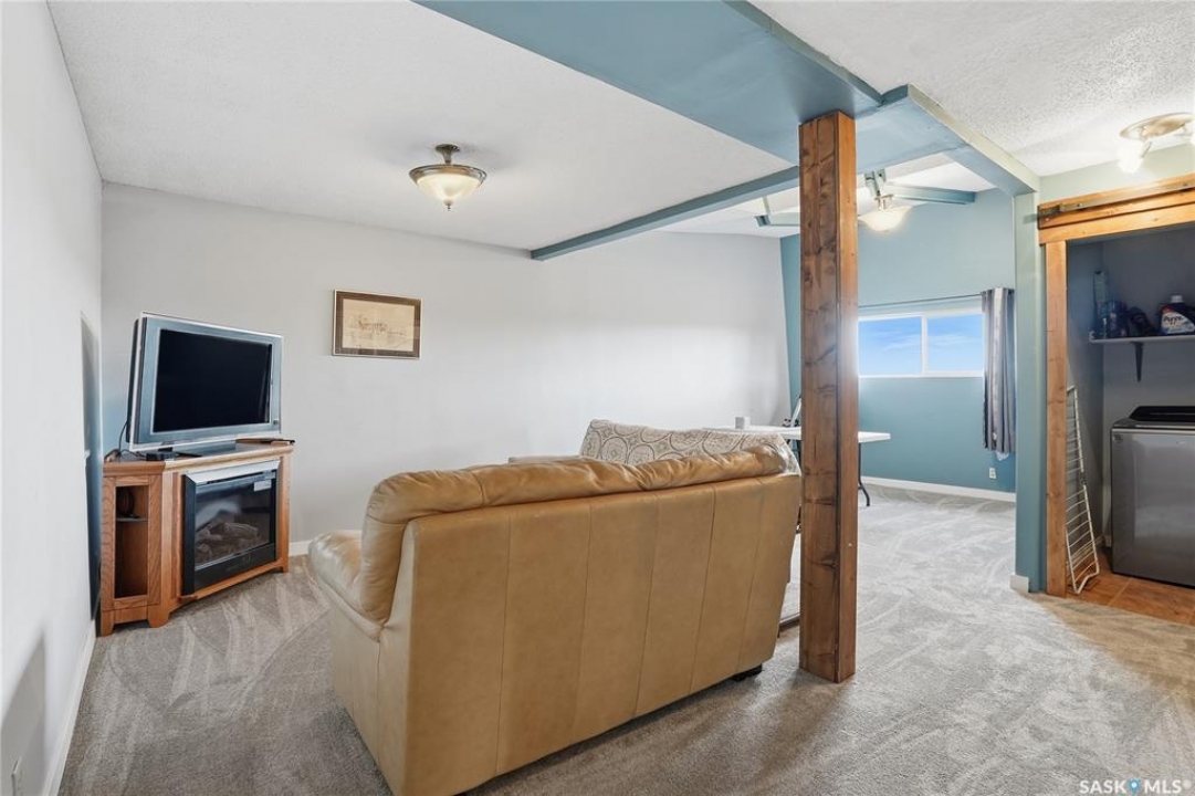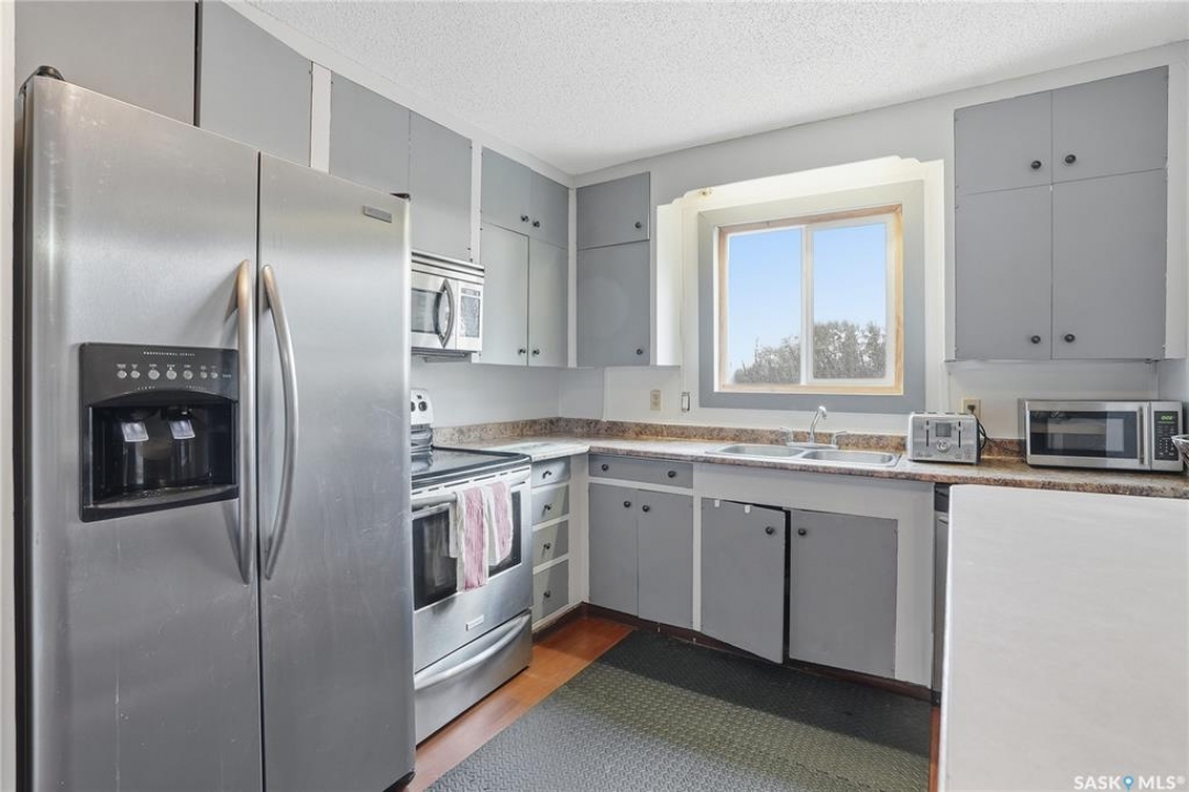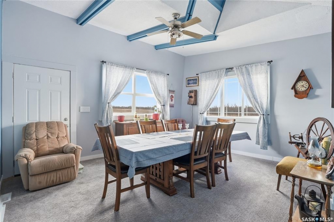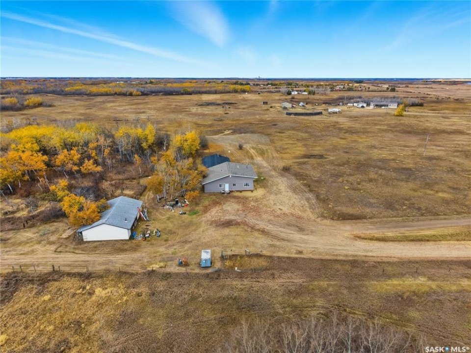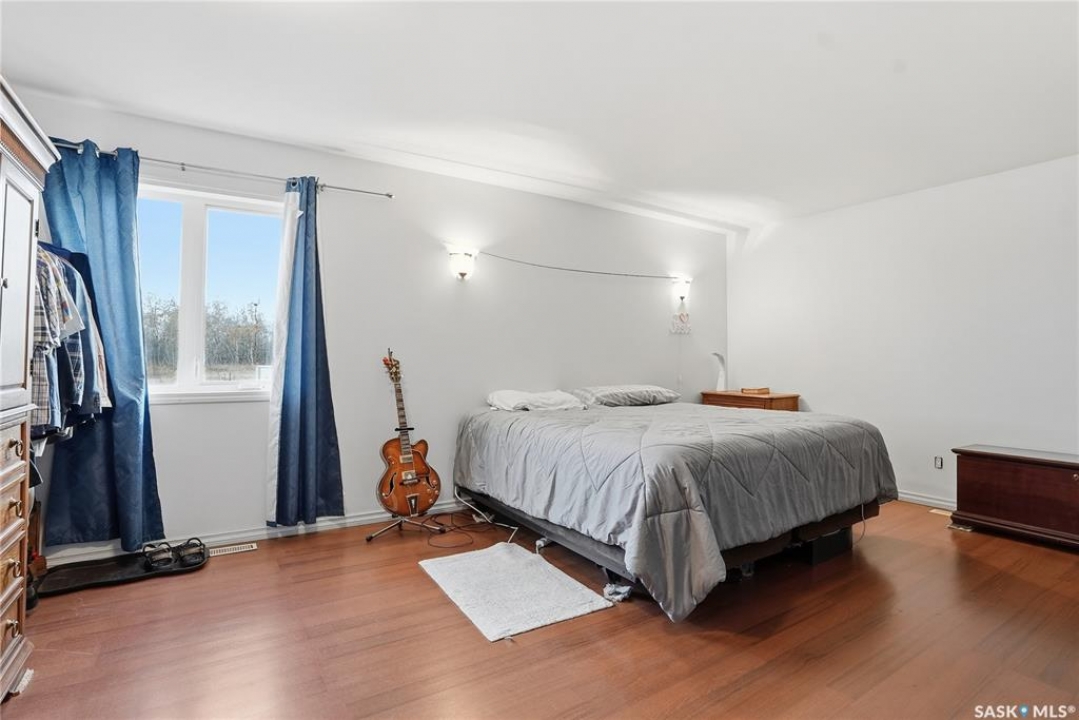 Acreage living just 15 minutes from Betts Ave Walmart! Set on nearly 40 acres, this property offers the best of both worlds, country space and city convenience. The five-bedroom, two-bathroom bungalow features several major upgrades, including a new furnace, water heater, washer and dryer, 200-amp electrical panel, and a septic pump installed just two years ago. Central air was also added two years ago, and the home has updated windows and new carpet throughout. The front 10 acres are currently used for haying, while the back 30 acres are ideal for livestock or hobby farming. There are two paddocks and a new barn that's nearly complete, with materials on-site for the new owners to finish. School bus service is available to Delisle, Vanscoy, and Saskatoon making this a great option for families seeking rural living within easy reach of city amenities.
