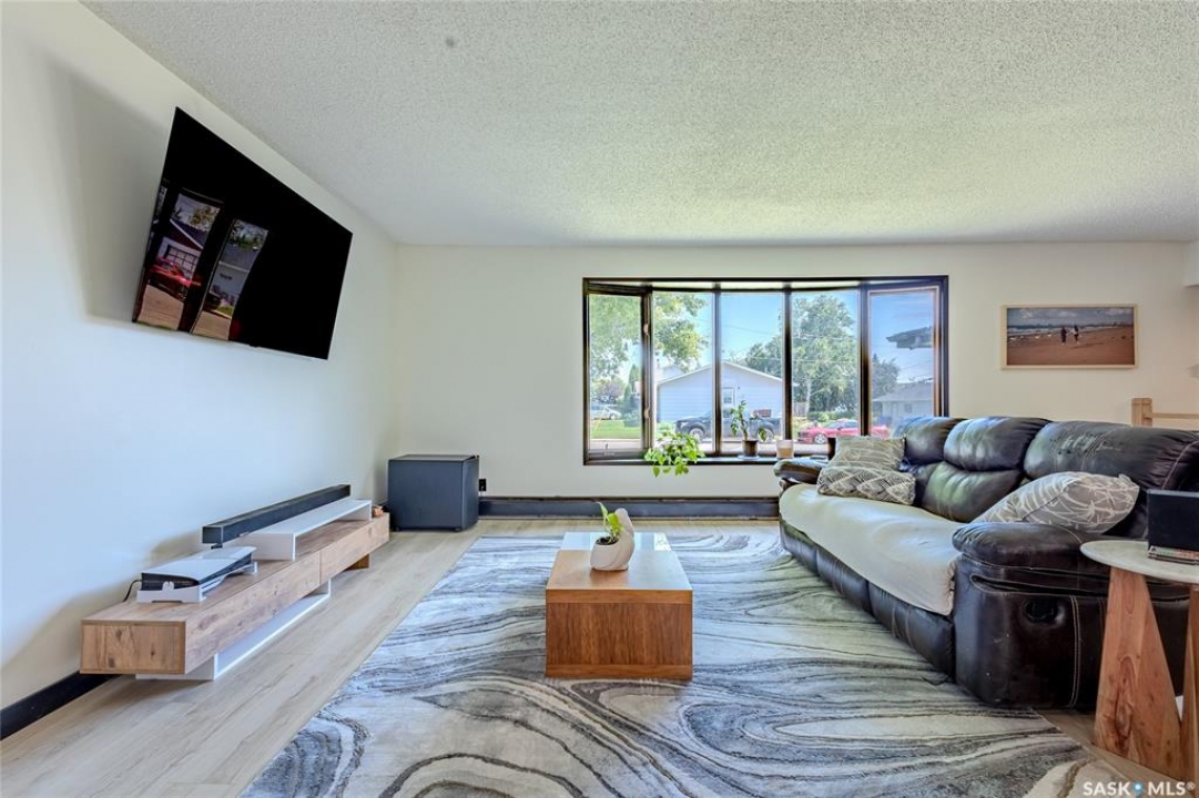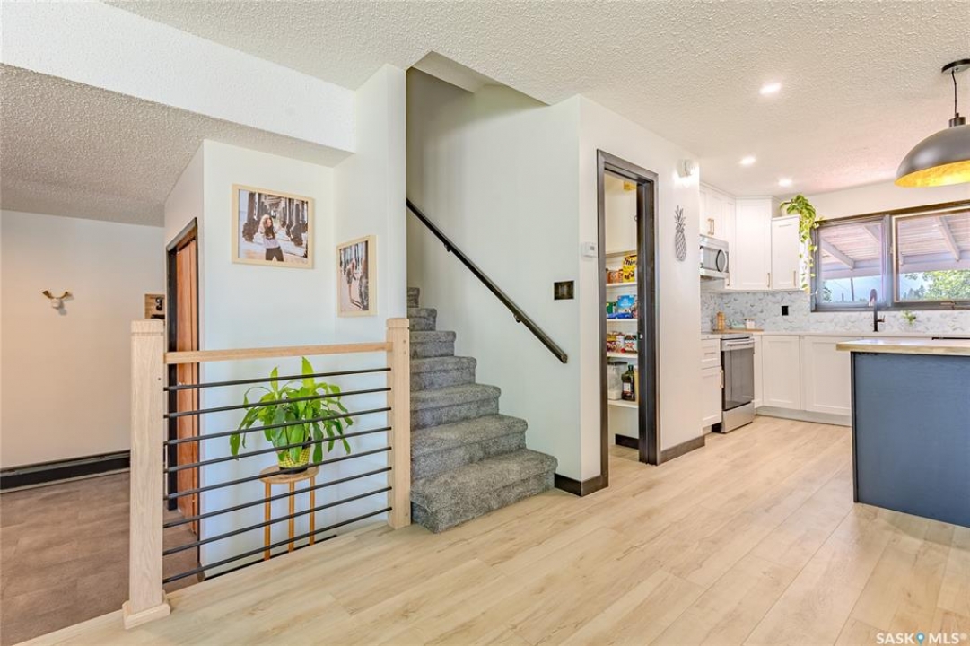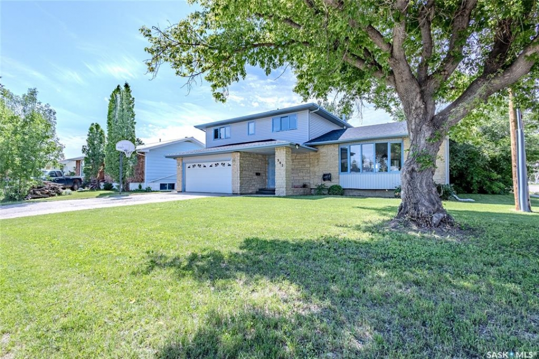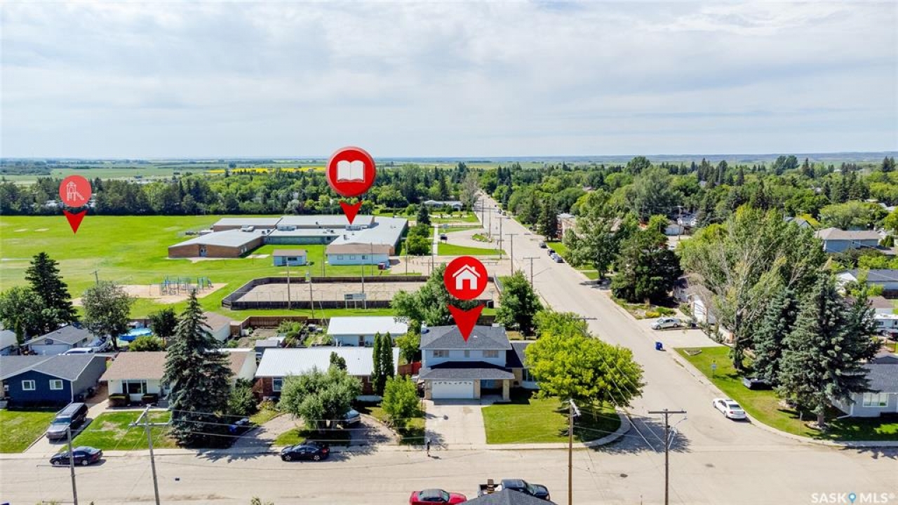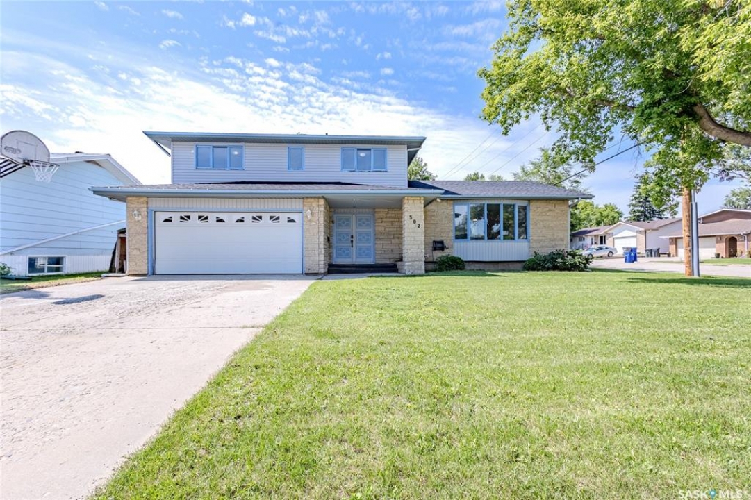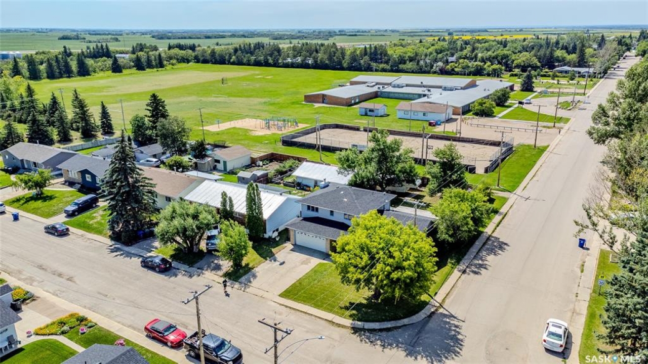 Welcome to this small town gem, perfect for families looking for more value without giving up the convenience of Saskatoon. Just a short drive from the city, this home gives you the space, comfort, and community feel that's hard to find in the city at this price point. This home is ideally situated on a large lot backing the park and high school, perfect for growing families. Step into a spacious front entry that leads up to a stunningly renovated main floor featuring new laminate flooring and a bright bay window in the living room. The updated kitchen has a black butcher block eat-up island, quartz countertops, under-cabinet lighting, backsplash, stainless steel appliances, and a double undermount sink. A functional walkthrough pantry connects to the rear mudroom with main floor laundry and a convenient two-piece bath. The adjacent dining area offers direct access to the back deck, while a cozy family room with wood-burning fireplace and additional patio doors provides a second main floor gathering space. Upstairs, you'll find three bedrooms with new carpet including a spacious primary suite with a walkthrough closet and a luxurious en-suite featuring a double vanity, freestanding tub, and oversized shower. The partially finished basement includes a fourth bedroom, rec room, storage, and a bonus room perfect for a play area or indoor hockey practice. The large backyard is fully fenced with a gate for RV access, a storage shed, and plenty of room to play. A double attached heated garage completes this fantastic property, ready for a new family to call it home! Contact your Realtor today to schedule a private showing.