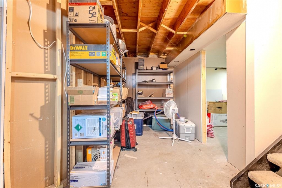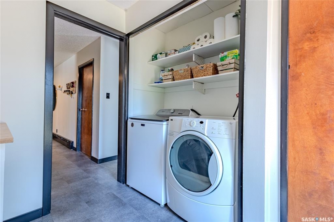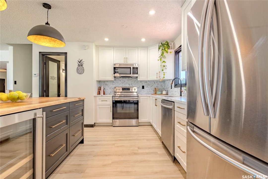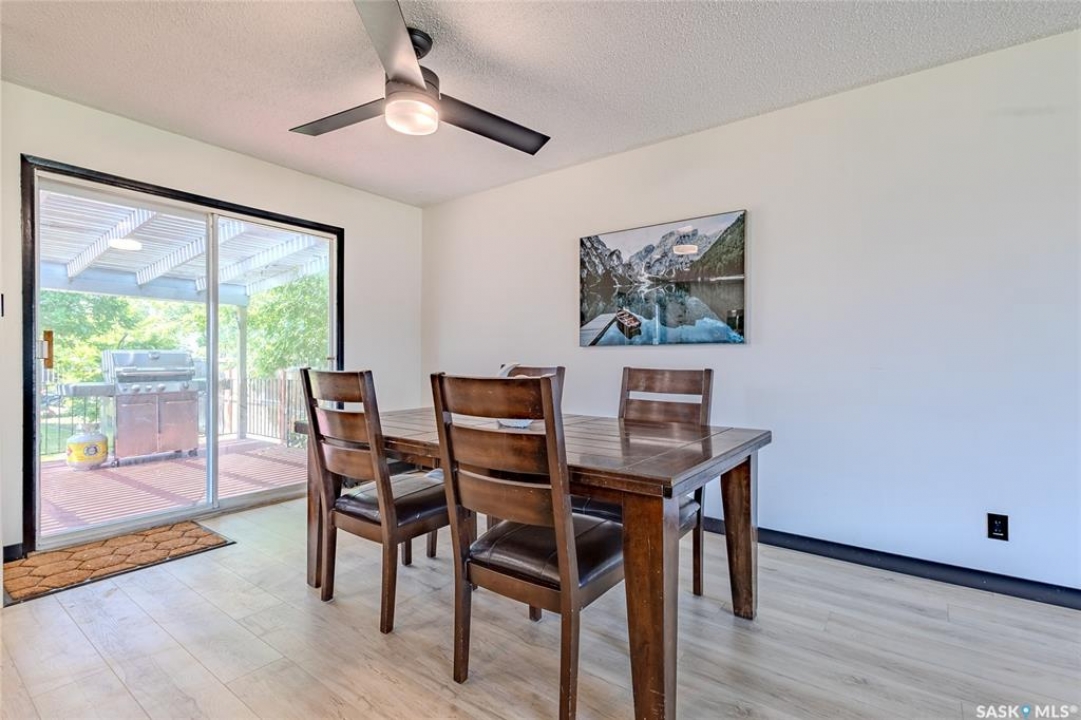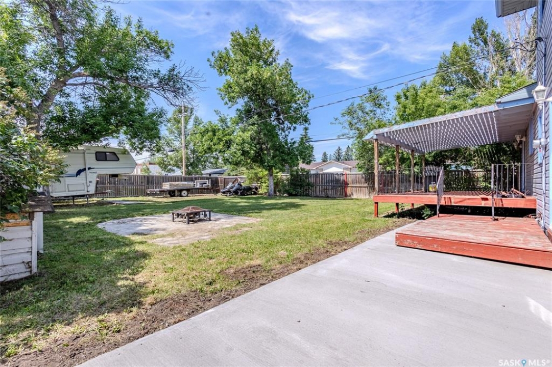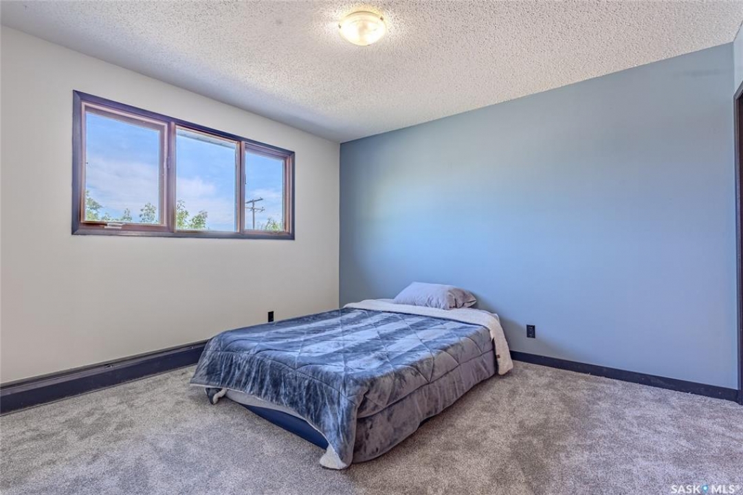 Welcome to this small town gem, perfect for families looking for more value without giving up the convenience of Saskatoon. Just a short drive from the city, this home gives you the space, comfort, and community feel that's hard to find in the city at this price point. This home is ideally situated on a large lot backing the park and high school, perfect for growing families. Step into a spacious front entry that leads up to a stunningly renovated main floor featuring new laminate flooring and a bright bay window in the living room. The updated kitchen has a black butcher block eat-up island, quartz countertops, under-cabinet lighting, backsplash, stainless steel appliances, and a double undermount sink. A functional walkthrough pantry connects to the rear mudroom with main floor laundry and a convenient two-piece bath. The adjacent dining area offers direct access to the back deck, while a cozy family room with wood-burning fireplace and additional patio doors provides a second main floor gathering space. Upstairs, you'll find three bedrooms with new carpet including a spacious primary suite with a walkthrough closet and a luxurious en-suite featuring a double vanity, freestanding tub, and oversized shower. The partially finished basement includes a fourth bedroom, rec room, storage, and a bonus room perfect for a play area or indoor hockey practice. The large backyard is fully fenced with a gate for RV access, a storage shed, and plenty of room to play. A double attached heated garage completes this fantastic property, ready for a new family to call it home! Contact your Realtor today to schedule a private showing.