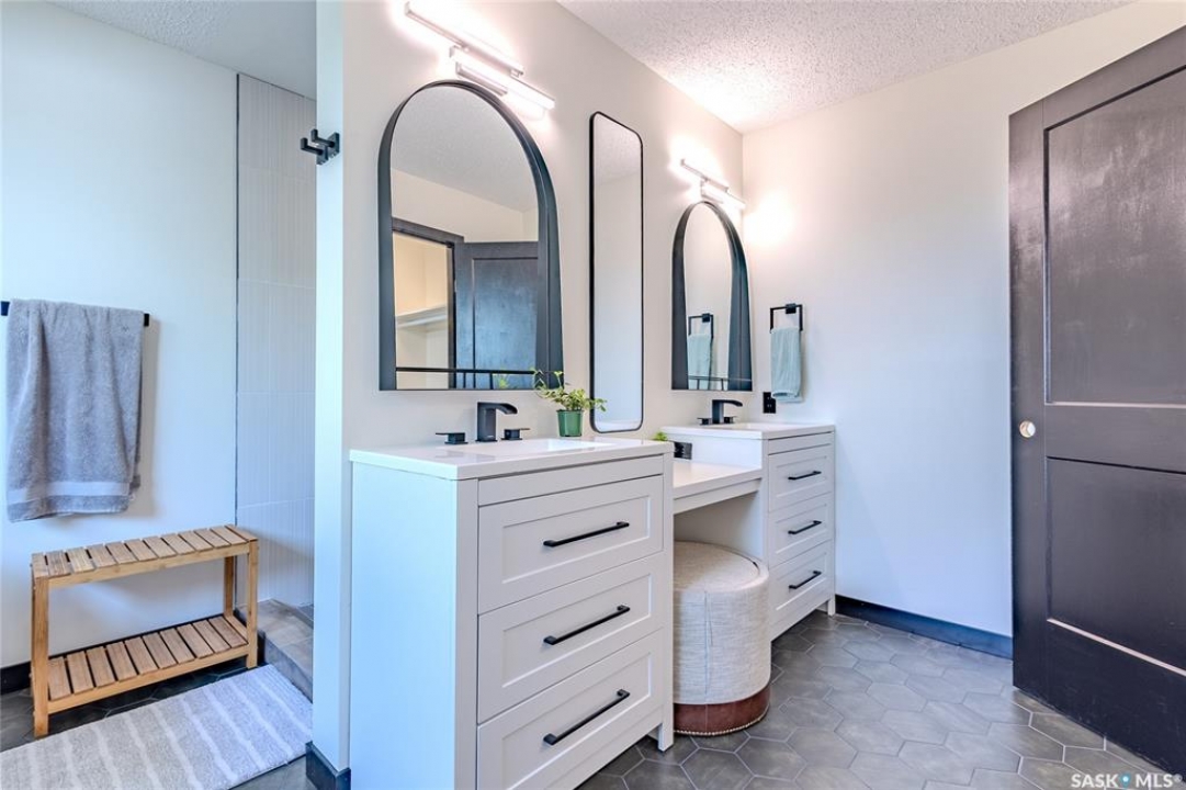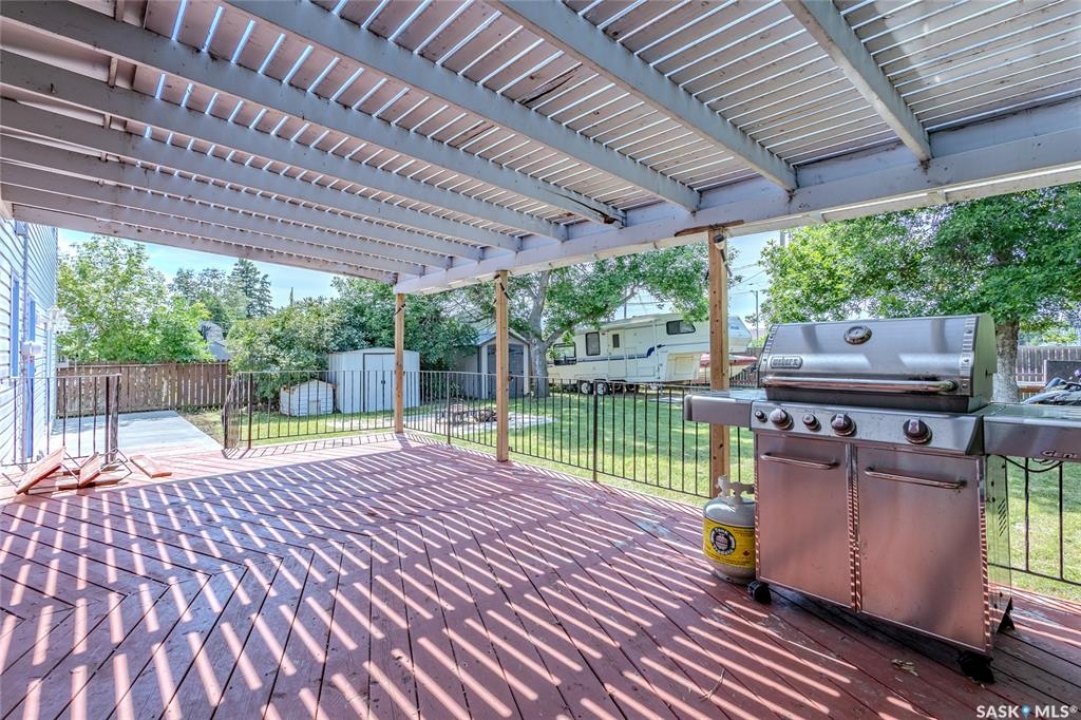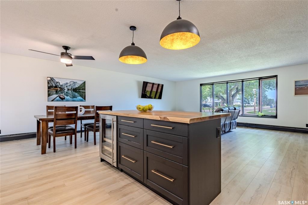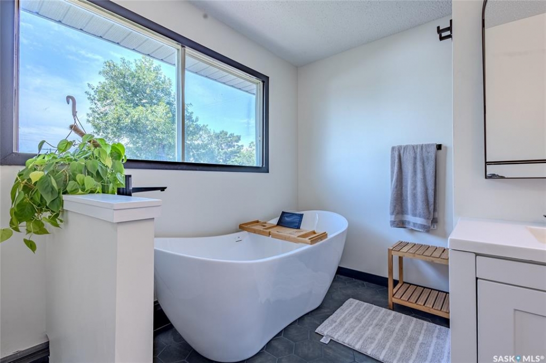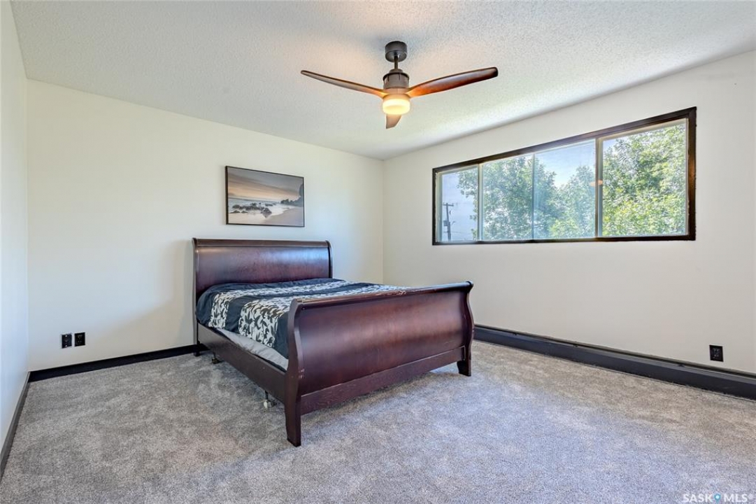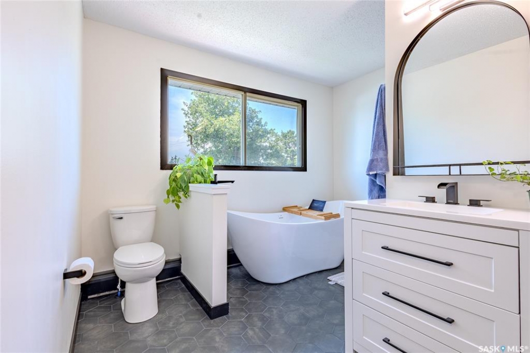 Welcome to this small town gem, perfect for families looking for more value without giving up the convenience of Saskatoon. Just a short drive from the city, this home gives you the space, comfort, and community feel that's hard to find in the city at this price point. This home is ideally situated on a large lot backing the park and high school, perfect for growing families. Step into a spacious front entry that leads up to a stunningly renovated main floor featuring new laminate flooring and a bright bay window in the living room. The updated kitchen has a black butcher block eat-up island, quartz countertops, under-cabinet lighting, backsplash, stainless steel appliances, and a double undermount sink. A functional walkthrough pantry connects to the rear mudroom with main floor laundry and a convenient two-piece bath. The adjacent dining area offers direct access to the back deck, while a cozy family room with wood-burning fireplace and additional patio doors provides a second main floor gathering space. Upstairs, you'll find three bedrooms with new carpet including a spacious primary suite with a walkthrough closet and a luxurious en-suite featuring a double vanity, freestanding tub, and oversized shower. The partially finished basement includes a fourth bedroom, rec room, storage, and a bonus room perfect for a play area or indoor hockey practice. The large backyard is fully fenced with a gate for RV access, a storage shed, and plenty of room to play. A double attached heated garage completes this fantastic property, ready for a new family to call it home! Contact your Realtor today to schedule a private showing.
