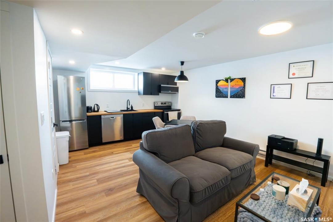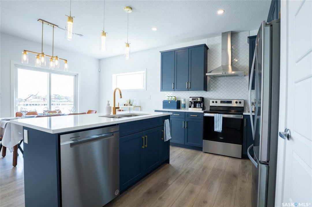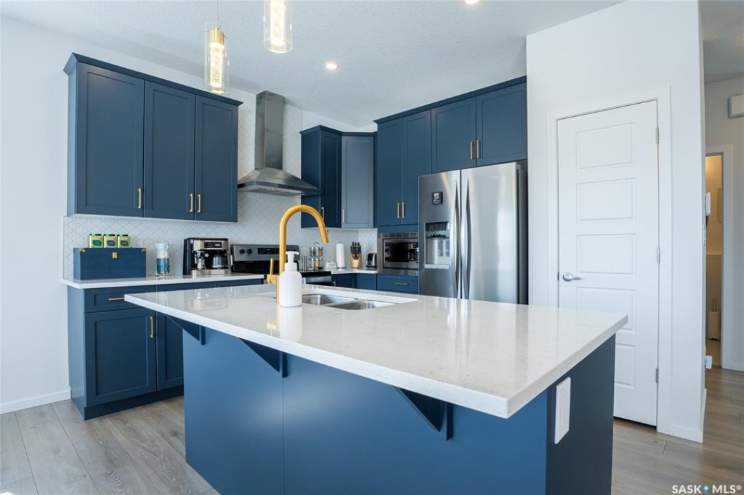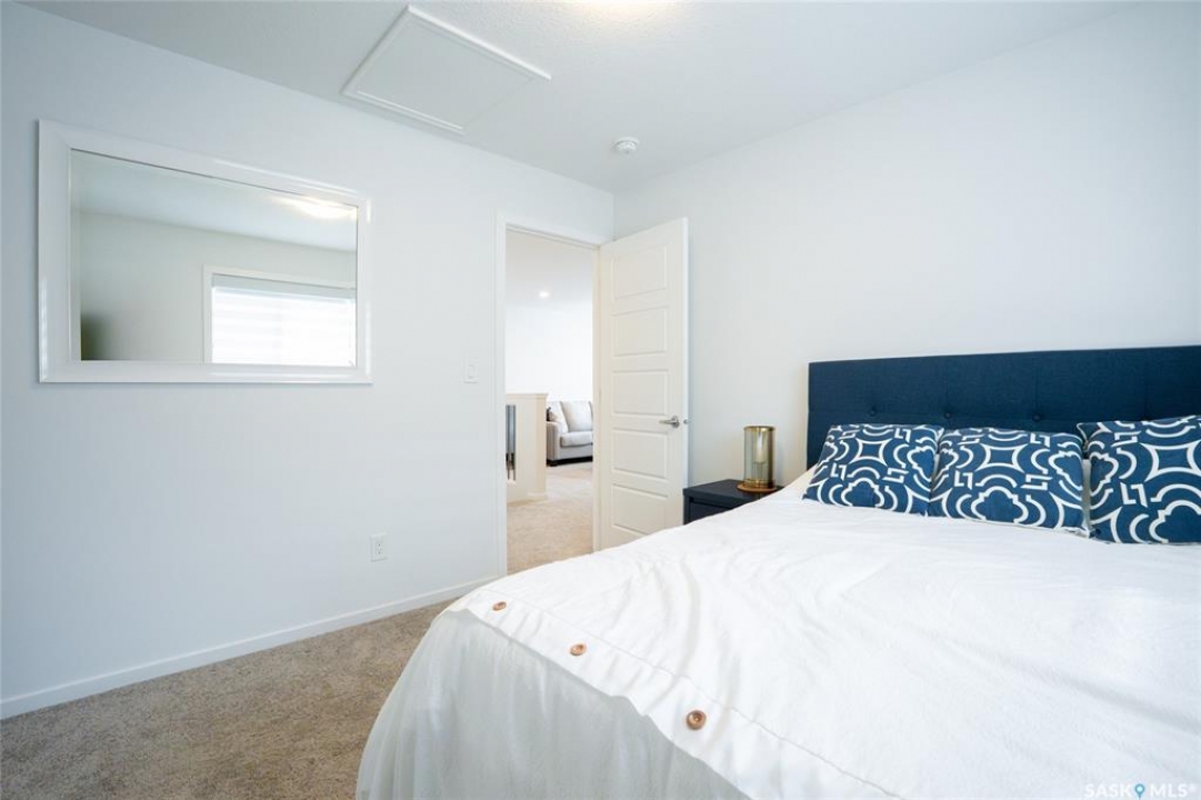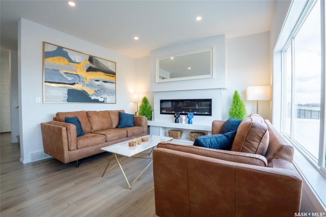 Welcome to 3033 Bellegarde Crescent, an exceptional 1765 sqft two-storey luxury home nestled in one of East Regina's most tranquil and sought-after neighbourhoods. This meticulously designed property backs onto a breathtaking green space, offering unparalleled privacy, serenity, and scenic views right from your backyard. Step inside to discover a beautifully crafted open-concept main floor featuring high-end finishes, main floor office/den, an abundance of natural light, and thoughtful design throughout. The gourmet kitchen boasts premium appliances, quartz countertops, and a spacious island, perfect for entertaining. The adjoining living and dining areas flow seamlessly, creating a warm and inviting atmosphere. Upstairs, you'll find three generously sized bedrooms, including a luxurious primary suite complete with a spa-inspired ensuite and a walk-in closet. Every detail has been considered to offer comfort, elegance, and functionality. The fully finished legal basement suite is an incredible bonus, adding additional income to help pay your mortgage, or ideal for extended family or guests. With its own private entrance, full kitchen, laundry, and modern finishes, it provides flexibility without compromising style or space. Outside, enjoy the tranquility of nature with direct views to the naturalized landscape – perfect for morning coffee, evening strolls, or simply unwinding in peace.