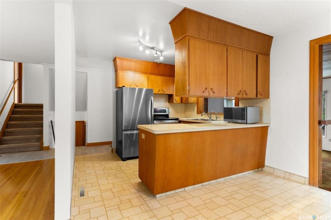 Welcome to this solid four-level split offers an exciting opportunity to personalize a spacious home in one of the south end's most desirable neighbourhoods. With four bedrooms and two bathrooms, the layout is both functional and inviting, featuring plenty of original hardwood and a well-designed floor plan. A standout feature is the expansive double garage with a 12x22 studio loft above—perfect for creative pursuits or extra storage. The home also includes a 400-square-foot addition from the 1980s, complete with a cozy fireplace that enhances the overall living space. The kitchen and dining areas are separate, with a charming bay window that brings in natural light. Appliances such as a stainless steel fridge and stove, dishwasher, washer, dryer, and microwave are all included. Recent updates include fresh exterior paint and newer shingles, adding to the home's curb appeal. The insulated and heated garage, originally built in 1976 and used as a shop/studio, will need an overhead door installed. Located close to schools, parks, bus routes, and all the amenities the south end has to offer, this property is ready for its next chapter. Reach out to your Realtor today to arrange a personal tour.