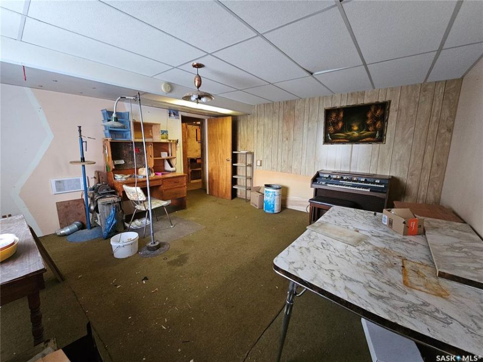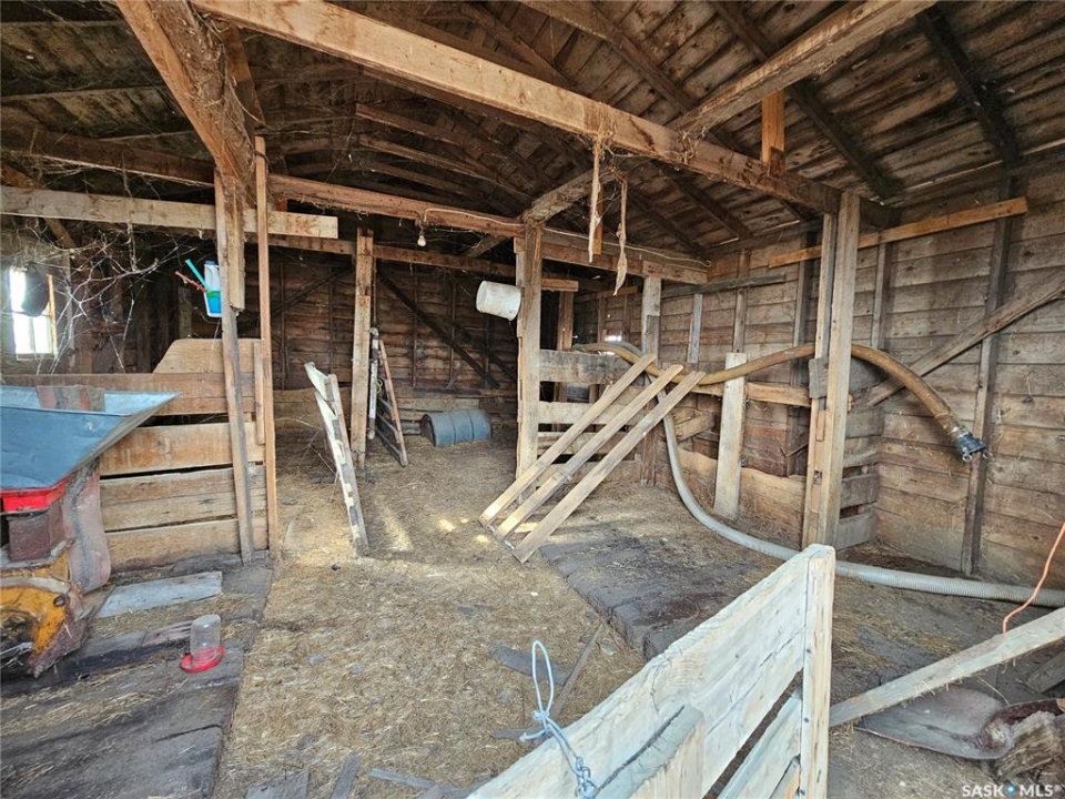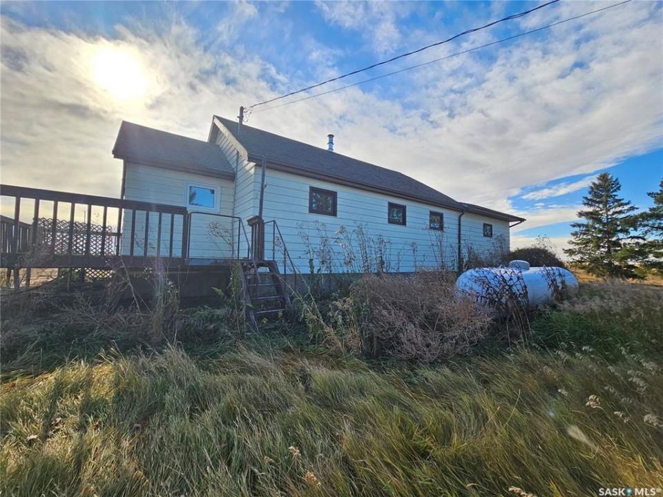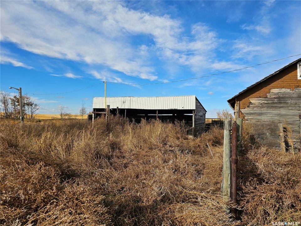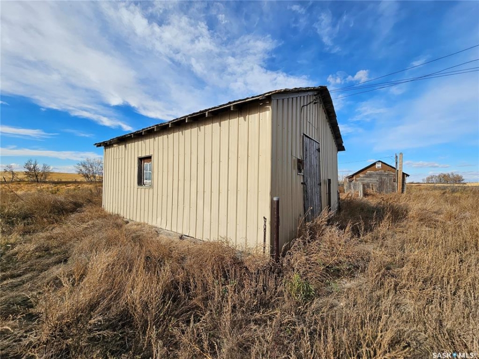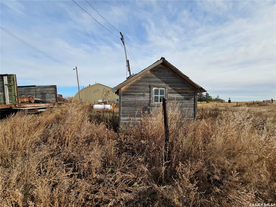 Looking for an acreage on a budget? Check this one out!! Currently awaiting a subdivision, the seller is looking to separate the yard site (approximately 10.25 acres) to allow a new family to make it their own! The seller will assume all subdivision costs.The home is assumed to be a 1920's build that was moved onto a new foundation in the 70's (as per last owner). The house itself could use some cosmetic upgrades but is operational in its functions. It offers 1296 square feet above grade with 4 bedrooms (one currently used as a laundry room), and has a roomy kitchen and living room with large south facing windows making the space bright and sunny. The property is run on propane (tank rented from the Co-op) and includes a partially finished basement with a upgraded E/E furnace, electric hot water heater, lagoon and a 100 amp electrical panel. The basement also has a walk-out to the west side of the yard with a spacious mudroom and workshop room (which could also function as an additional bedroom if required). The yard includes approximately 4 acres of fenced pasture, an old barn, old school house and numerous sheds. The huge highlight here is the 40' x 40' insulated and heated shop space with a good concrete floor. The 1976 bored well is 27 feet deep (pumping rate is unknown), but previous owners stated there has always been ample supply even when they had cattle and during a drought. If you're looking for an entry level acreage you can make your own, this property has a lot to offer!