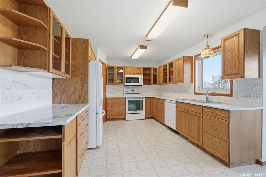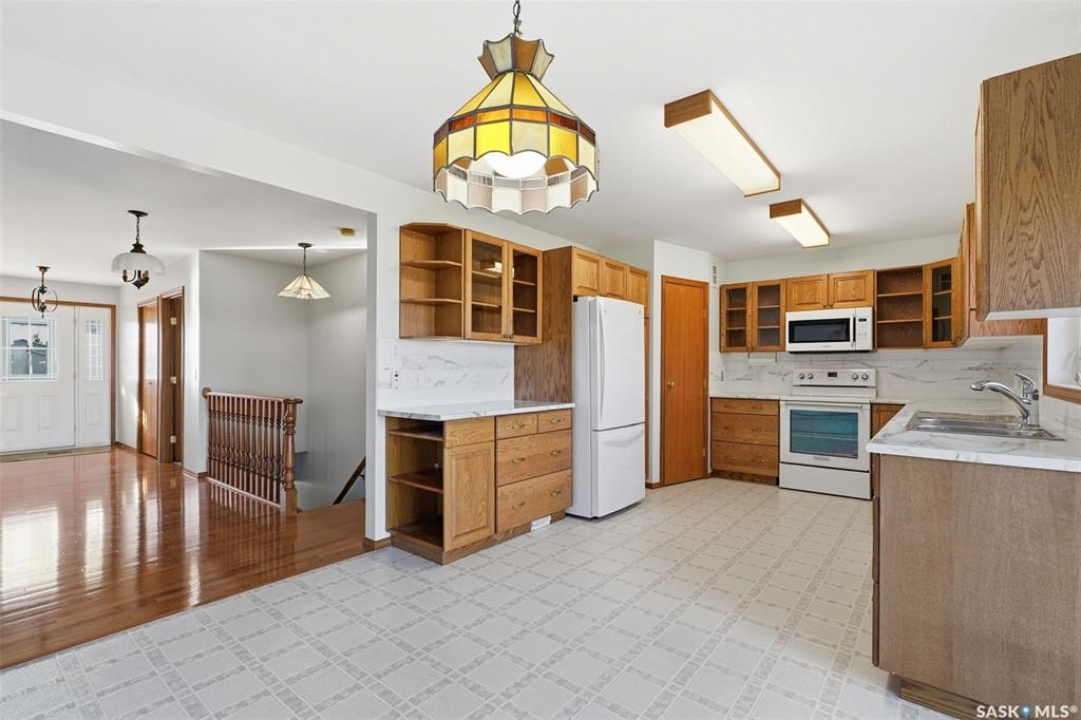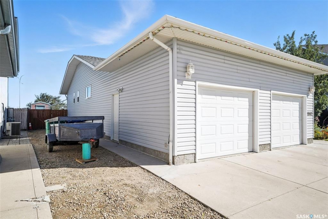 A true gem with original owners located in Silverspring, this large bungalow is 1712 sq ft, has 5 bedrooms and 3 bathrooms. The living room (could be turned into a main floor office or bedroom) and dining room have hardwood floors and plenty of natural light. The kitchen is open to the family room, has lots of cabinets, a pantry, garburator, overlooks the backyard and has a newer stove. Both of the bedrooms on the main floor have a walk in closets and the primary bedroom has a 4-piece ensuite. The laundry is conveniently located on the main floor with access to the double attached garage. The basement has a large family room, 2 bedrooms, a 4-piece bathroom, a large crafting room or the potential for an additional bedroom with a walk in closet, a storage room and a large workshop with direct entrance into the double 26x26 attached garage. The yard is an oasis, it has been beautifully designed with numerous perennials, a deck, sitting area, a shed and has the most amazing sunsets as it backs onto the Northeast Swale. Other notable features: Central vac with kick plate in the kitchen, central air, newer dishwasher 2022, hot water tank 2021, shingles in 2018. Call your realtor today to view this well cared for home!