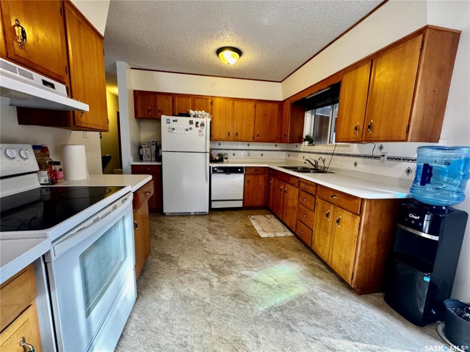 The perfect family home in the friendly town of Springside SK. Welcome to 217 Patrick Street. Driving up to the property you will be welcomed to an asphalt driveway that leads to a large 24x28 attached garage with direct entry to the home and back yard. Entering the home from the garage brings you to a porch to put away your outerwear. A few steps will take you into the kitchen and dining area. The dining area has direct access to the east facing deck. The kitchen includes fridge and stove. There is a dishwasher but the sellers have never used it. The west facing living room has lots of room to relax after a long day. Down the hall there are three good sized bedrooms. The 3 piece bathroom completes the main floor living area. The basement has lots of space including workshop, storage, utility room. laundry room, and bedrooms (window not to current code). The laundry room features included washer and dryer and stand up shower. The large bedroom area has lots of room measuring 10' 8" x 20'. The utility area features HE Gas Furnace (2014), Tankless On Demand Water Heater (2024), RO System (Owned), and Sump Pump. The fully fenced back yard has everything you want in a back yard. The deck has 126 square feet of space that leads to a closed sun room area. The fully fenced back yard features lawn, garden area, sheds, and mature trees. Springside has a K-8 Public school. Grades 9-12 students get bussed to Yorkton SK 15 minutes away.