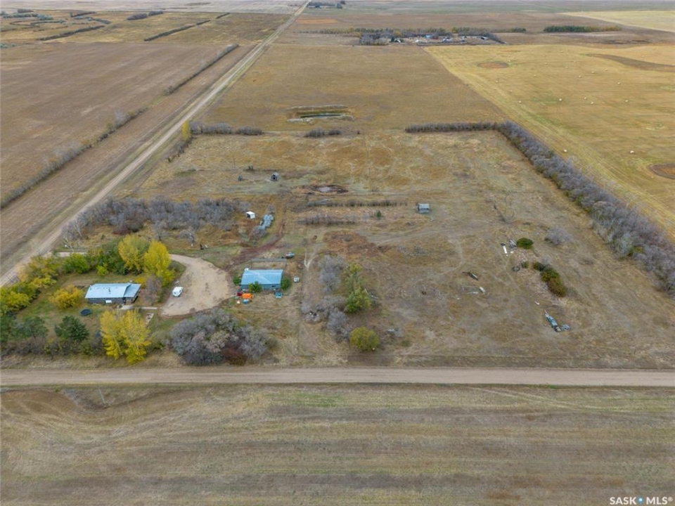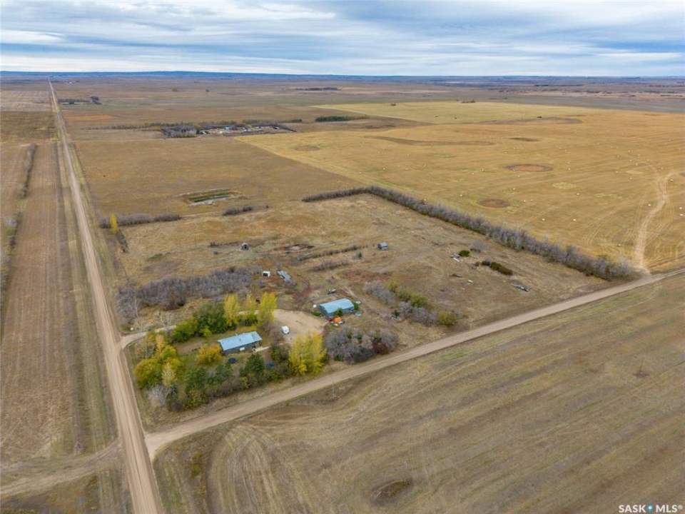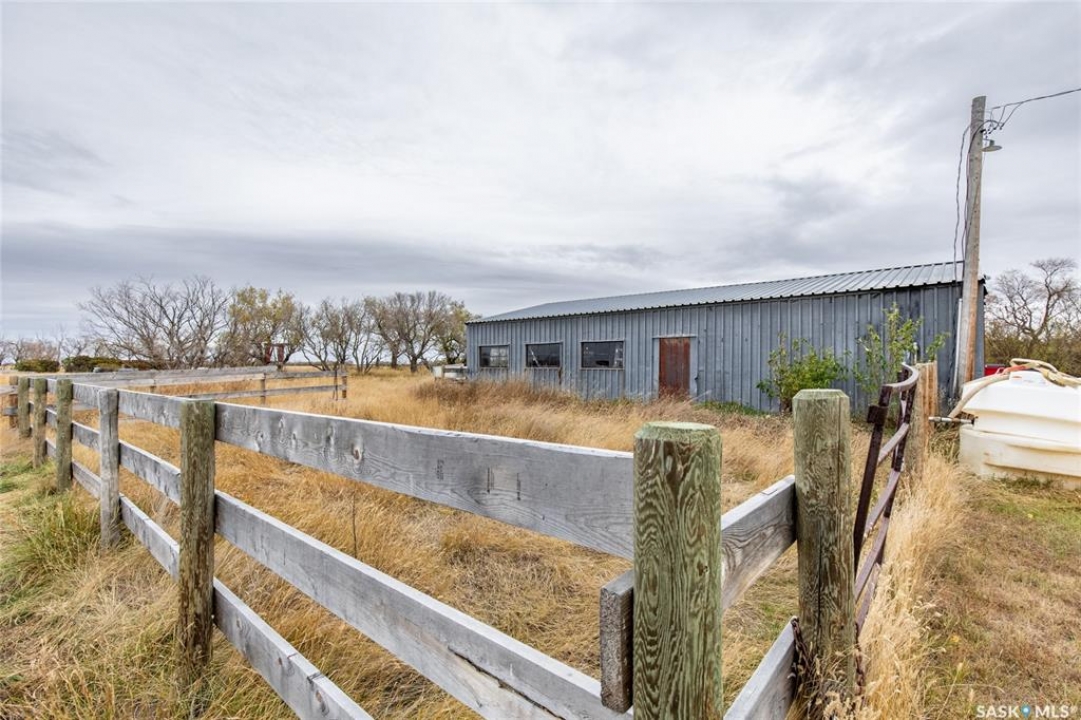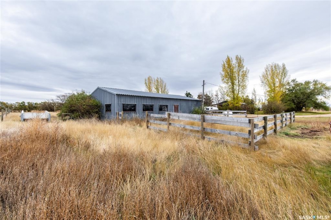 Just five minutes North of Mortlach, this 40-acre property is a fantastic opportunity for hobby farmers, ranchers, or anyone looking to enjoy a rural lifestyle with room to grow. The land is set up for livestock, featuring two bison pens secured with 5-wire fencing and a massive quonset that offers plenty of space for machinery, equipment, or feed storage. You'll also find a variety of established fruit trees and berry bushes, including apple, plum, cherry, and raspberries. The well-kept bungalow offers comfort and functionality, with a wrap-around deck to enjoy prairie views and a thoughtfully updated interior. The main floor includes a mudroom entry, updated kitchen, dining area, living room, two bedrooms, and a 4-piece bathroom (with in-floor heating). Downstairs, the mostly finished basement features a large family and games room, laundry/utility space, and a generous primary bedroom with walk-in closet and 3-piece en suite. Whether you're looking to raise animals, enjoy wide open space, or settle into country living with modern comforts, this property delivers!