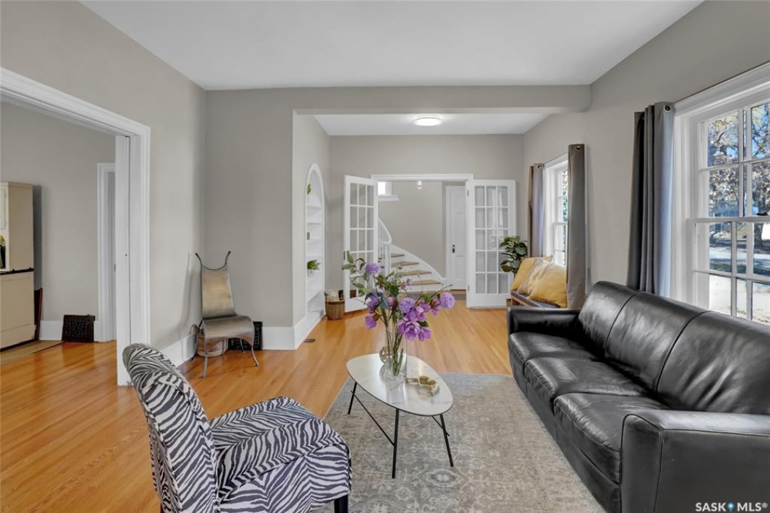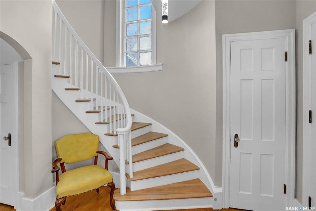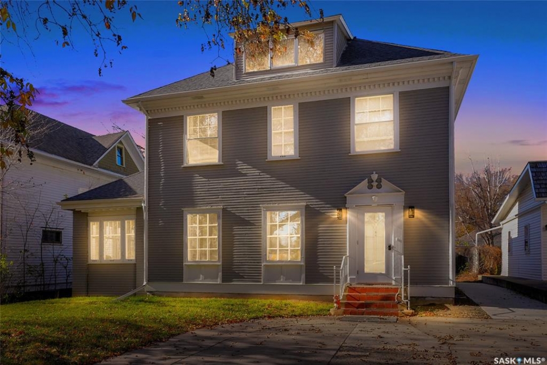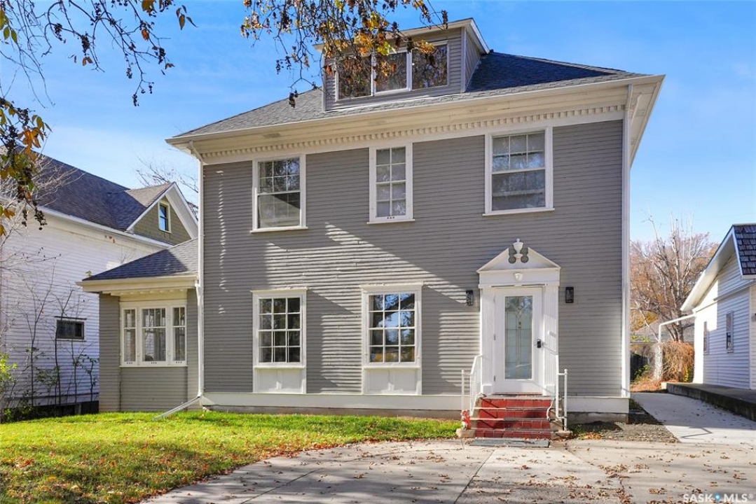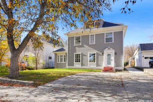 This exceptional family home is ideally located just steps from schools, parks & vibrant downtown amenities, including shopping & restaurants. This stunning 2.5 storey residence nestled on an expansive lot, perfectly blends character w/modern updates. The impressive front drive sets the stage for what's to come. Step into the spacious foyer, where you'll be greeted by a striking spiral staircase leading to the 2nd floor. French doors unveil the inviting living room, adorned w/large windows & beautiful hardwood floors, seamlessly flowing into a sunlit sunroom—perfect for relaxation or use as a home office. The generously sized dining room features a charming bay window, ideal for hosting family gatherings. The heart of the home, the renovated kitchen, boasts elegant white cabinetry, gleaming quartz countertops, stainless steel appliances & a dining nook. Adjacent to the kitchen, discover the practical bath/laundry combo located off the mudroom, offering ample space for family needs. Ascending the staircase, the 2nd floor reveals 4 spacious bedrooms, each offering comfort & style all w/hard floors, along w/the updated 4pc. bath featuring a tiled bath & stand-in shower w/sleek glass door. The 3rd floor loft is a versatile haven that can serve as a recreational room, additional bedroom, children's play area, or a flexible space tailored to your lifestyle. The lower level surprises with impressive ceiling height and offers a family/game area, bar, bath, storage & utility space—perfect for adding personal touches & enhancing the home's value. Step outside to the covered deck, opening to a vast yard awaiting your landscaping vision. The recently constructed dbl. garage w/alley access also provides convenient RV/boat parking options. This is not just a house; it's a home. Move-in ready to live more beautifully. CLICK ON THE MULTI MEDIA LINK FOR A FULL VISUAL TOUR and more information. Call today for a personal viewing.