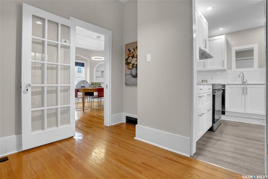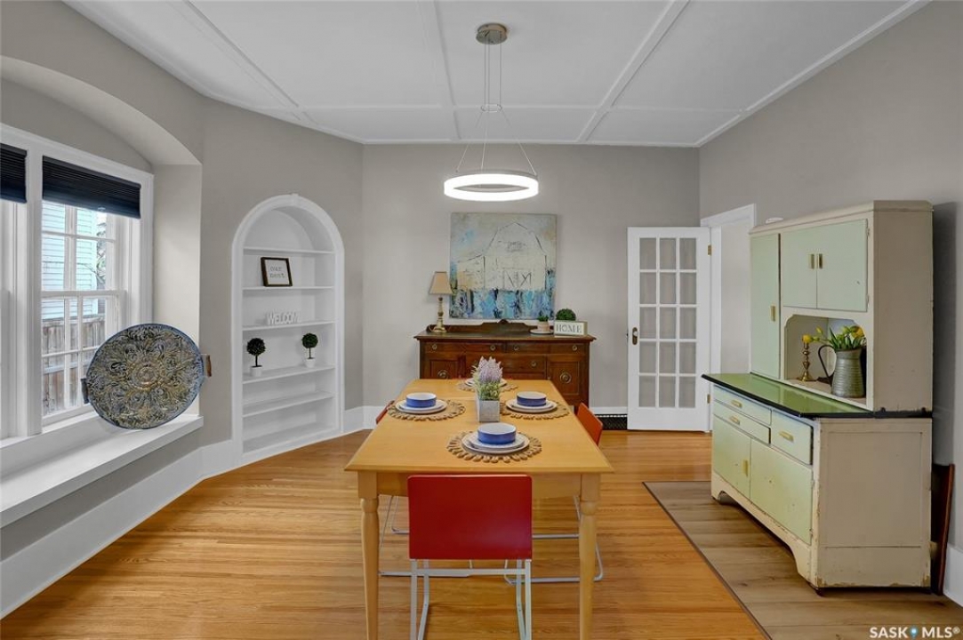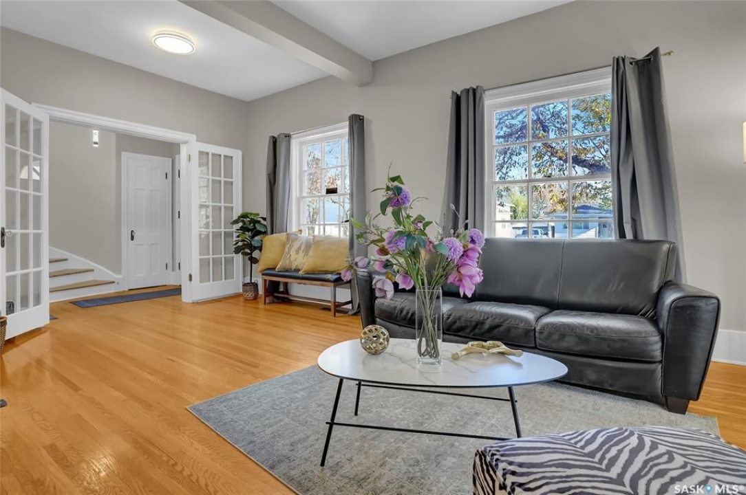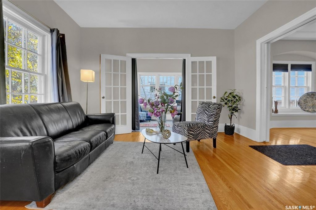 This exceptional family home is ideally located just steps from schools, parks & vibrant downtown amenities, including shopping & restaurants. This stunning 2.5 storey residence nestled on an expansive lot, perfectly blends character w/modern updates. The impressive front drive sets the stage for what's to come. Step into the spacious foyer, where you'll be greeted by a striking spiral staircase leading to the 2nd floor. French doors unveil the inviting living room, adorned w/large windows & beautiful hardwood floors, seamlessly flowing into a sunlit sunroom—perfect for relaxation or use as a home office. The generously sized dining room features a charming bay window, ideal for hosting family gatherings. The heart of the home, the renovated kitchen, boasts elegant white cabinetry, gleaming quartz countertops, stainless steel appliances & a dining nook. Adjacent to the kitchen, discover the practical bath/laundry combo located off the mudroom, offering ample space for family needs. Ascending the staircase, the 2nd floor reveals 4 spacious bedrooms, each offering comfort & style all w/hard floors, along w/the updated 4pc. bath featuring a tiled bath & stand-in shower w/sleek glass door. The 3rd floor loft is a versatile haven that can serve as a recreational room, additional bedroom, children's play area, or a flexible space tailored to your lifestyle. The lower level surprises with impressive ceiling height and offers a family/game area, bar, bath, storage & utility space—perfect for adding personal touches & enhancing the home's value. Step outside to the covered deck, opening to a vast yard awaiting your landscaping vision. The recently constructed dbl. garage w/alley access also provides convenient RV/boat parking options. This is not just a house; it's a home. Move-in ready to live more beautifully. CLICK ON THE MULTI MEDIA LINK FOR A FULL VISUAL TOUR and more information. Call today for a personal viewing.