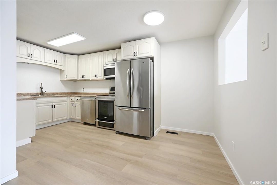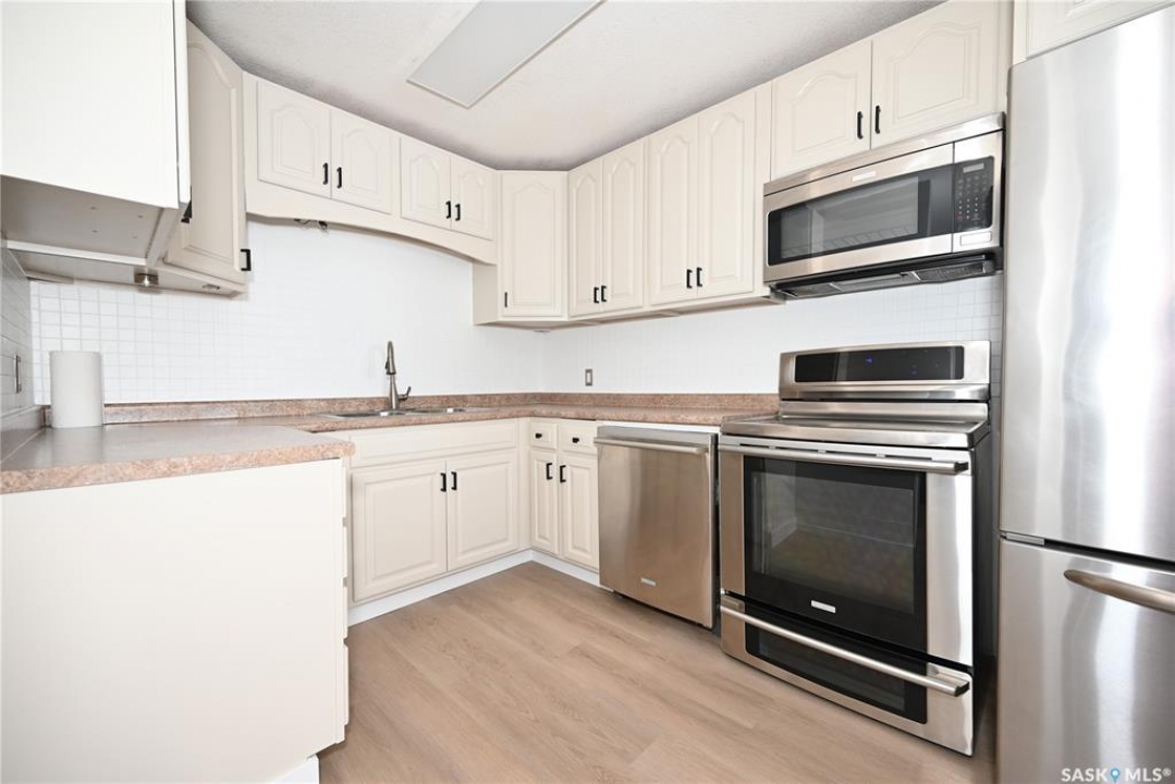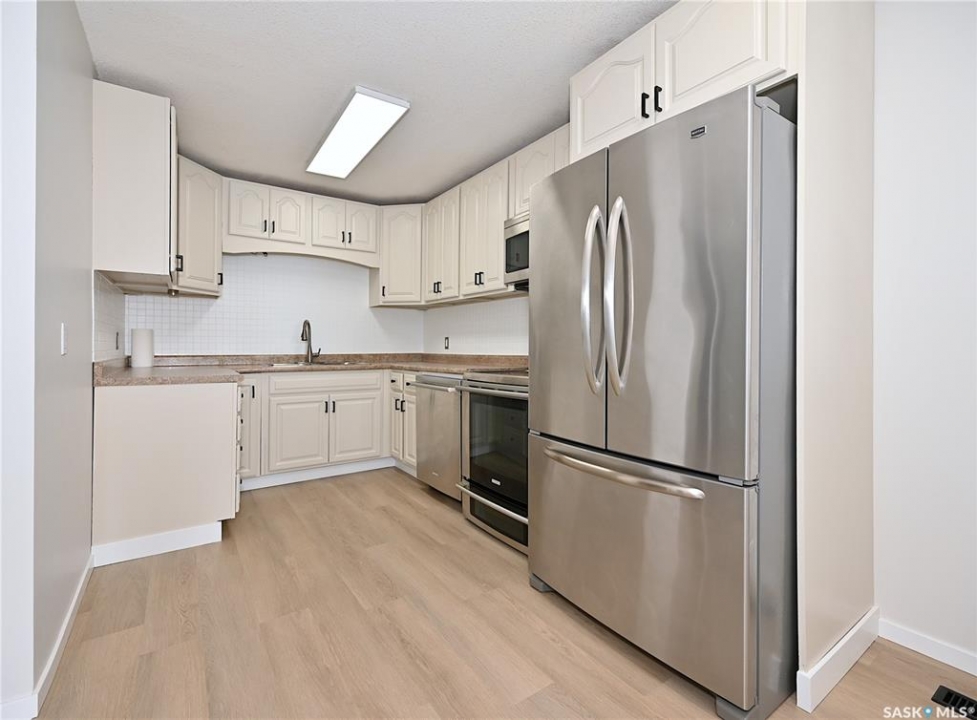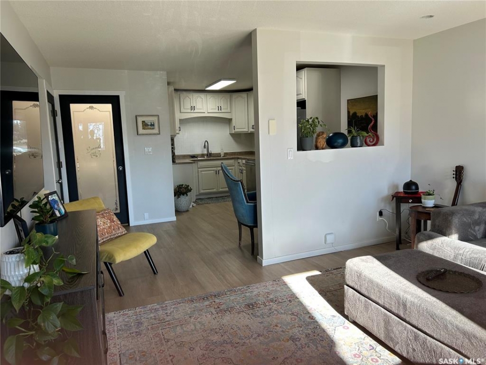Freshly and fully renovated, ground level 2 bedroom, 4 piece bathroom condo with everything you need. MOVE IN READY. All renos have been recently completed which includes but not limited to: paint throughout, vinyl plank throughout, with the exception of 2nd bedroom, trim, new LED lighting, spray textured ceiling, new four piece bathroom, new master bedroom window, updated furnace. Open concept entry, living room with wall mount for TV, eating area and kitchen with pantry. Stainless Steel kitchen appliances. Nice size primary bedroom with room for a king size bed. Second bedroom makes a great home office option and is also a generous size. Nice laundry area off the kitchen. The new bathroom has a cozy, deep tub. This unit is on the corner electrified parking right out front, and a patio area outside the front door. It also has an outside storage room. For affordable living and lifestyle in a fantastic location, this home is ideal. Condo fees include snow removal, lawn-care, external building maintenance, water/sewer and reserve fund.
