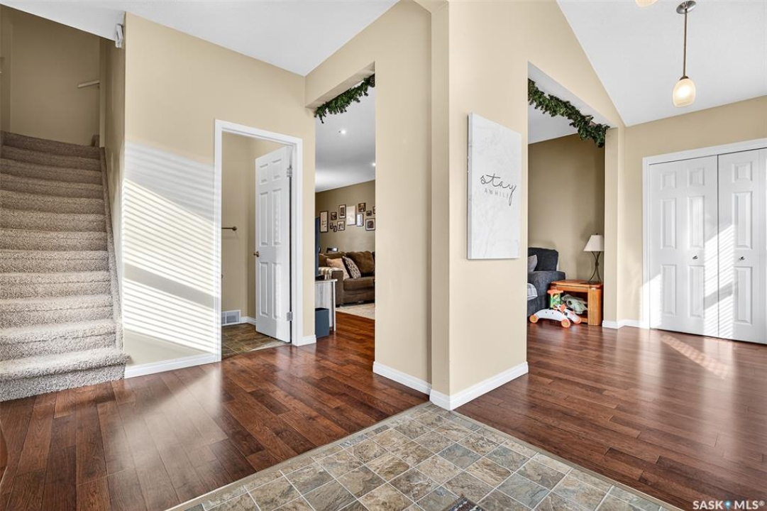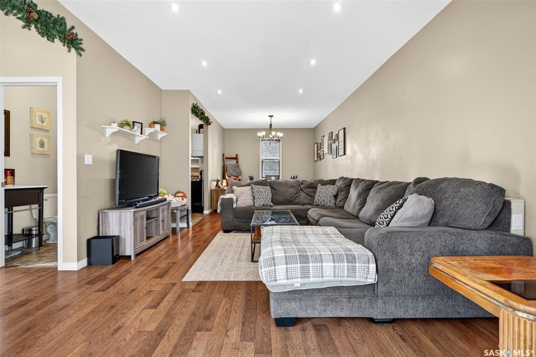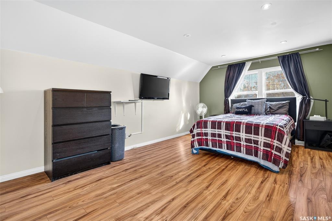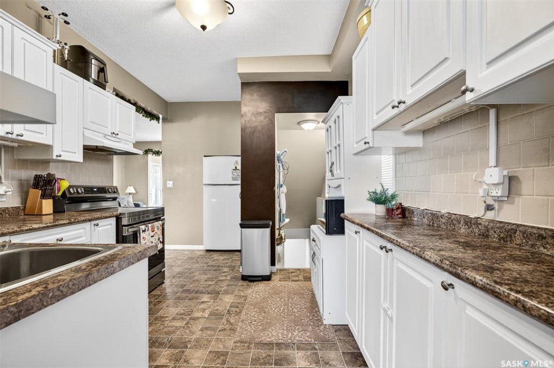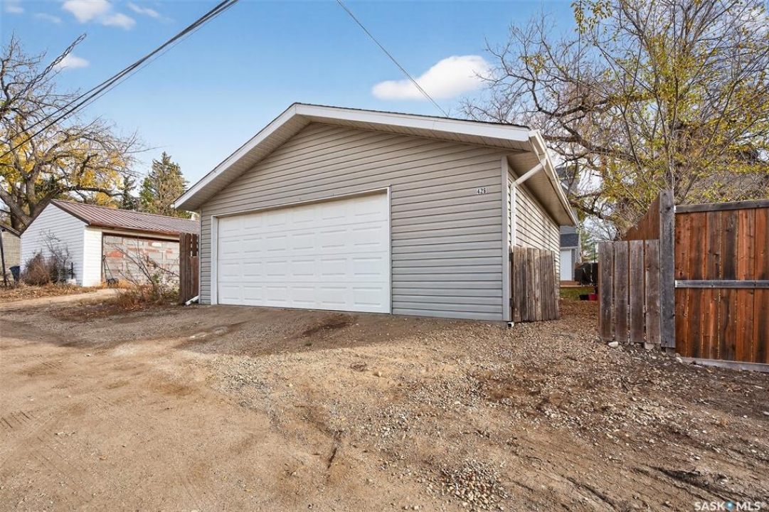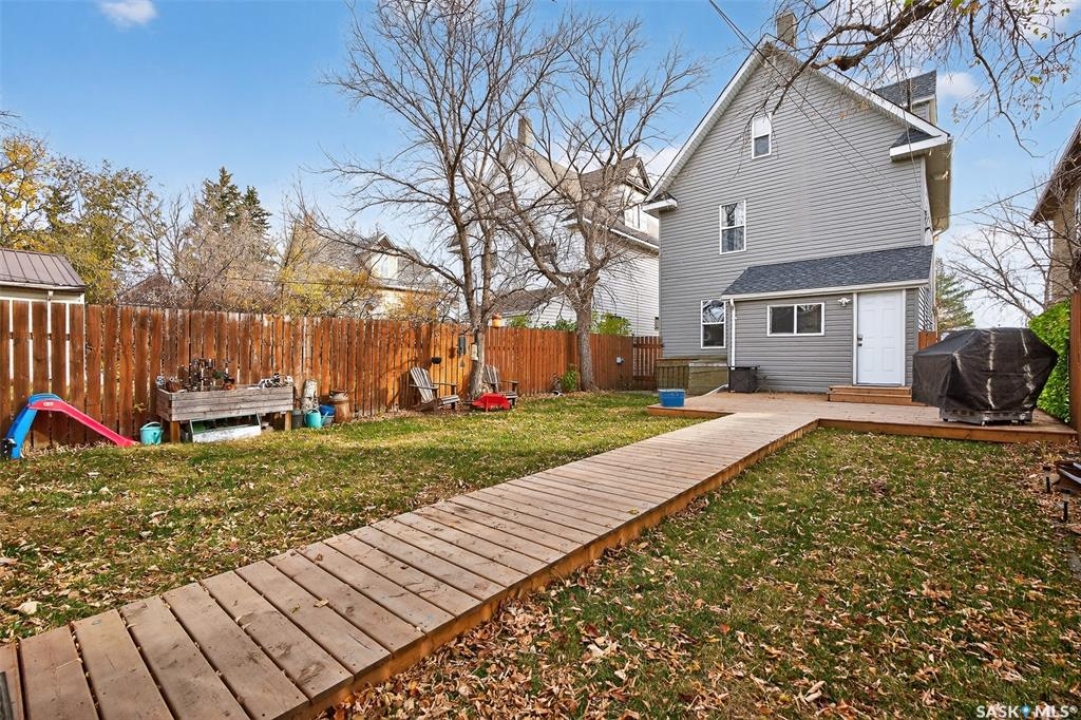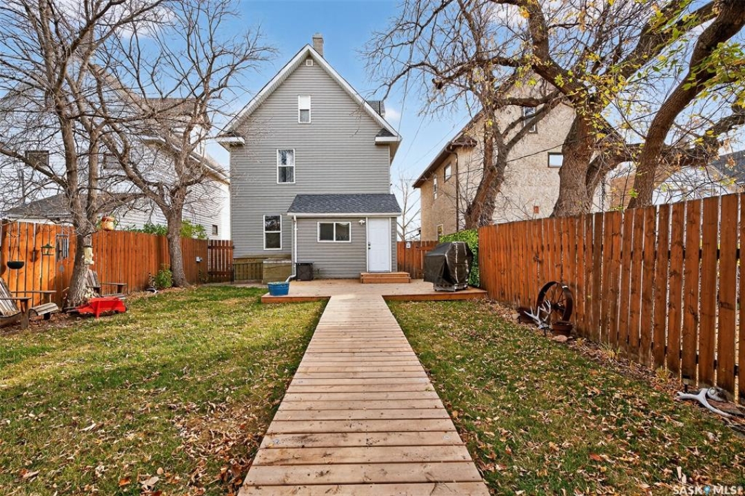 Your 1900+ sq ft home across from Moose Square Park awaits! Spanning 4 levels, this home does not lack space for you and your family! This home features 4 bedrooms (one of which is a large primary suite), 3 bathrooms, a double detached garage, and great updates throughout (new shingles this August!)! Enter the home into your inviting, large entryway with tons of space for coats and shoes. The main floor hosts an open-concept living room/dining room with large windows letting in plenty of natural light. The kitchen hosts updated white cabinetry, tile backsplash, and a large pantry. This level is complete with a 2-pc bathroom and mudroom/laundry room off of your back entry! The second level hosts a spacious 4-pc bathroom (with new bathtub shower kit purchased that is negotiable to stay with the home), along with 3 spacious bedrooms all with large windows. The third level is your private master suite! A huge bedroom complete with 3-pc ensuite and walk-in closet! The perfect getaway after a long day! The basement level is setup as a home gym currently (gym equipment is negotiable), complete with turf from the old Riders stadium that is included! You also have a utility/storage room and an optional exterior entrance from the basement if desired (currently closed off but could easily be opened back up). This property has a private yard with new deck and walkway installed out to your 24' x 24' garage (garage features a double car door from the alley, with an additional single car door to your yard, perfect for hauling in toys!) Updates to the home include: brand new shingles, stove and dryer this year, deck & walkway installed in 2024, paint, and new front door to be installed soon. This home has it all! Don't miss out, book your showing today!