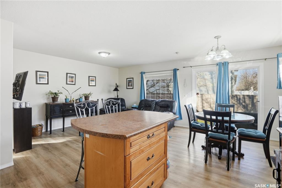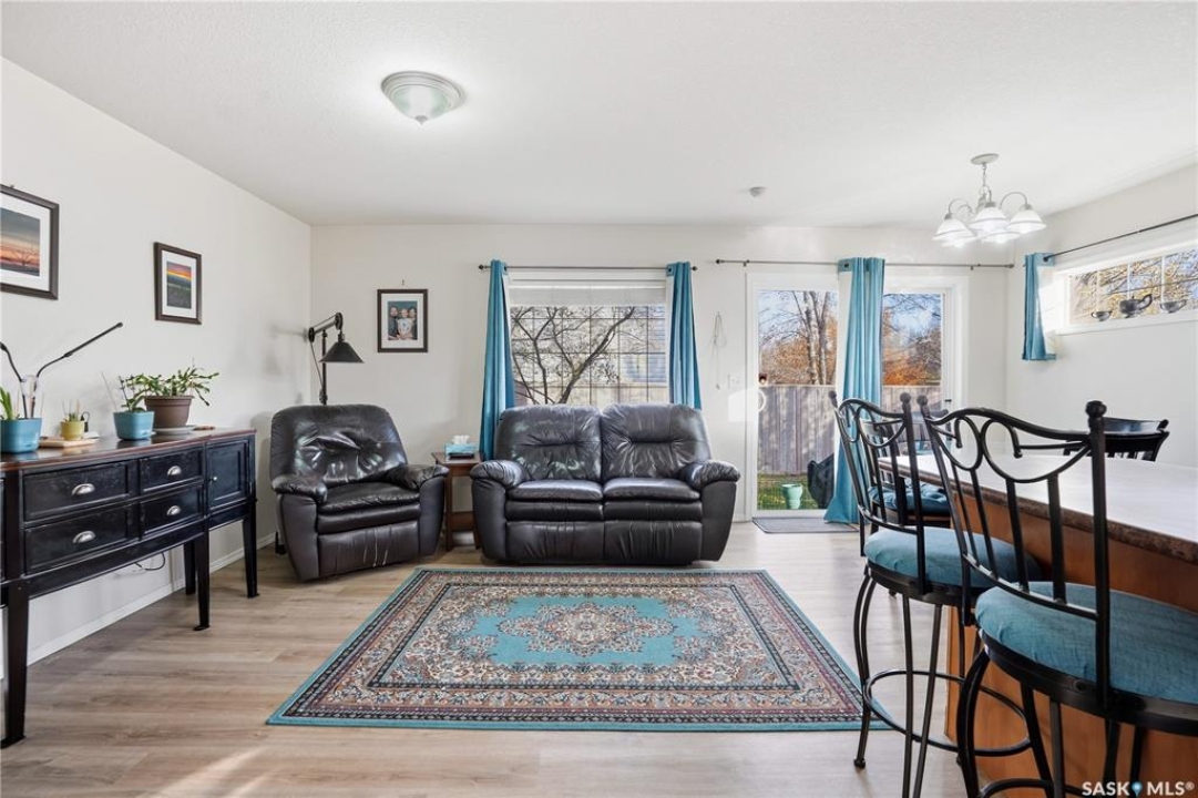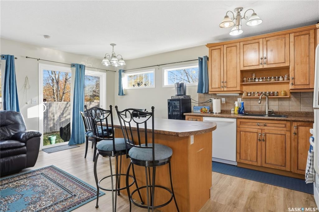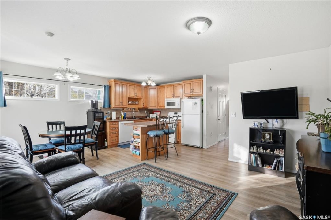 Welcome to this beautifully maintained end-unit condo in Regina's sought-after Lakeridge neighborhood! Offering 1,172 sq ft of stylish and functional living space, this home features an inviting open-concept main floor with extra dining room windows that fill the space with natural light. The kitchen is sure to impress with an abundance of maple cabinets, 4 appliances, a convenient island with seating for two, and plenty of counter space—perfect for both everyday living and entertaining. Recent updates over the past few years include newer flooring throughout the main floor, a newer stove, built-in dishwasher, and a replaced water heater. Upstairs, you'll find two bedrooms, a 4 piece bathroom and a large bonus room. The fully finished basement adds even more living space with a cozy rec room, a combined laundry/ 3 piece bathroom, and storage spaces. Enjoy the convenience of a single attached garage, central air conditioning, central vac and a welcoming front deck for your morning coffee or evening unwind. Located close to shopping, restaurants, parks, and amenities, this home offers the perfect blend of comfort and convenience. Included with your condo fees is access to the Sovanna Pointe Clubhouse. Quick possession is available—move in and start enjoying this bright and spacious home right away!