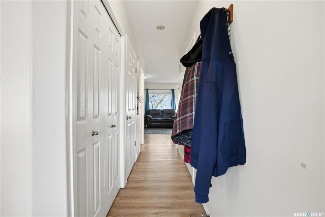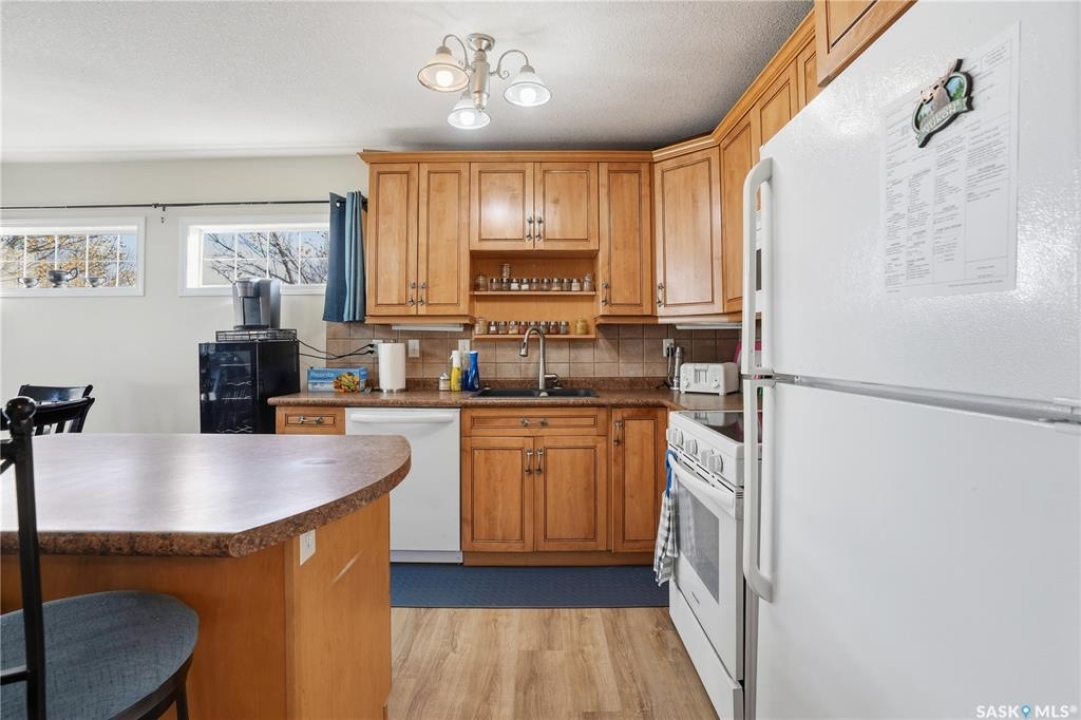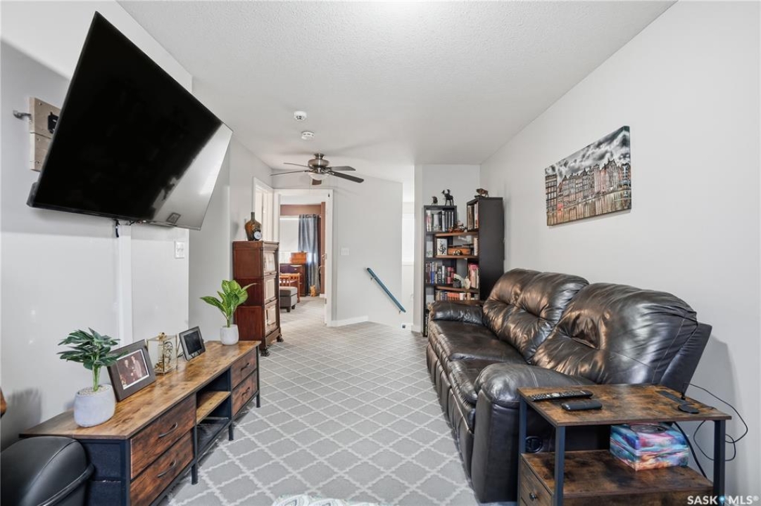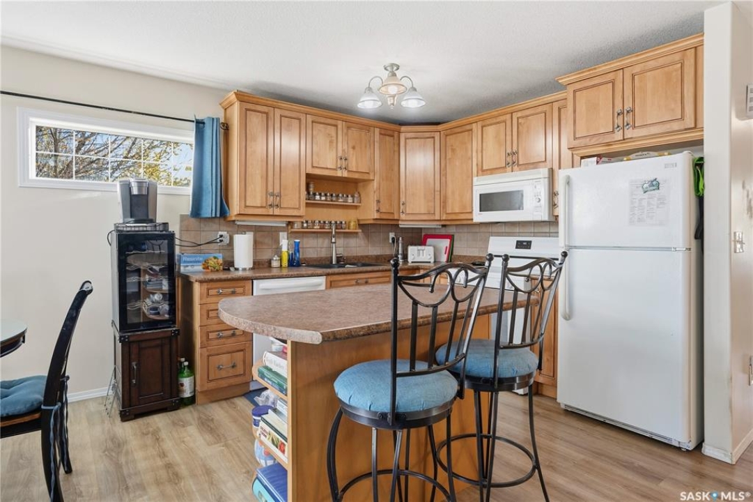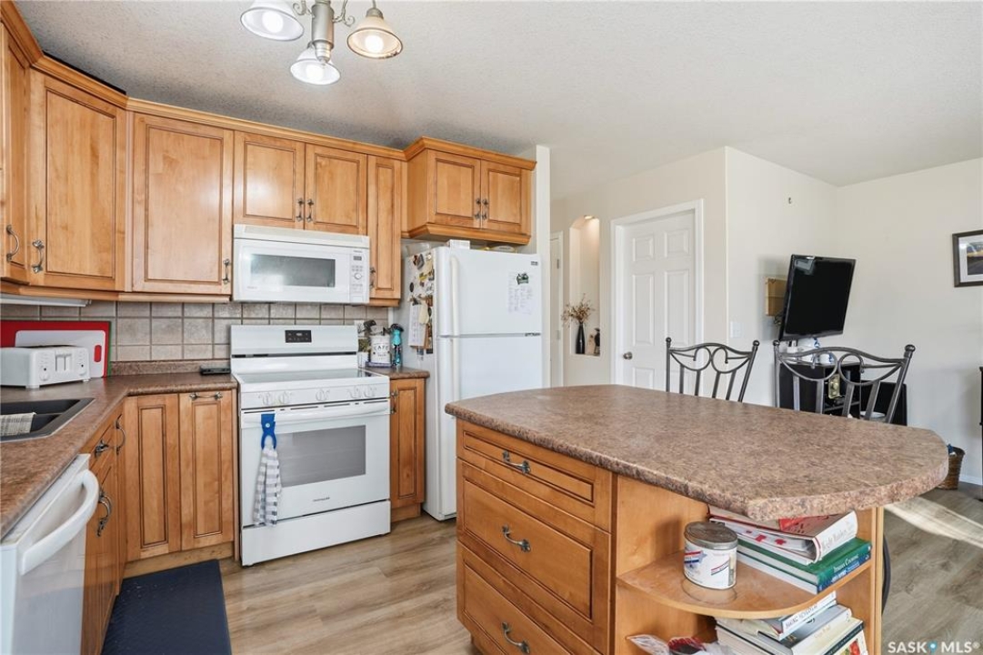 Welcome to this beautifully maintained end-unit condo in Regina's sought-after Lakeridge neighborhood! Offering 1,172 sq ft of stylish and functional living space, this home features an inviting open-concept main floor with extra dining room windows that fill the space with natural light. The kitchen is sure to impress with an abundance of maple cabinets, 4 appliances, a convenient island with seating for two, and plenty of counter space—perfect for both everyday living and entertaining. Recent updates over the past few years include newer flooring throughout the main floor, a newer stove, built-in dishwasher, and a replaced water heater. Upstairs, you'll find two bedrooms, a 4 piece bathroom and a large bonus room. The fully finished basement adds even more living space with a cozy rec room, a combined laundry/ 3 piece bathroom, and storage spaces. Enjoy the convenience of a single attached garage, central air conditioning, central vac and a welcoming front deck for your morning coffee or evening unwind. Located close to shopping, restaurants, parks, and amenities, this home offers the perfect blend of comfort and convenience. Included with your condo fees is access to the Sovanna Pointe Clubhouse. Quick possession is available—move in and start enjoying this bright and spacious home right away!