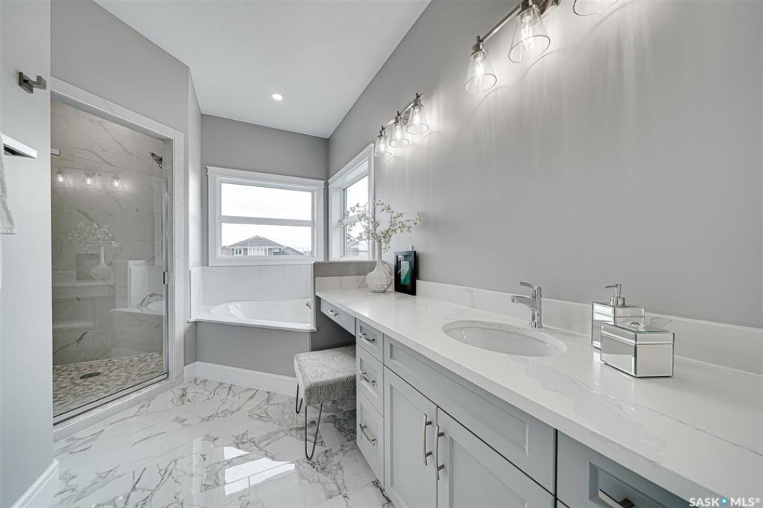 **currently under construction** Welcome to this beautifully designed brand-new home in Aspen Ridge, offering over 2,000 sq.ft. of modern living space on the main and second floors, sitting on an exceptionally spacious 6,000 + sq.ft. lot — providing plenty of room to breathe and play. Step inside and you'll find a bright front office, perfect for working from home or managing family tasks in a quiet corner. The open-concept living and kitchen area features large windows that flood the space with natural light, a stylish fireplace, and a chef's kitchen with upgraded cabinetry, quartz countertops, and an oversized island — ideal for both daily living and entertaining. A huge deck has already been completed, extending your living space outdoors. The mudroom connected to the garage leads directly to the walk-through pantry, making grocery drop-offs a breeze. Upstairs, the layout continues to impress — a spacious bonus room offers flexibility for a kids' play area, cozy family lounge, or home gym. The primary suite features a luxurious 5-piece ensuite and an extra-large walk-in closet. The second-floor laundry adds everyday convenience, while two additional bedrooms are bright and well-proportioned. The fully finished legal basement suite includes upgraded appliances, a private laundry room, and a separate entrance — perfect as a mortgage helper or for extended family. This home is loaded with thoughtful upgrades: heated garage, completed driveway, finished oversized deck, and a private backyard with no rear neighbours. Truly move-in ready — just unpack and start living your Aspen Ridge dream!