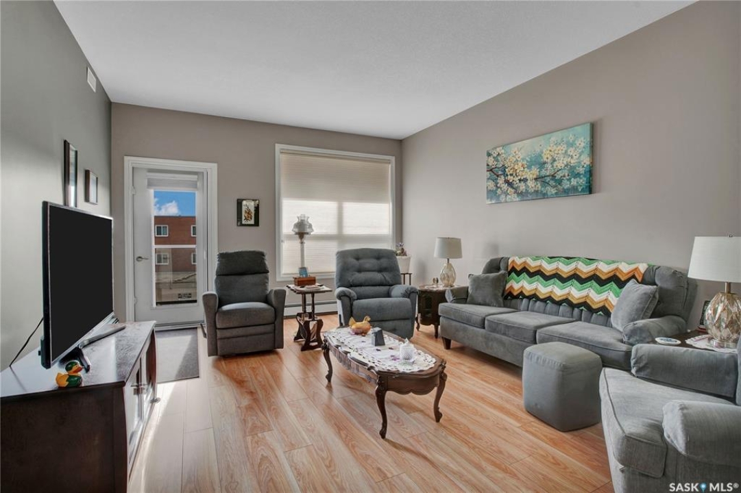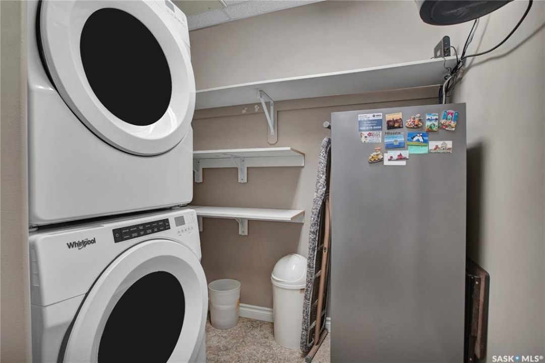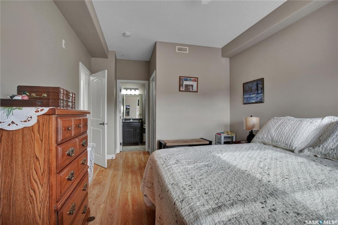 Pristine condo at Silverleaf Suites on Main Street in the popular Greystone Heights. The unit boasts 9-foot ceilings, an open layout, a full laundry room, with a master ensuite bathroom and walk-in closet. Luxurious features include granite countertops, in-suite laundry, in-suite central vacuum, in-suite central air, stainless steel appliances, blackout shades, and a remote-controlled deck roller shade. In recent upgrades over the years include new flooring throughout, kitchen backsplash, and a Centennial non-clogging toilet. The reasonable condo fees are $486 which covers common area maintenance, external building maintenance, heat, reserve fund, snow removal, water, and access to the amenities room. The condo also comes with one parking spot and one storage unit. Unbeatable location with steps to an elementary school, Superstore, the University of Saskatchewan, and every amenity needed in the commercial district on 8th Street.
