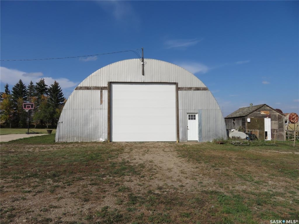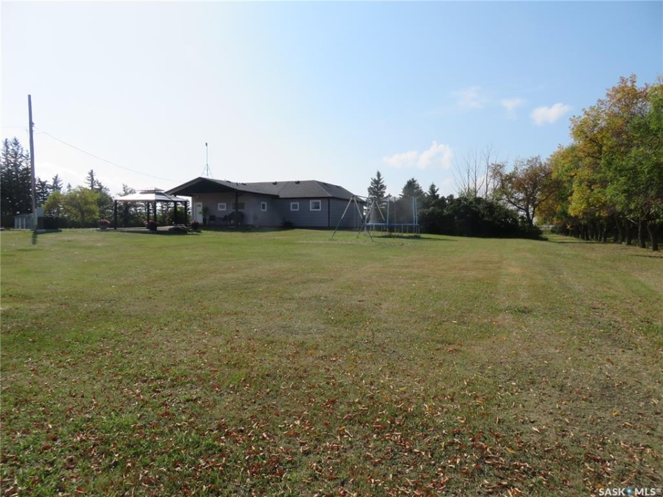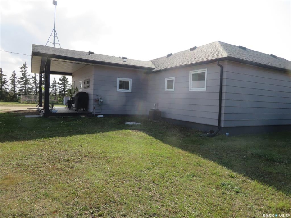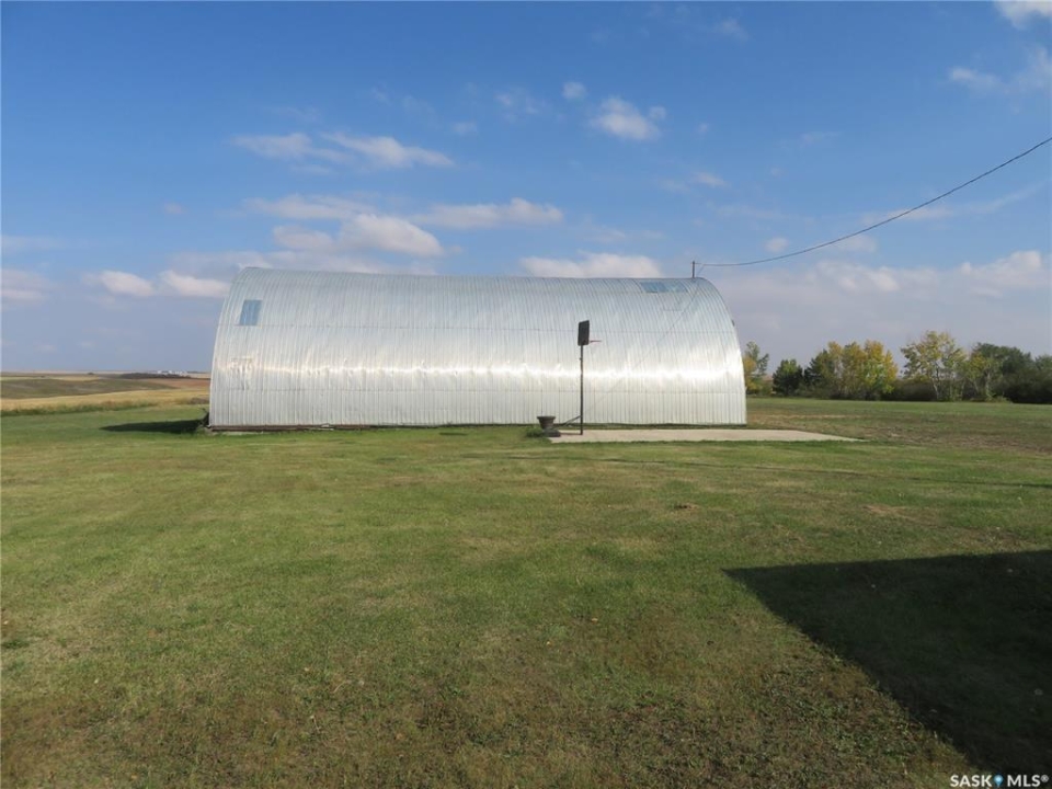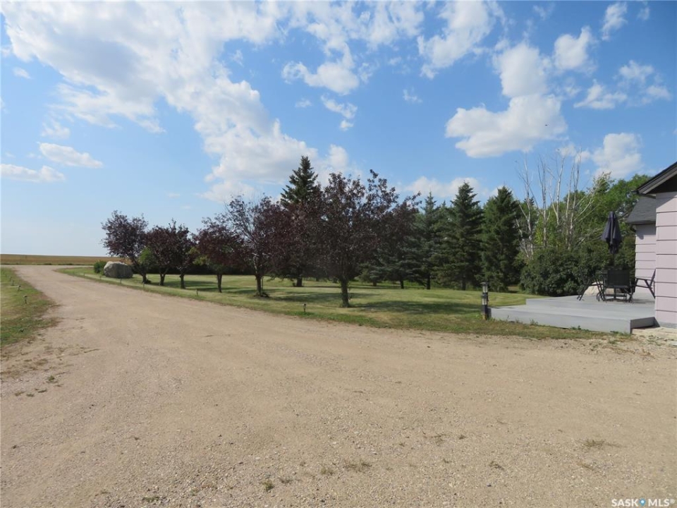 Charming Acreage Just 15 Minutes East of Kindersley. Enjoy peaceful country living on this beautiful acreage located just 15 minutes east of Kindersley. This 1,260 sq. ft. 1950 farmhouse has been tastefully updated with modern finishes while maintaining its rural charm. Inside, you'll find a beautiful space with fresh paint, new trim, and new vinyl plank flooring throughout. The home features a large mudroom with storage cabinets. A bright and inviting kitchen, dining and living area. 3 bedrooms, a full 4 piece bath and a convenient 2-piece bath in the spacious laundry room, tucked neatly behind barn doors. The open basement offers excellent potential for development, with a partial subfloor already in place, plus cold storage, a storage closet, and a utility room. The home is equipped with an updated furnace, central air, and electrical system, ensuring comfort and efficiency year-round. Outside, you'll love the mature yard with shade and fruit trees, a new back deck, and both open and enclosed garden areas—perfect for anyone with a green thumb. The property also includes a 40'x60' Quonset, ideal for storage, vehicles, or workshop space. Water supply is from a reliable well. This acreage offers the perfect blend of country charm, modern updates, and room to grow. Move-in ready and waiting for you to make it your own! Call today for more information and to schedule a tour!