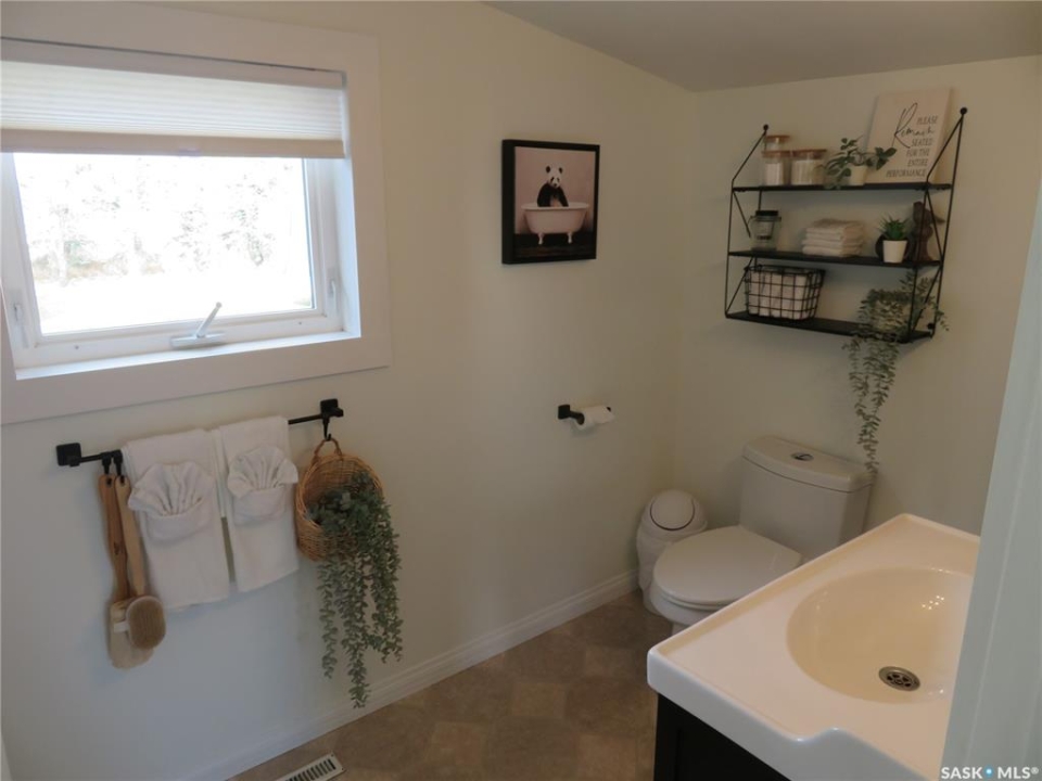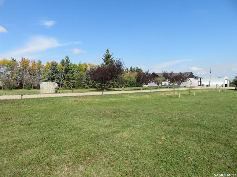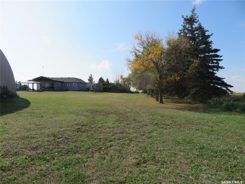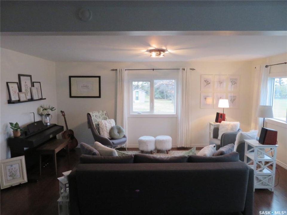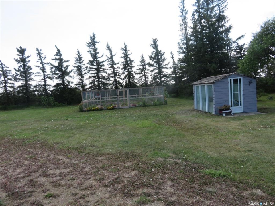 Charming Acreage Just 15 Minutes East of Kindersley. Enjoy peaceful country living on this beautiful acreage located just 15 minutes east of Kindersley. This 1,260 sq. ft. 1950 farmhouse has been tastefully updated with modern finishes while maintaining its rural charm. Inside, you'll find a beautiful space with fresh paint, new trim, and new vinyl plank flooring throughout. The home features a large mudroom with storage cabinets. A bright and inviting kitchen, dining and living area. 3 bedrooms, a full 4 piece bath and a convenient 2-piece bath in the spacious laundry room, tucked neatly behind barn doors. The open basement offers excellent potential for development, with a partial subfloor already in place, plus cold storage, a storage closet, and a utility room. The home is equipped with an updated furnace, central air, and electrical system, ensuring comfort and efficiency year-round. Outside, you'll love the mature yard with shade and fruit trees, a new back deck, and both open and enclosed garden areas—perfect for anyone with a green thumb. The property also includes a 40'x60' Quonset, ideal for storage, vehicles, or workshop space. Water supply is from a reliable well. This acreage offers the perfect blend of country charm, modern updates, and room to grow. Move-in ready and waiting for you to make it your own! Call today for more information and to schedule a tour!