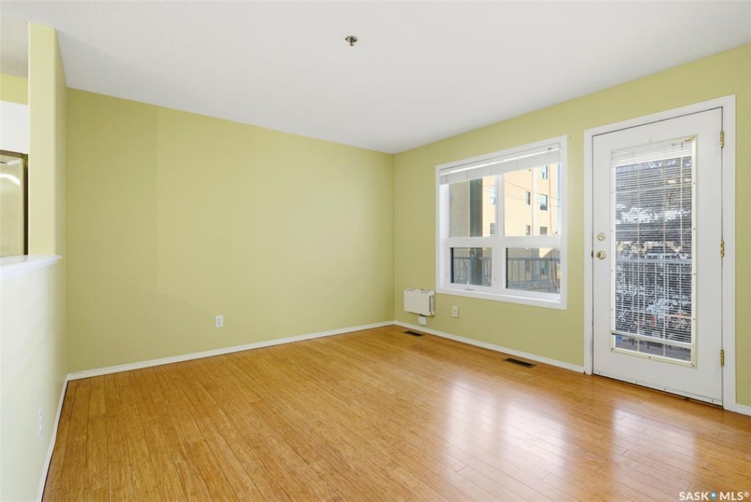 Welcome to this bright and inviting 2 bedroom condo perfectly situated in Regina's vibrant Cathedral neighbourhood. Enjoy a highly walkable location just steps from the cafés, shops, and restaurants along 13th Avenue, with downtown only minutes away. Inside, the open-concept layout features a white kitchen with plenty of cabinetry, bamboo hardwood floors, and a southeast-facing balcony that fills the space with natural light. This third-floor unit also offers in-suite laundry with added storage, A/C and access to covered heated parking. A perfect opportunity to enjoy urban living in one of the city's most diverse communities.