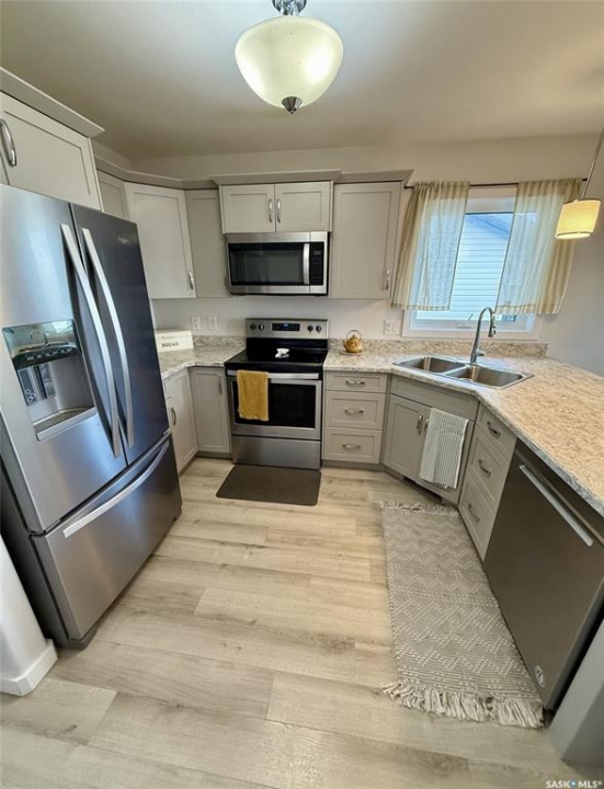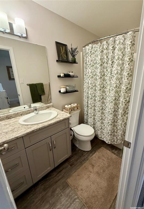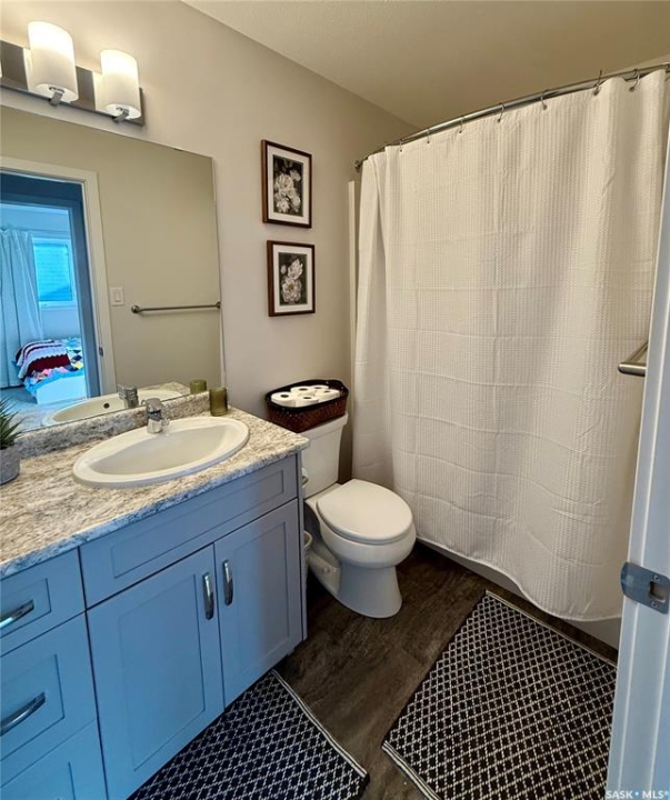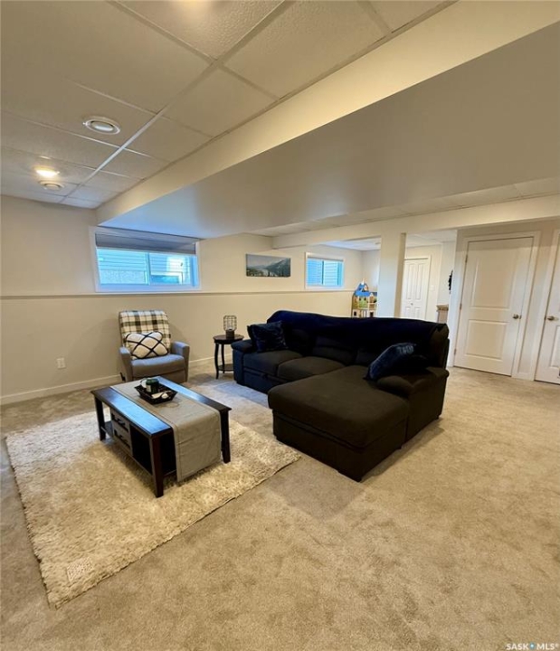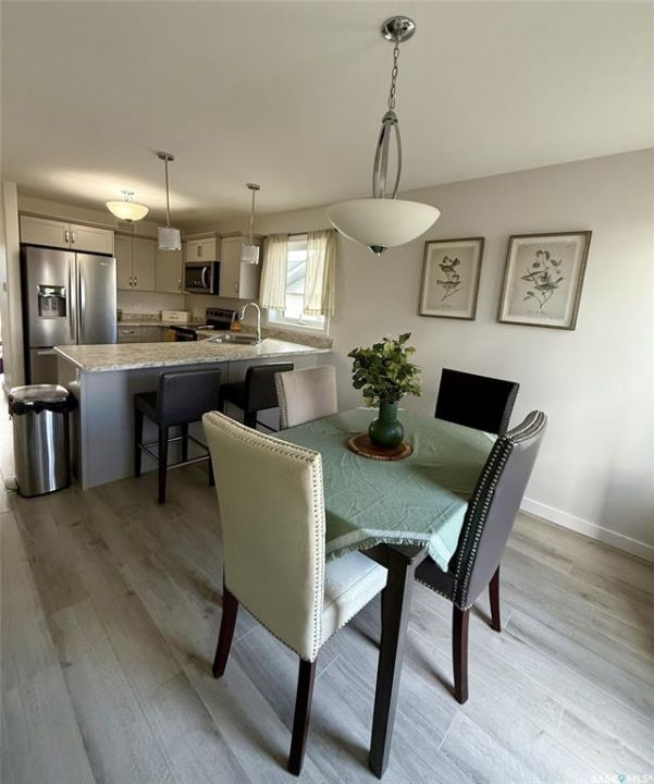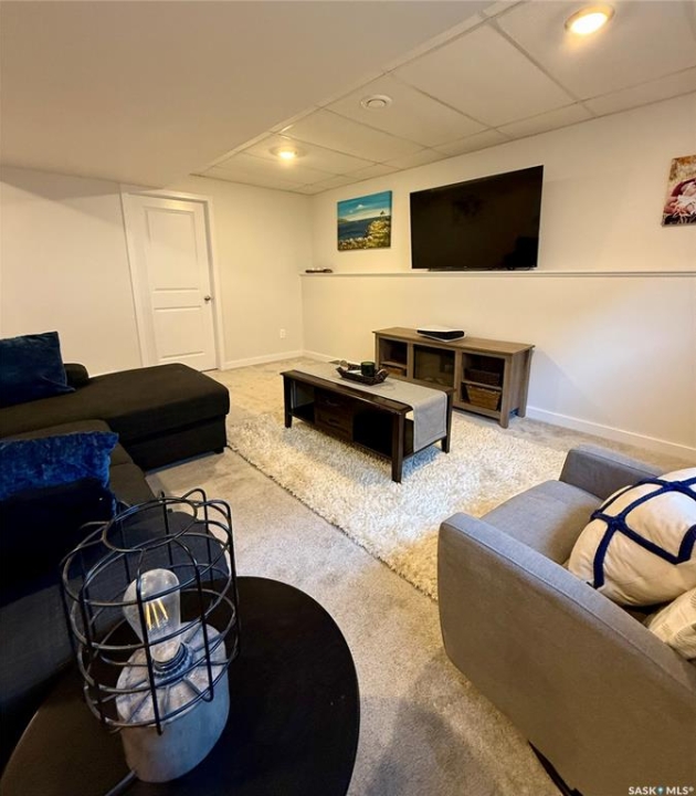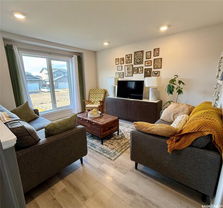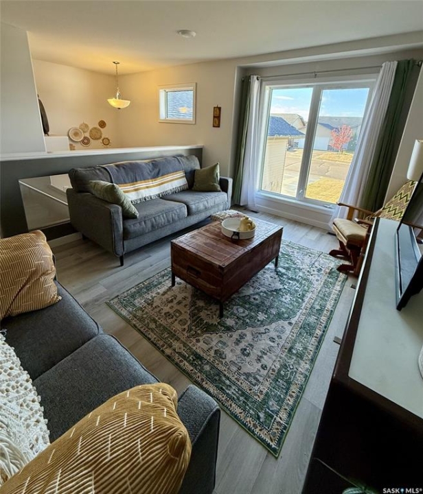 Welcome to 154 Finch Crescent — a beautifully maintained bi-level home in the peaceful, family-friendly town of Langham, SK, just a short 25-minute drive from Saskatoon. Nestled on a quiet street with a backyard that opens up to a scenic field, this 2016-built home offers comfort and space. With 1,084 sq ft of living space, this home features 4 bedrooms and 3 bathrooms, including a fully finished basement completed in 2019. The main level boasts a bright and inviting living room, a functional kitchen with stainless steel appliances, and a dining area that opens onto a walk-out deck. You'll also find 3 bedrooms, including a spacious primary suite with a walk-in closet and private ensuite, plus a second full bathroom. Downstairs, the finished basement offers a large family room, an additional bedroom, a third full bathroom, and a versatile bonus area with a generous closet—perfect for a home office, playroom, or potential fifth bedroom. Additional highlights include: • Double attached garage • Utility room & under-stair storage • HVAC system This home combines small-town charm with modern convenience—ideal for families or anyone seeking a peaceful lifestyle close to the city.